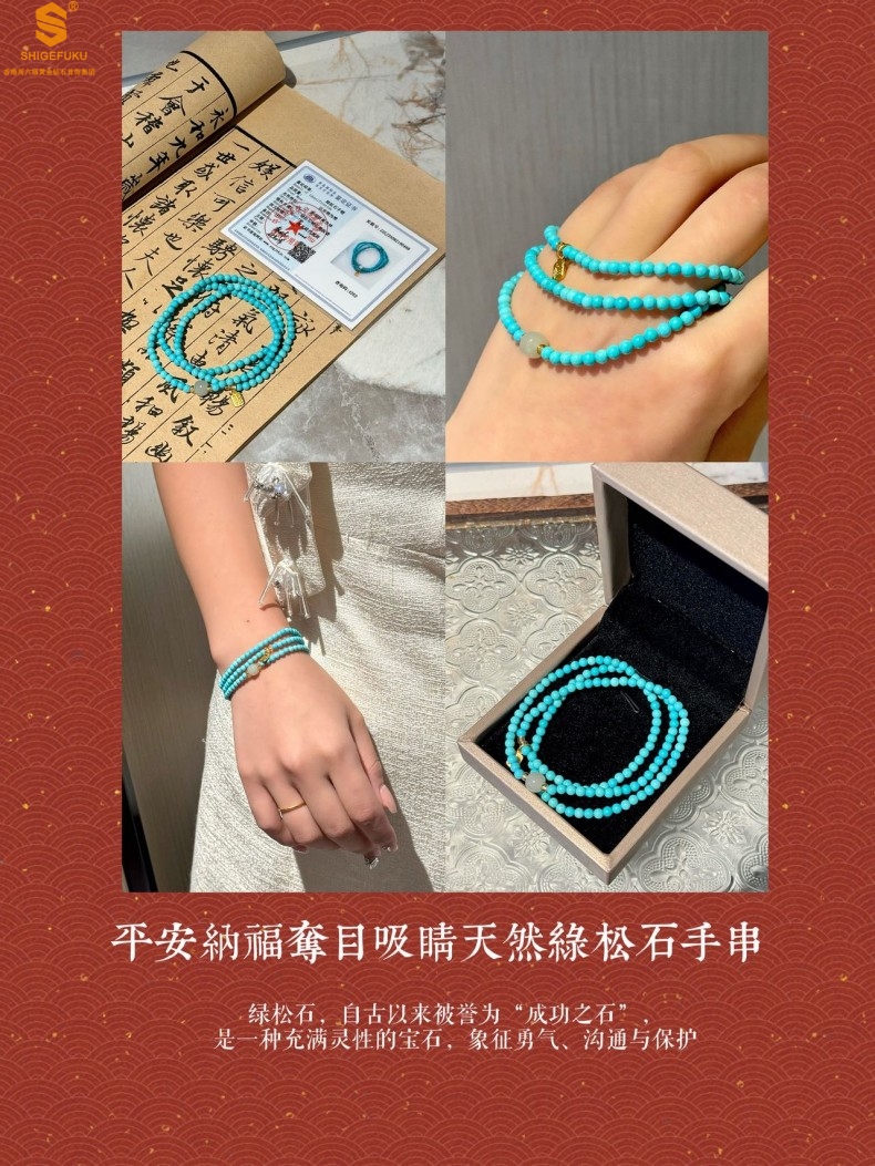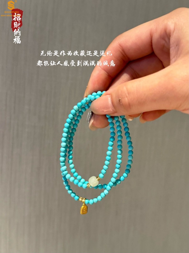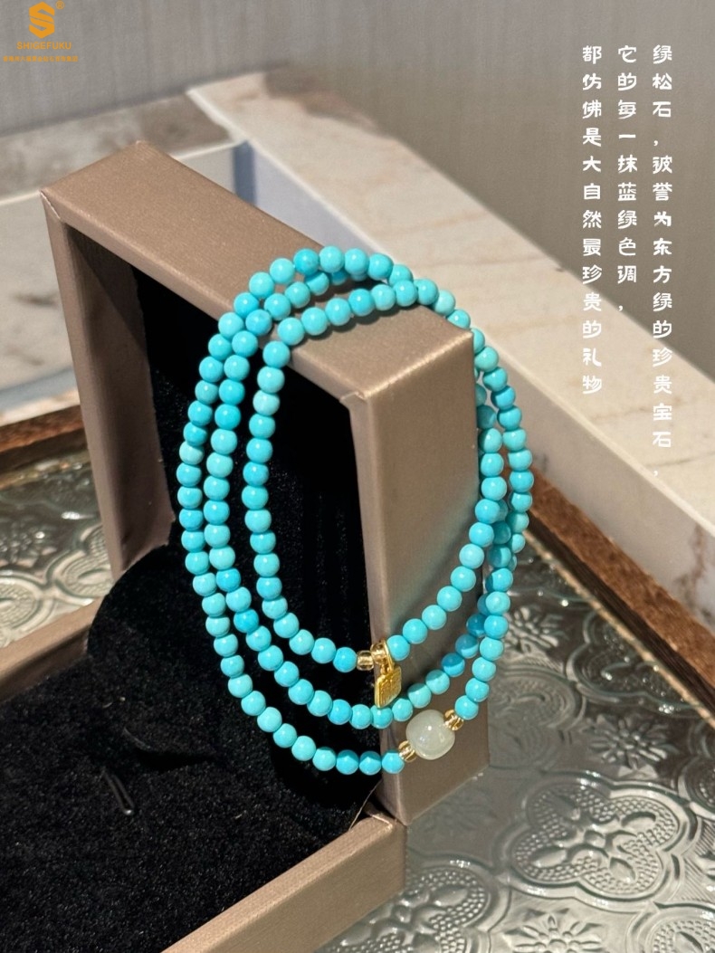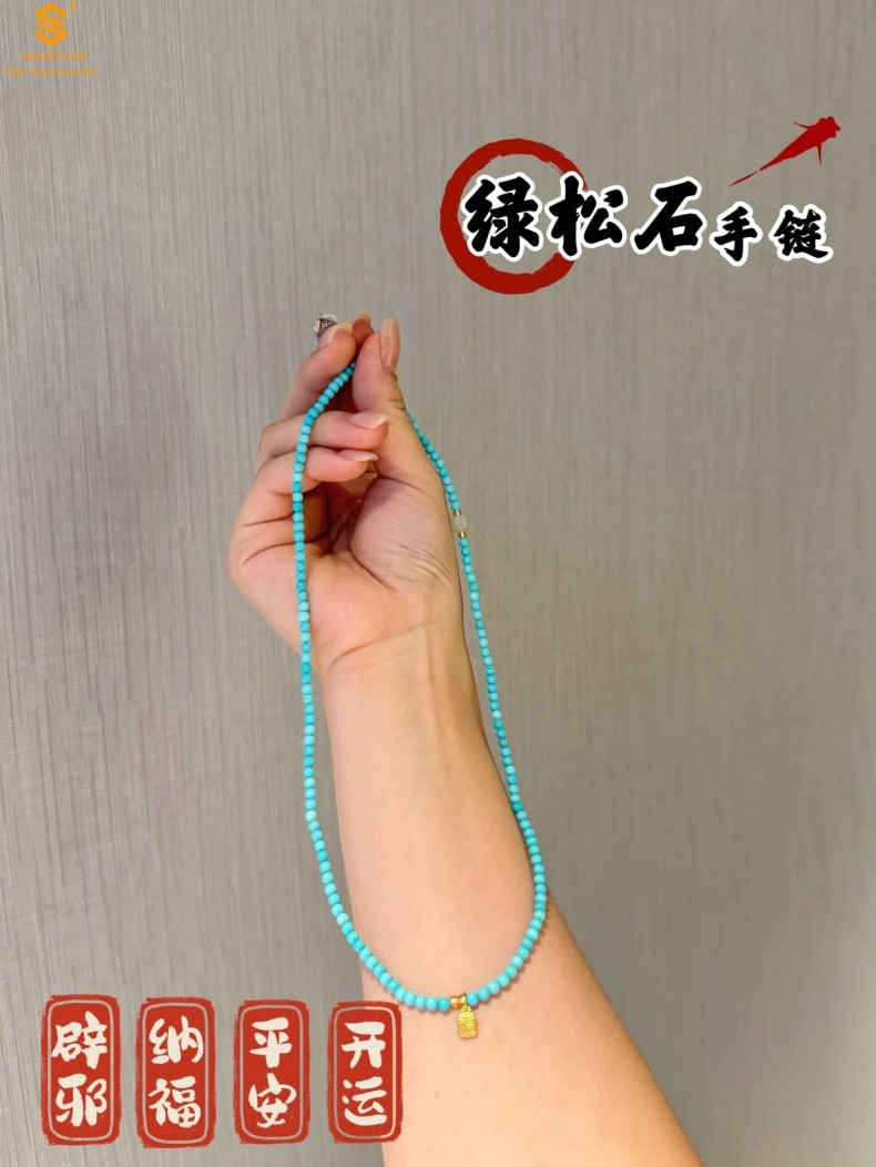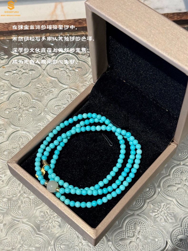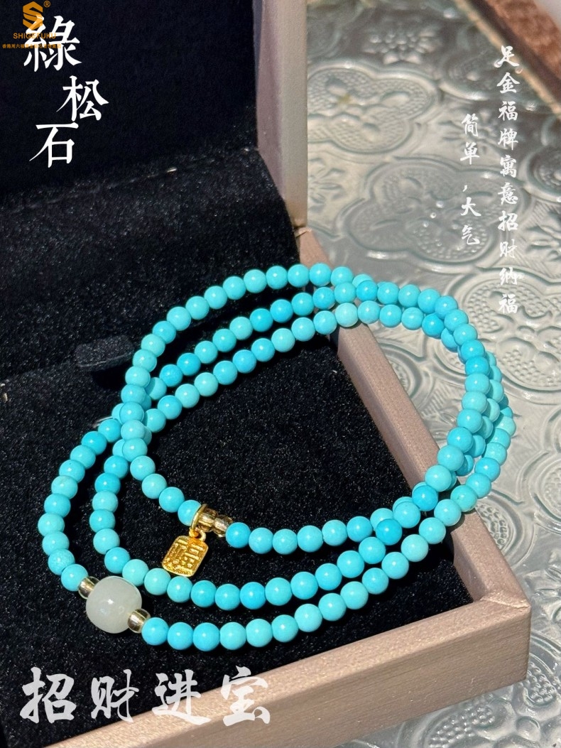 【品名】平安纳福夺目吸睛天然绿松石手串