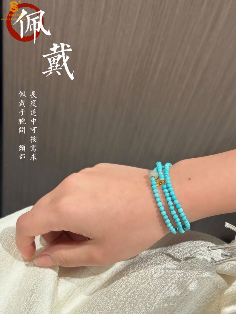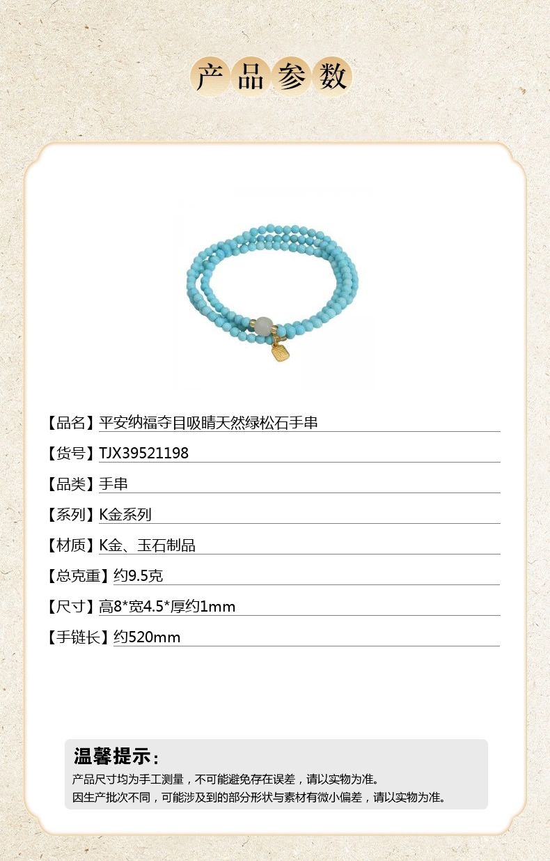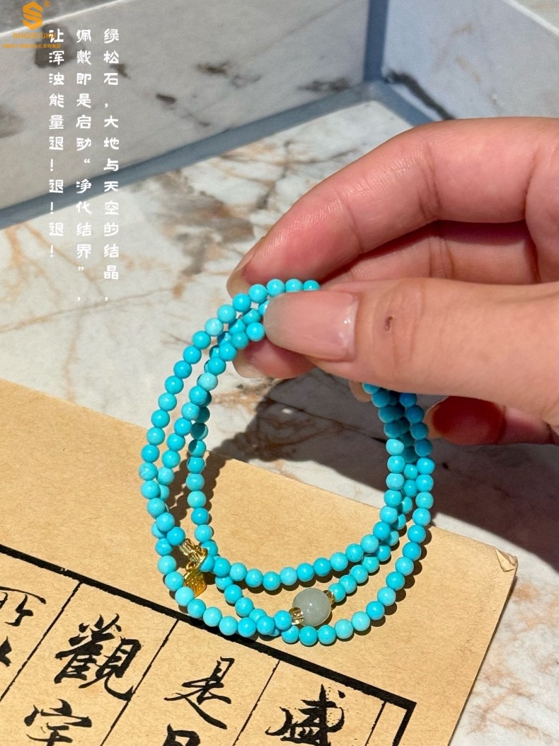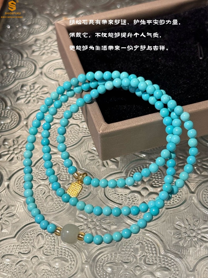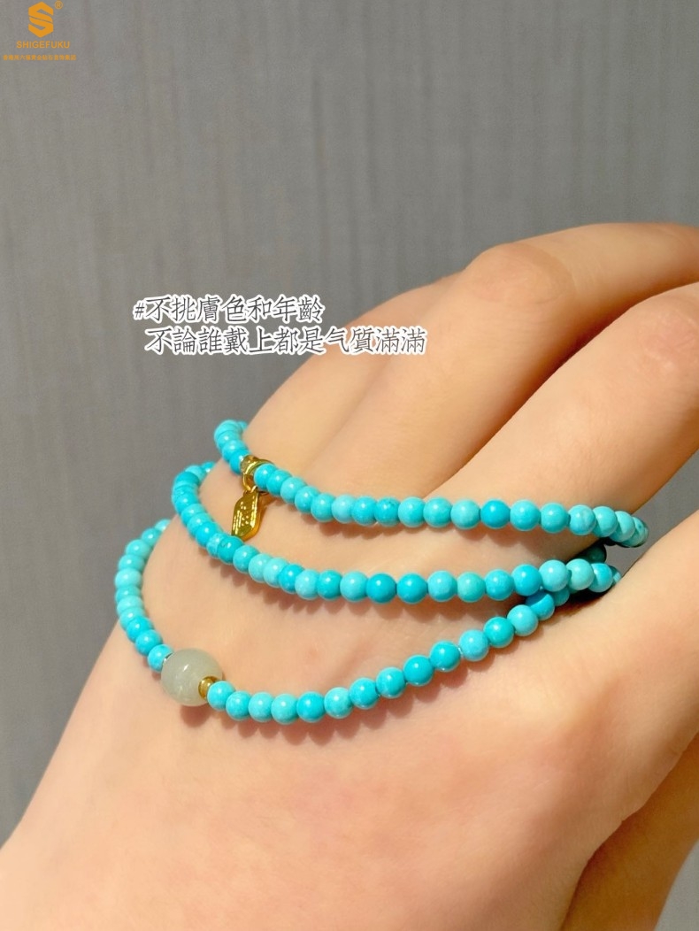 【品名】平安纳福夺目吸睛天然绿松石手串