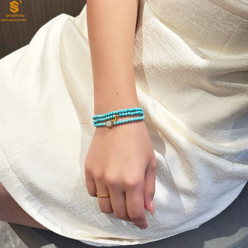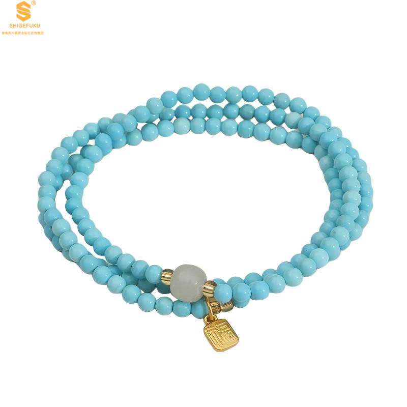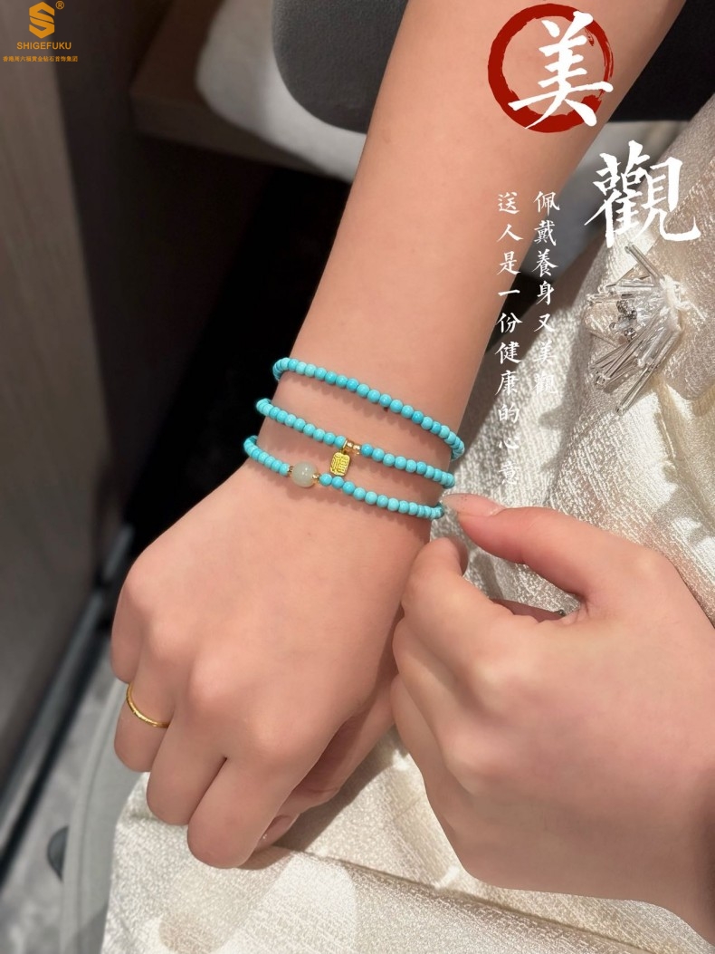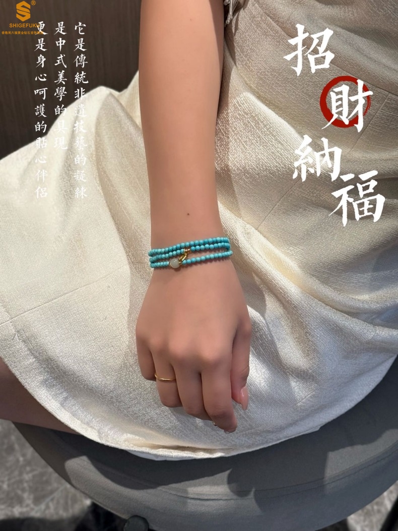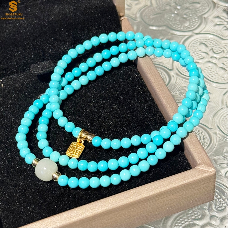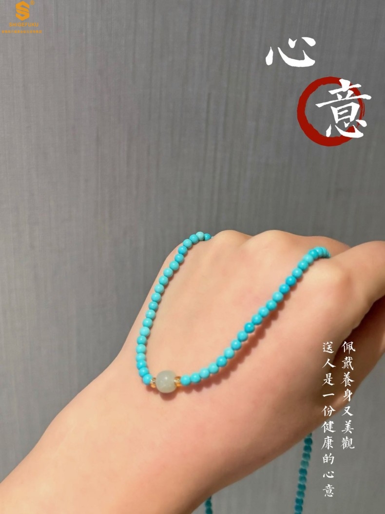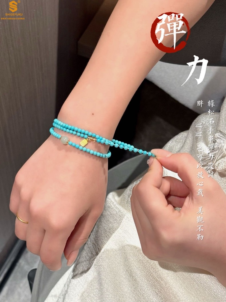 【品名】平安纳福夺目吸睛天然绿松石手串