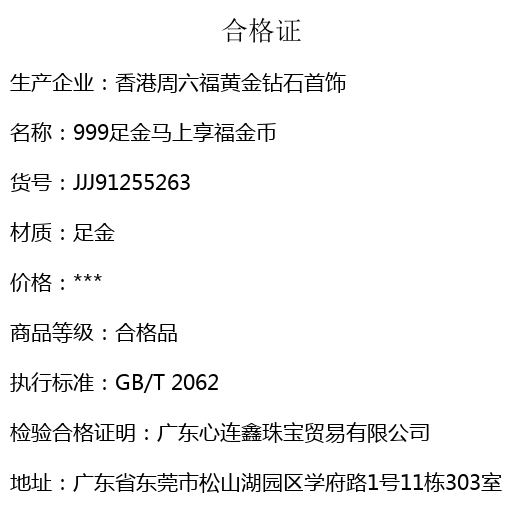 【品名】999足金马上享福金币