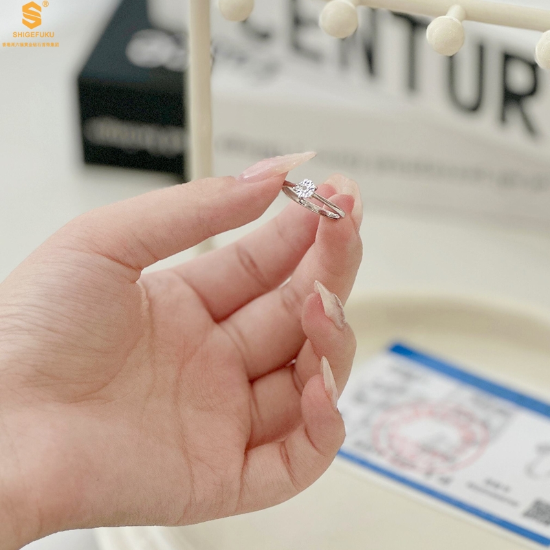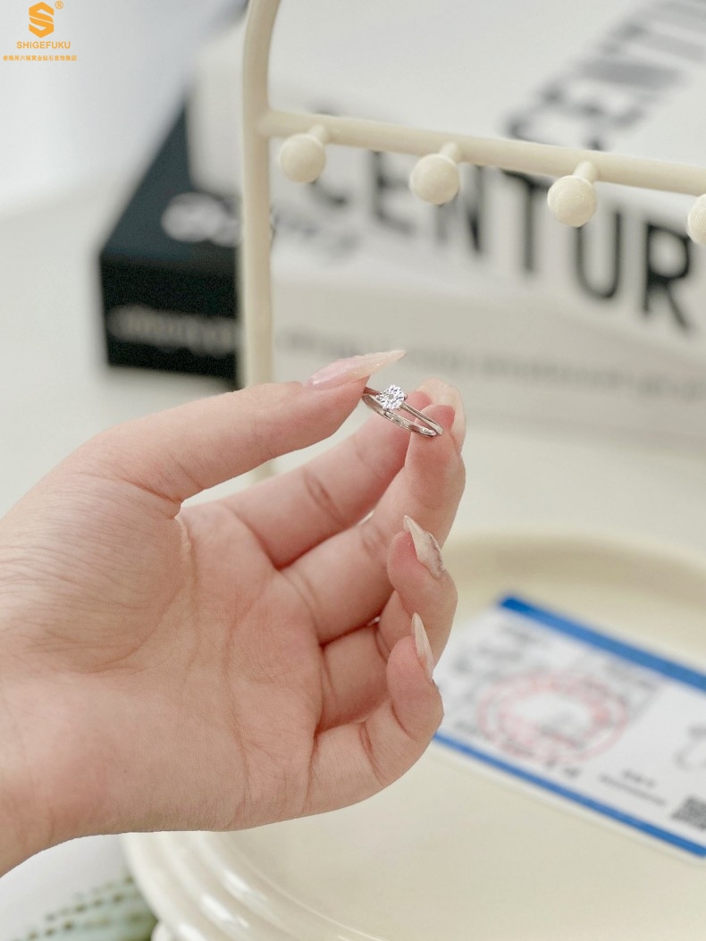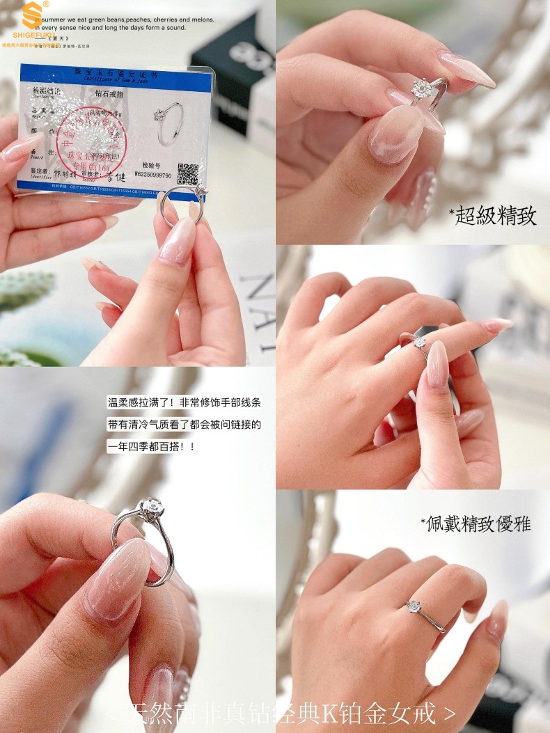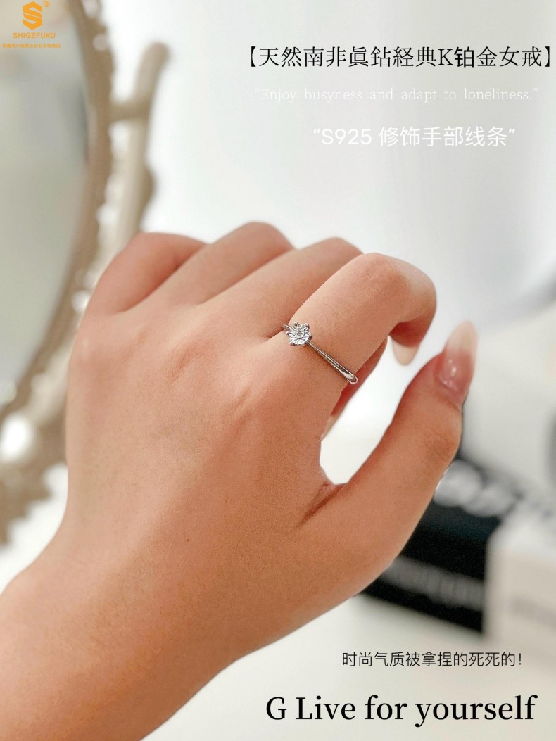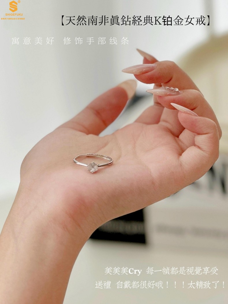 【品名】天然南非真钻经典K铂金女戒(开口可调节)