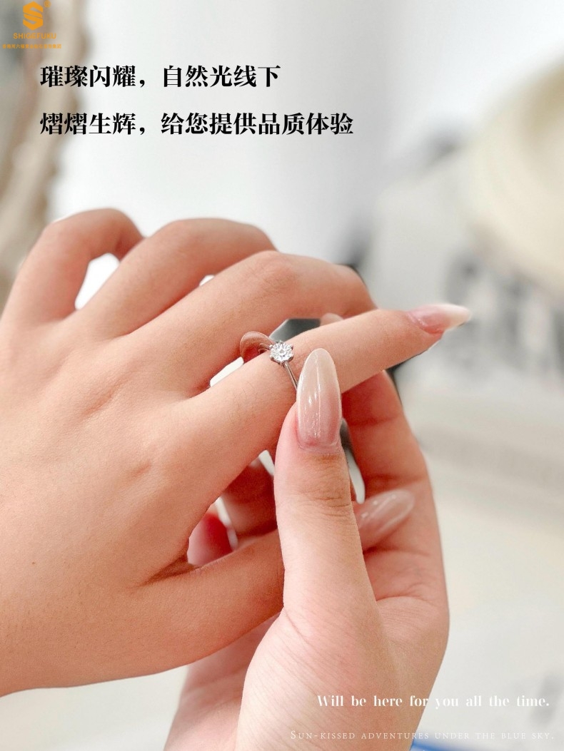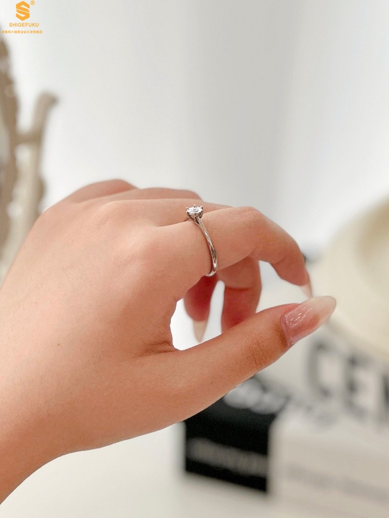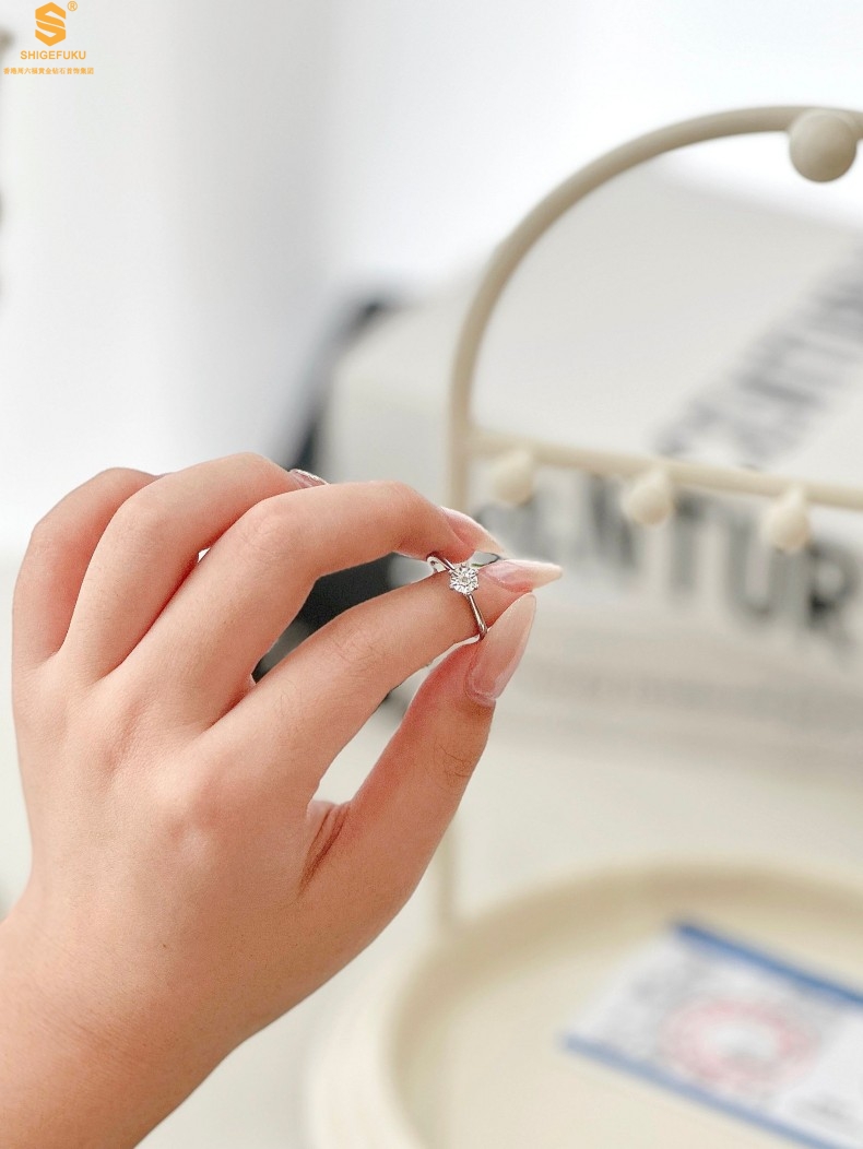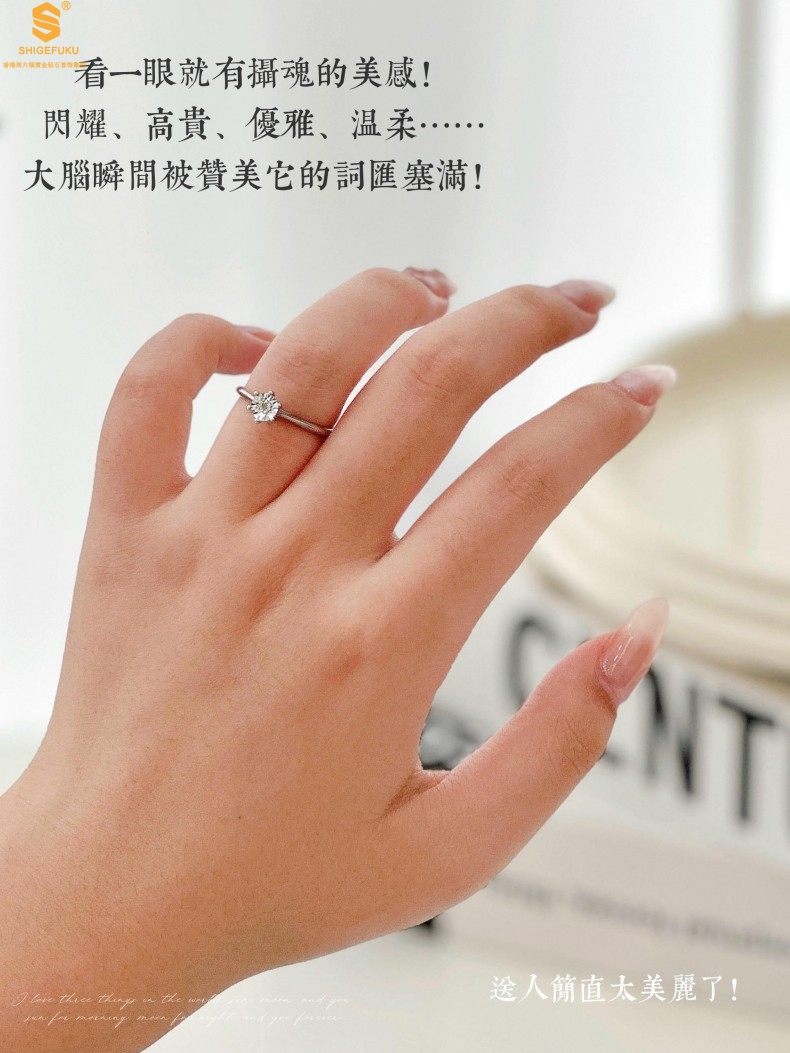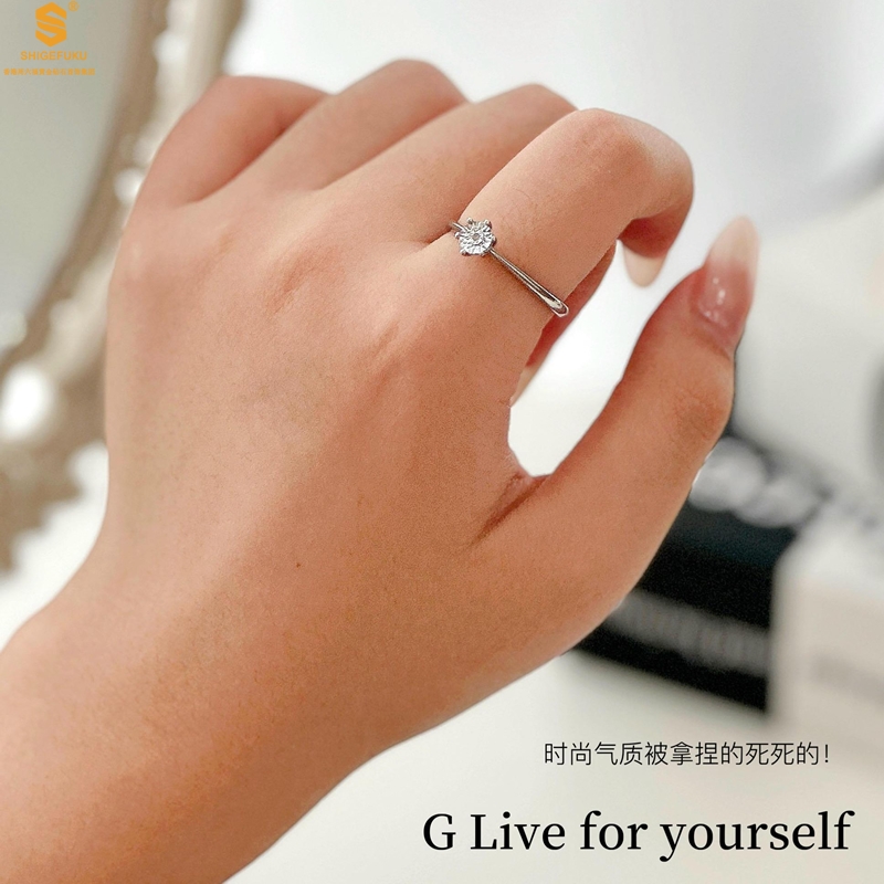 【品名】天然南非真钻经典K铂金女戒(开口可调节)