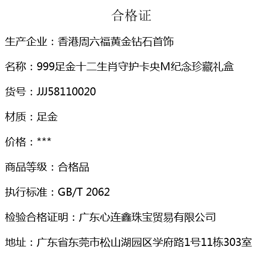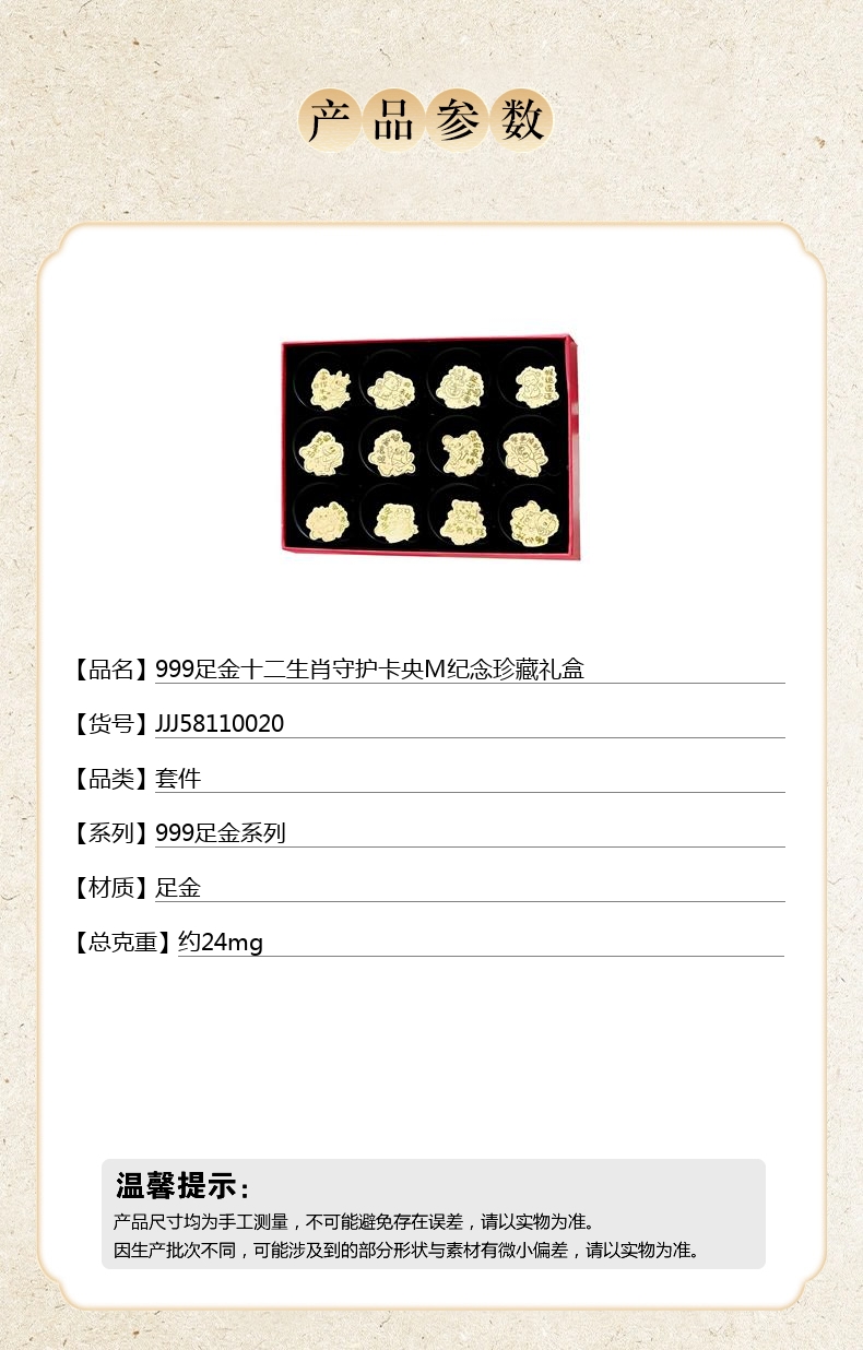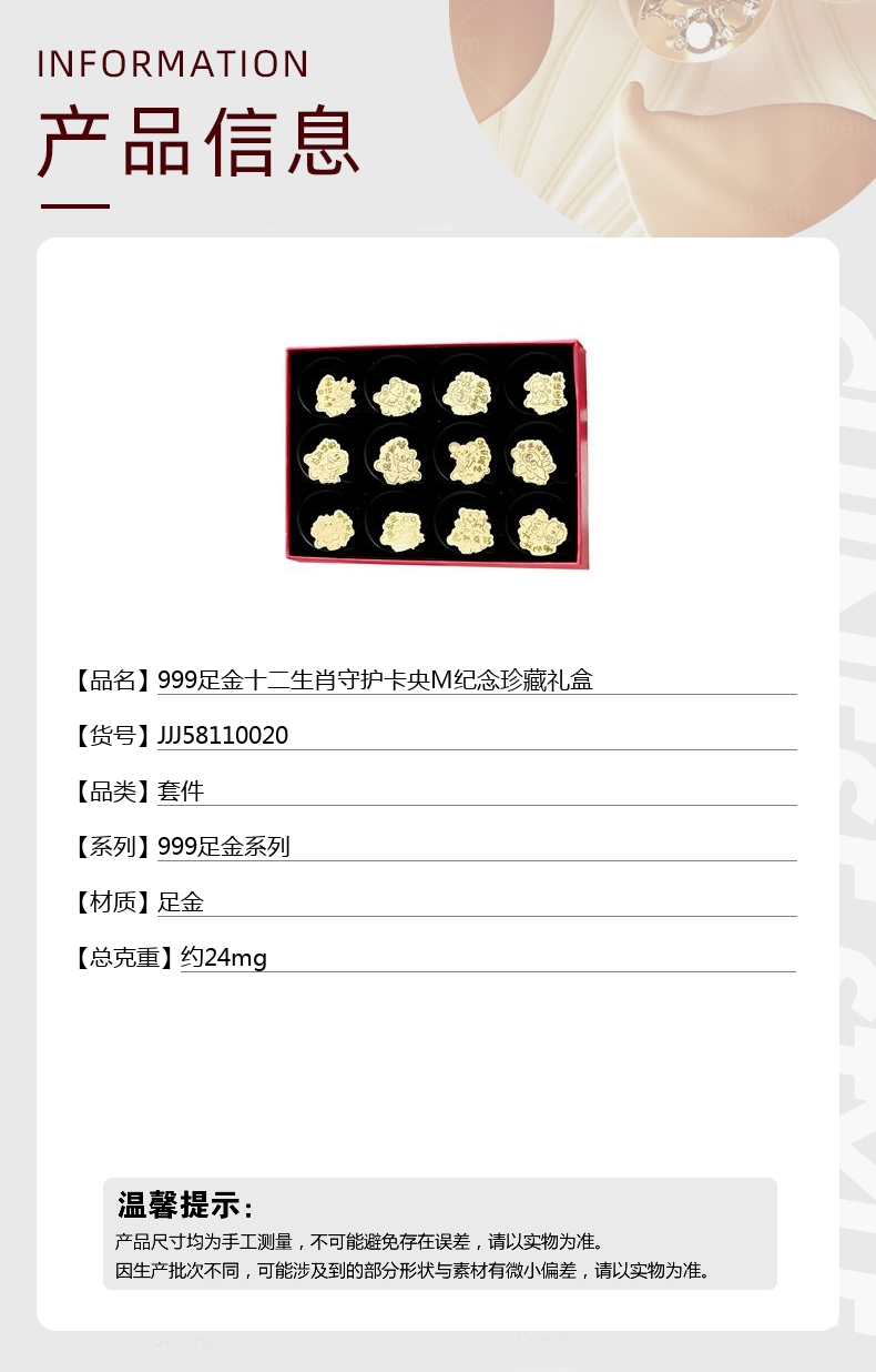 【品名】999足金十二生肖守护卡央M纪念珍藏礼盒