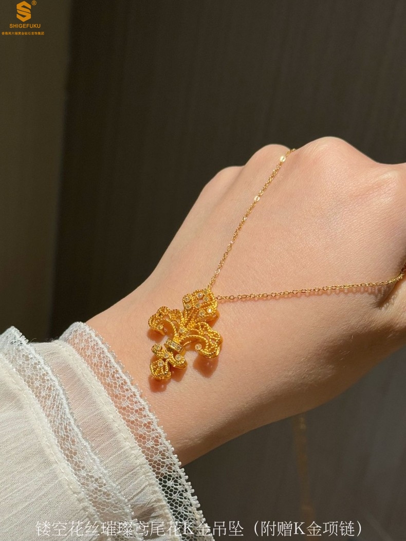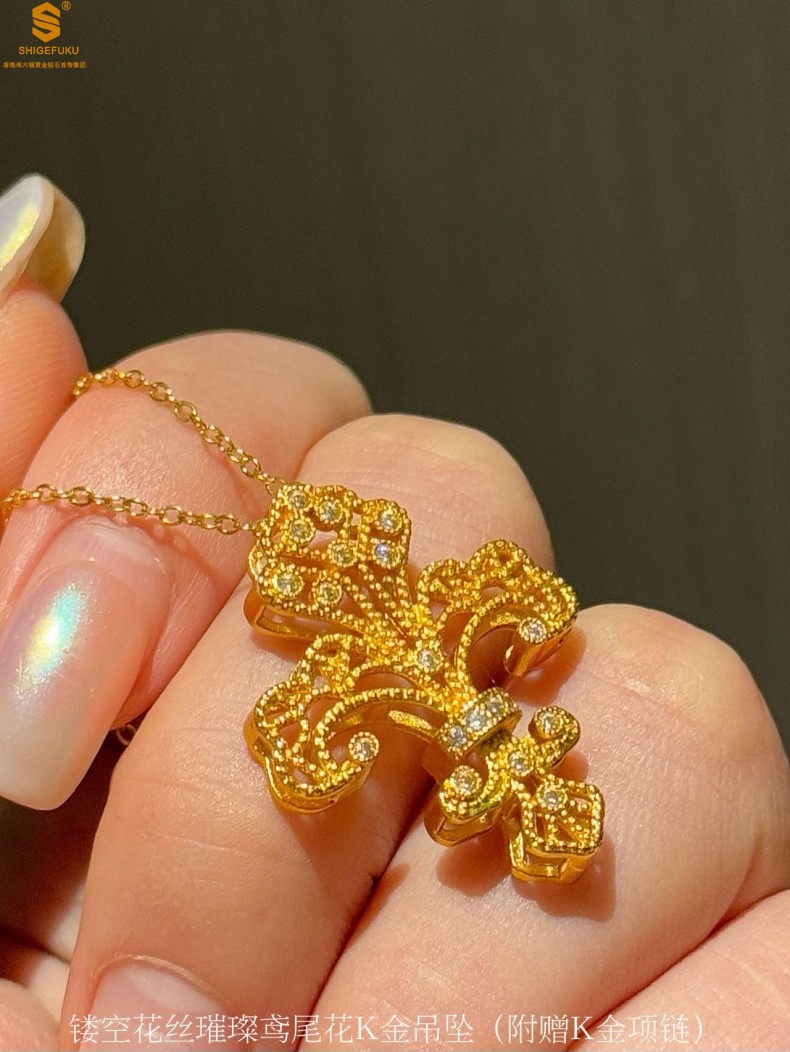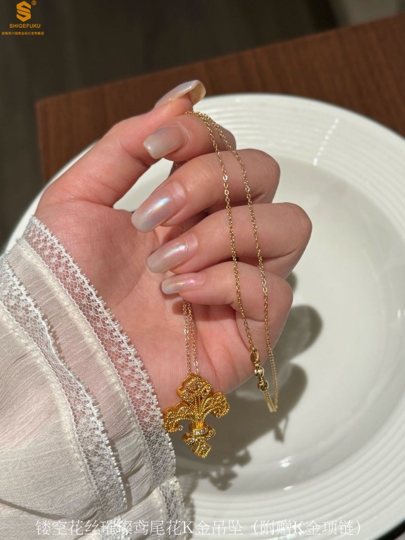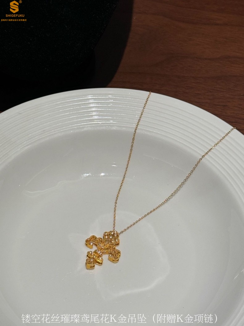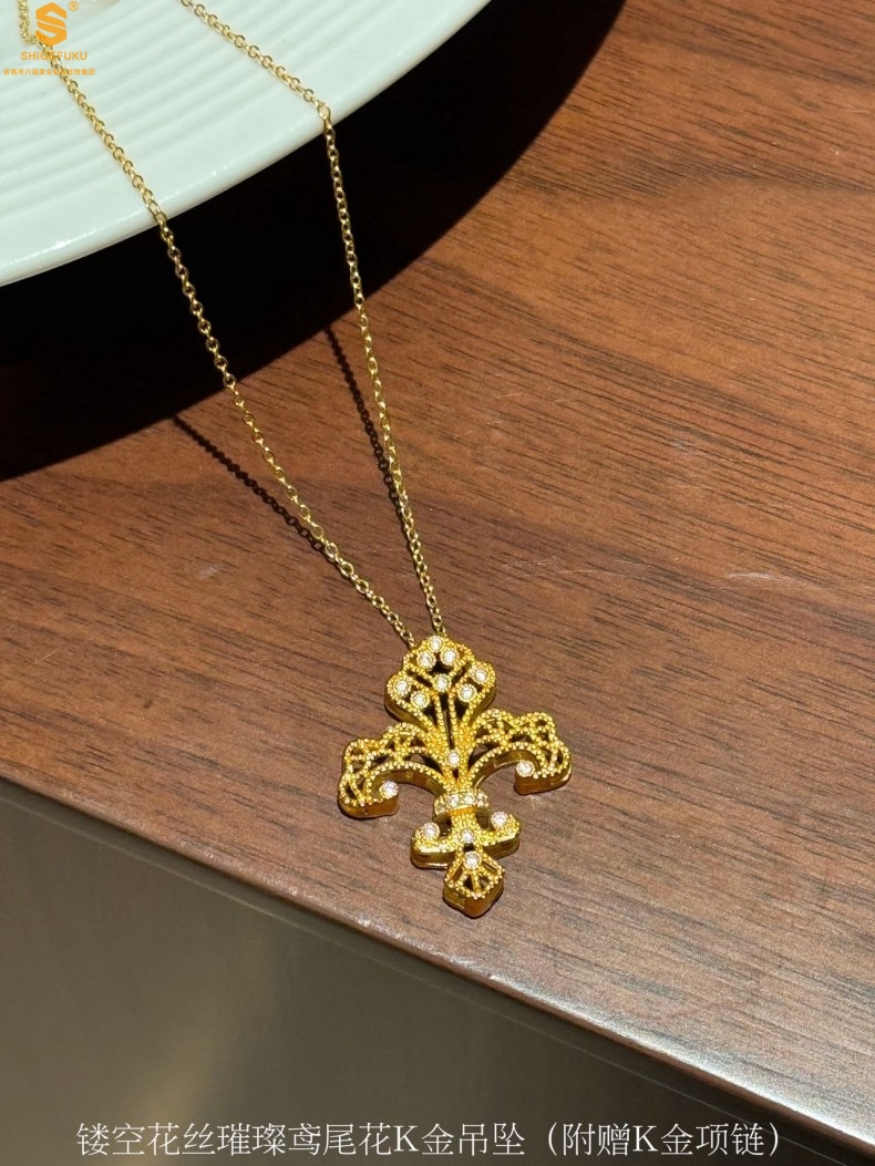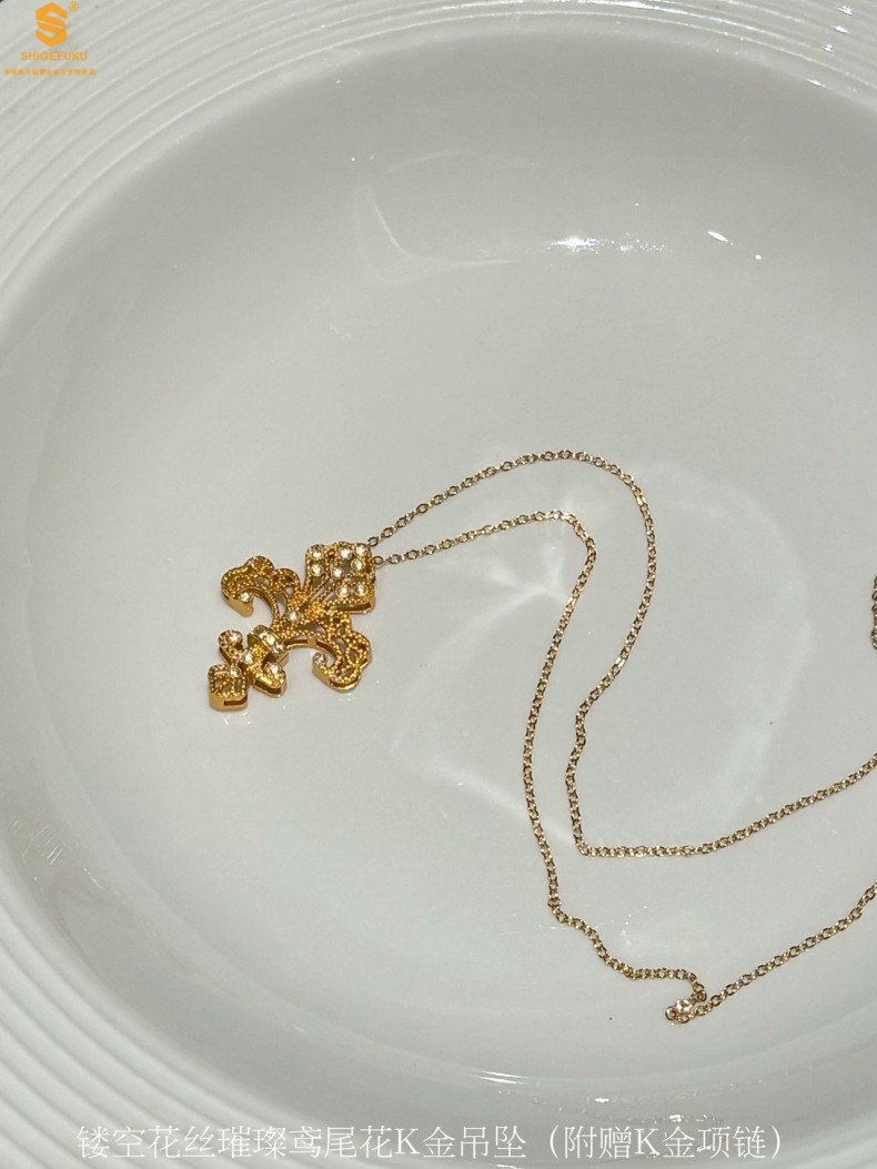 【品名】镂空花丝璀璨鸢尾花K金吊坠(附赠K金项链)