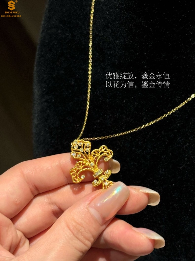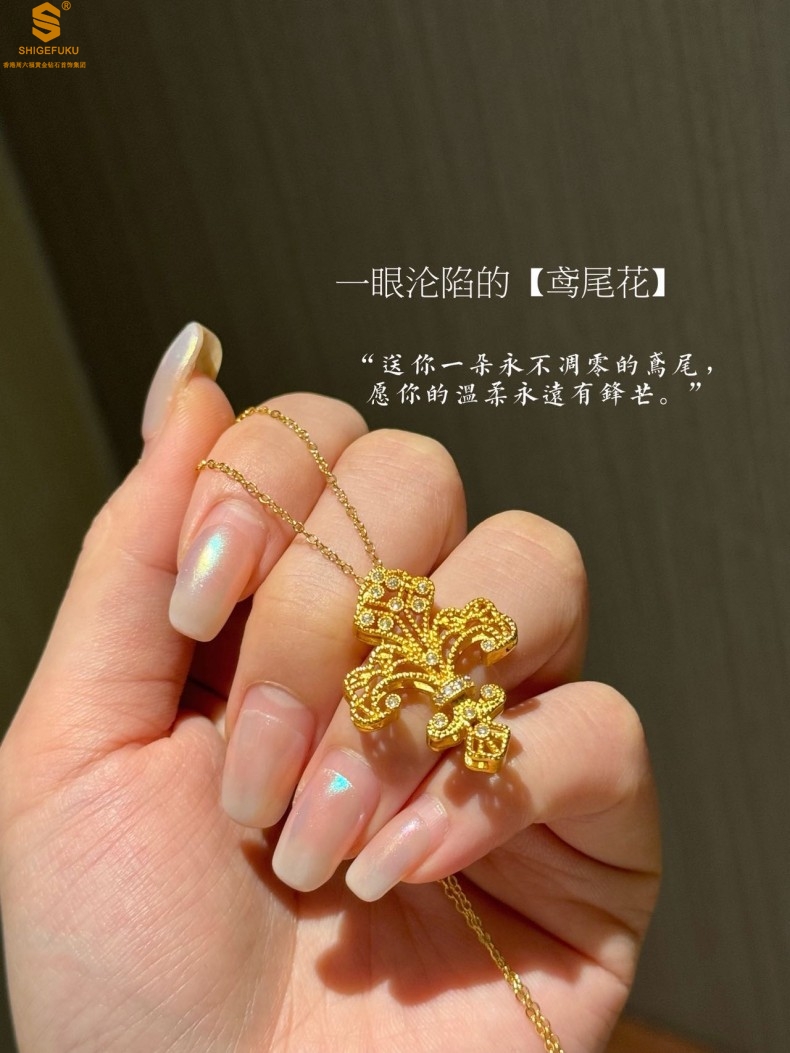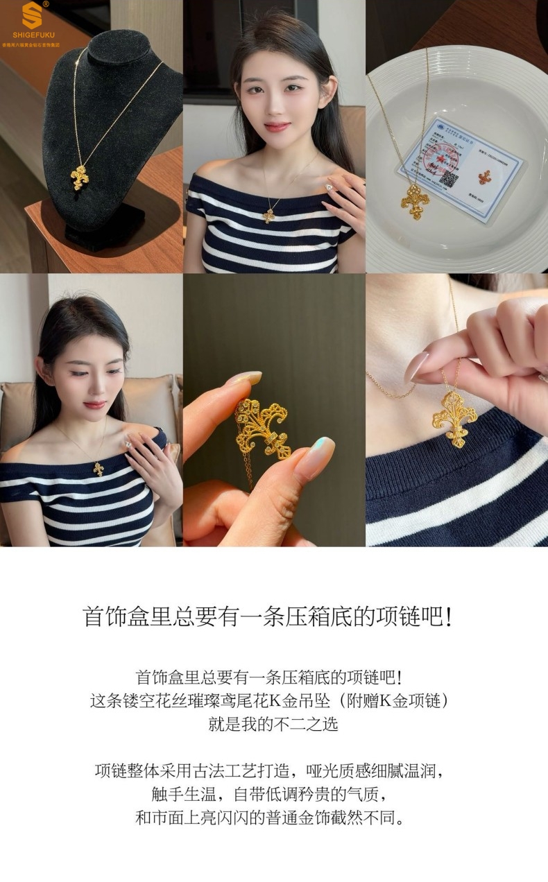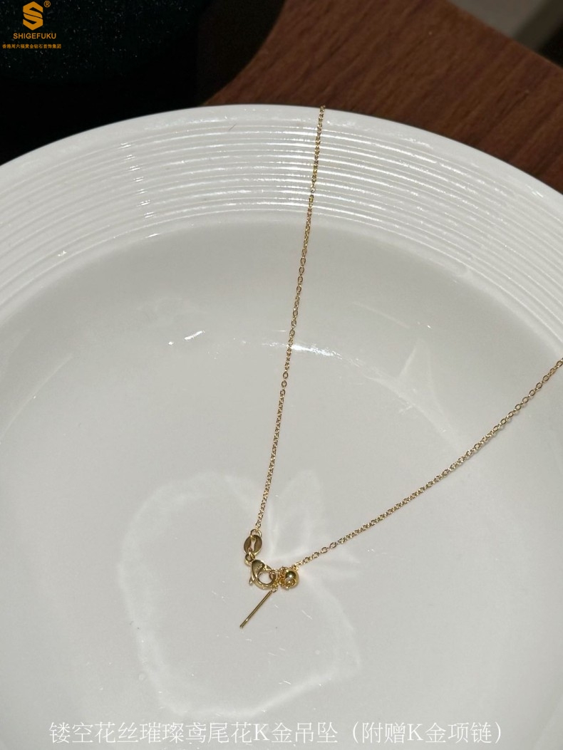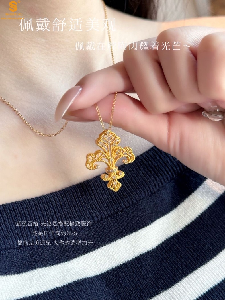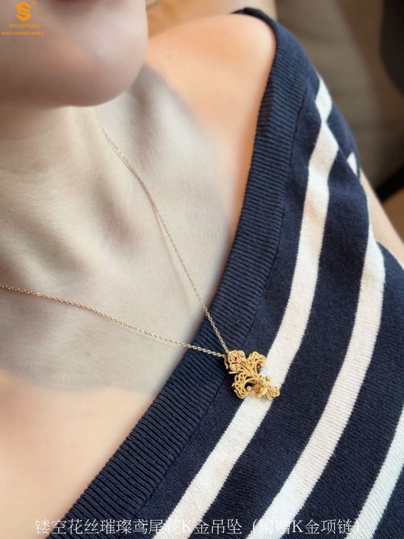 【品名】镂空花丝璀璨鸢尾花K金吊坠(附赠K金项链)