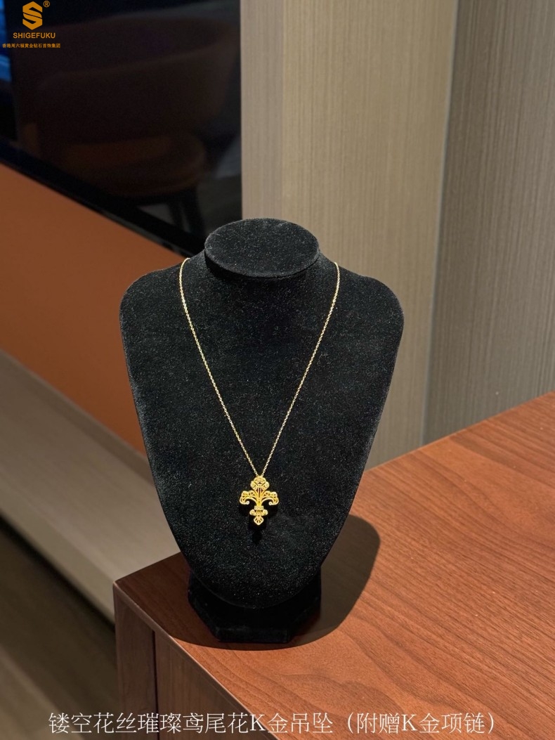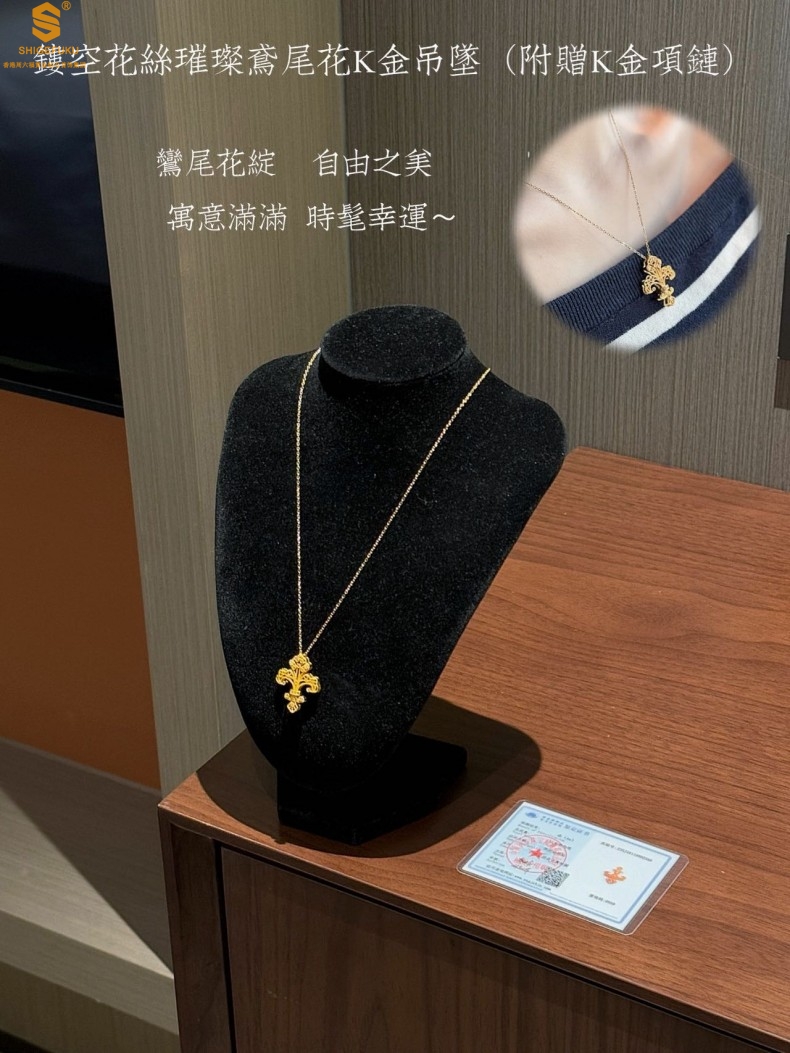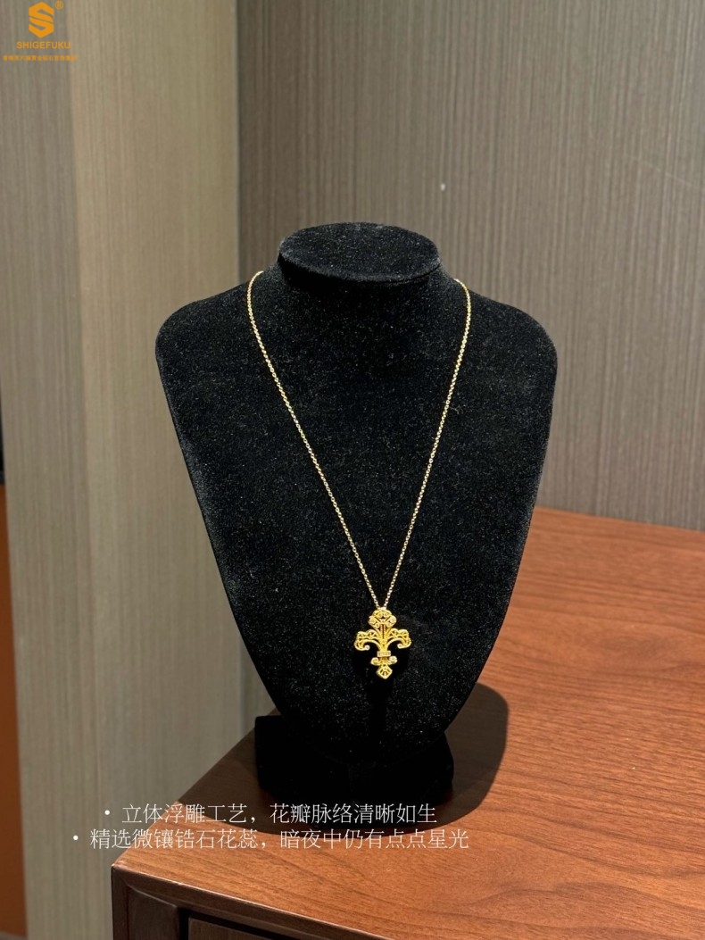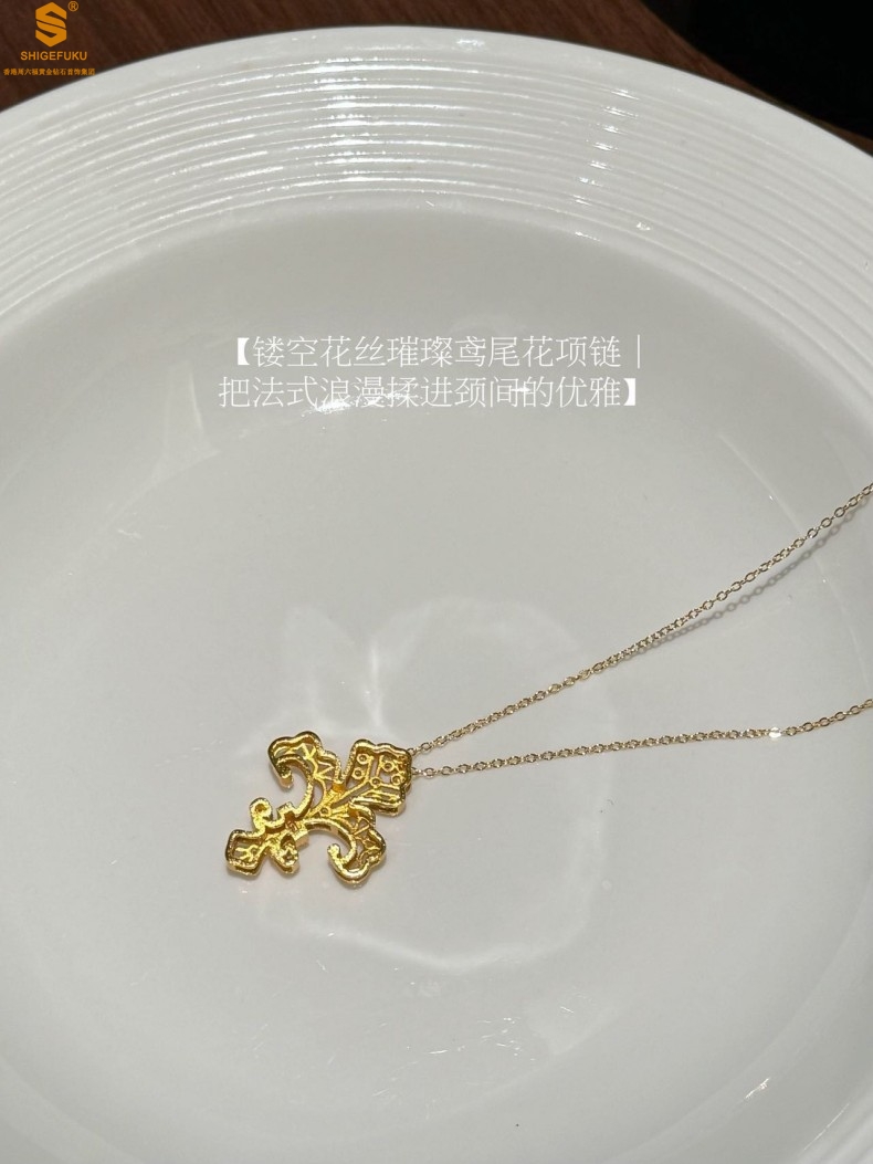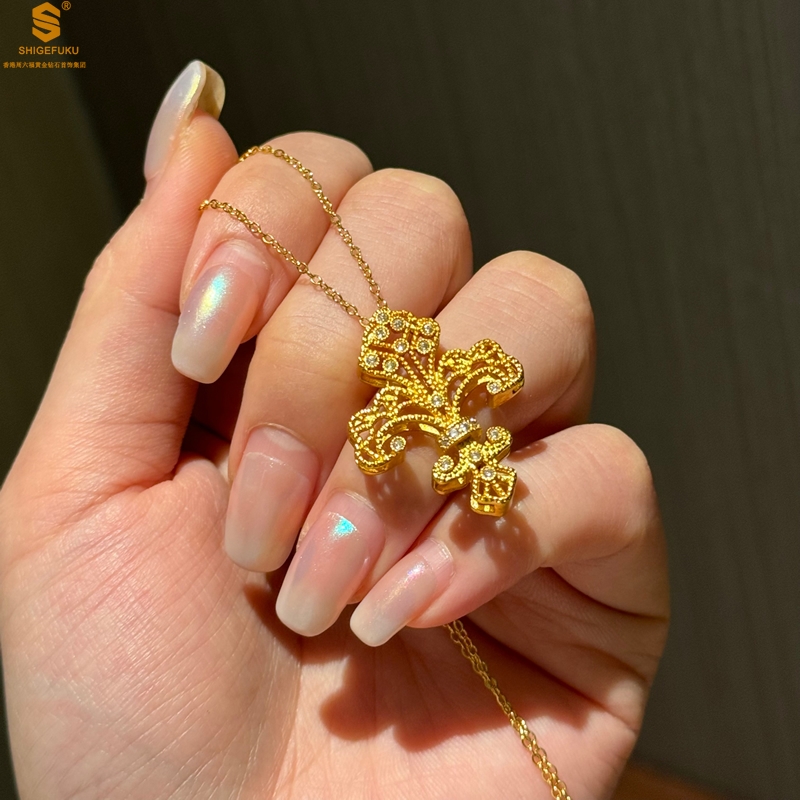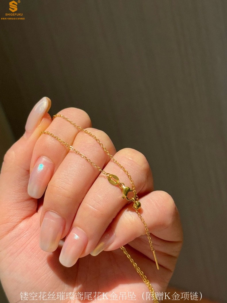 【品名】镂空花丝璀璨鸢尾花K金吊坠(附赠K金项链)