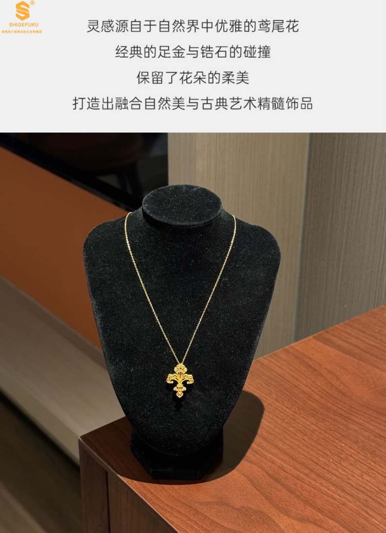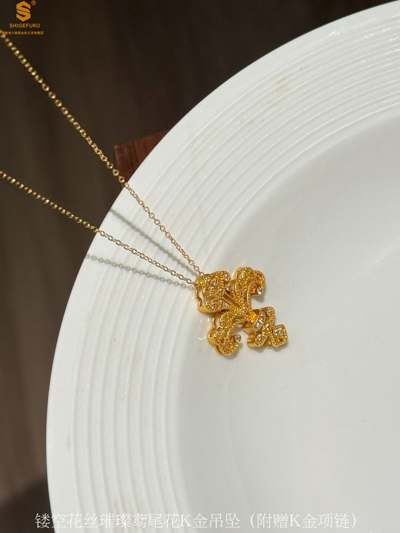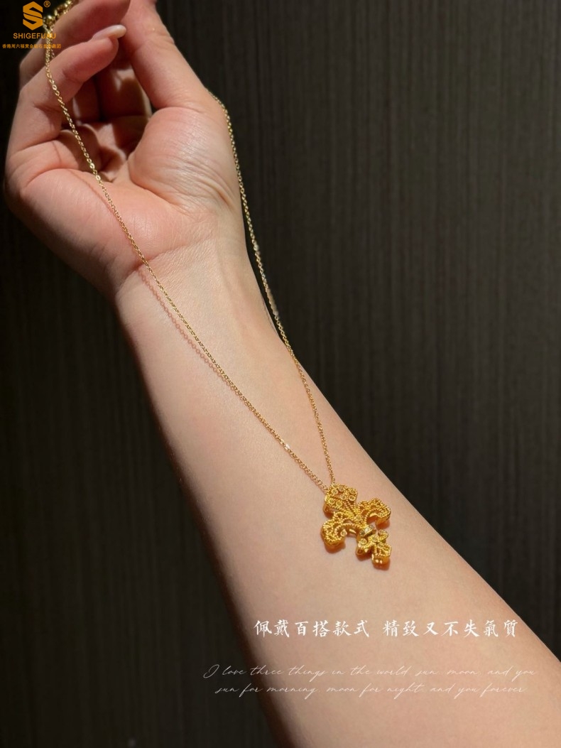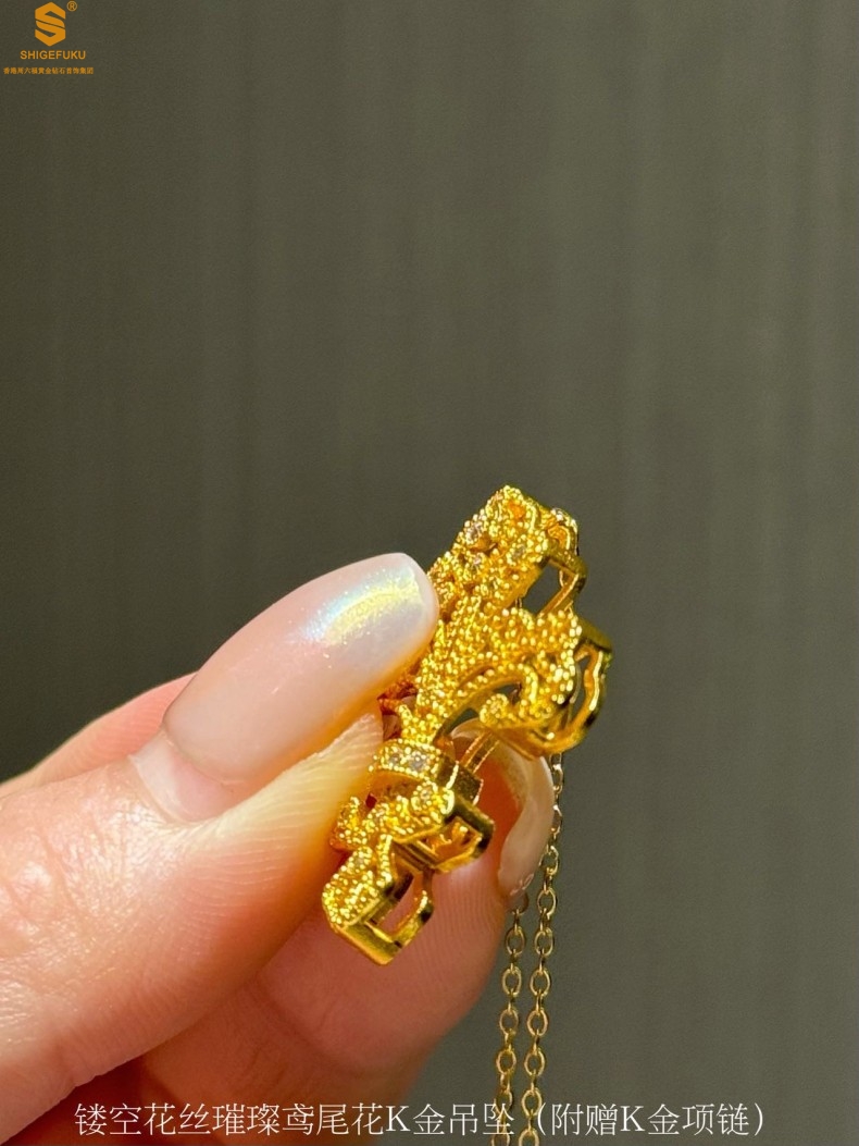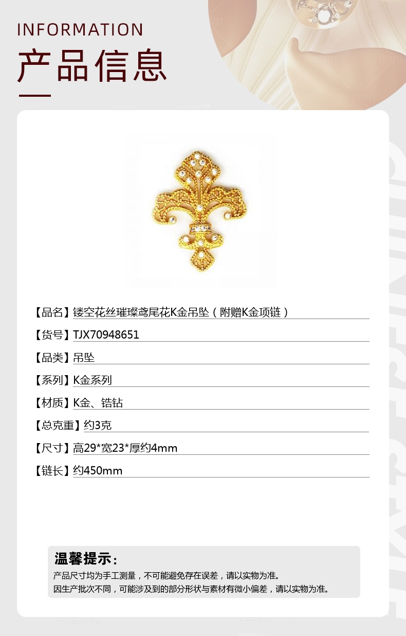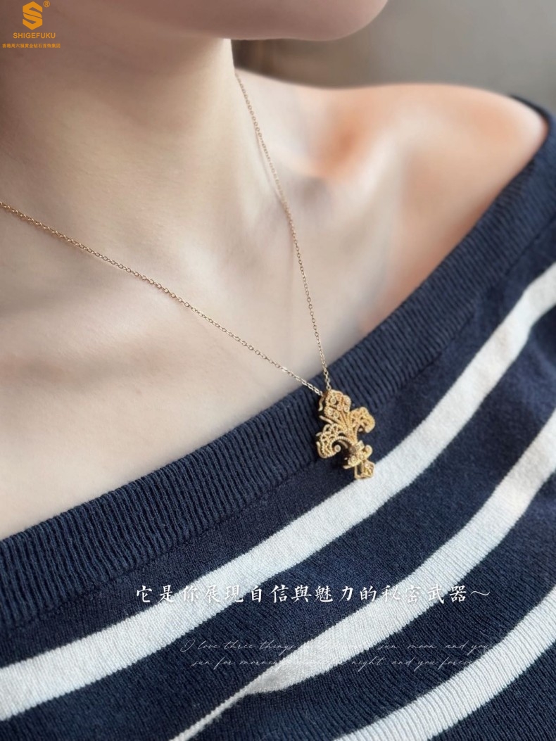 【品名】镂空花丝璀璨鸢尾花K金吊坠(附赠K金项链)