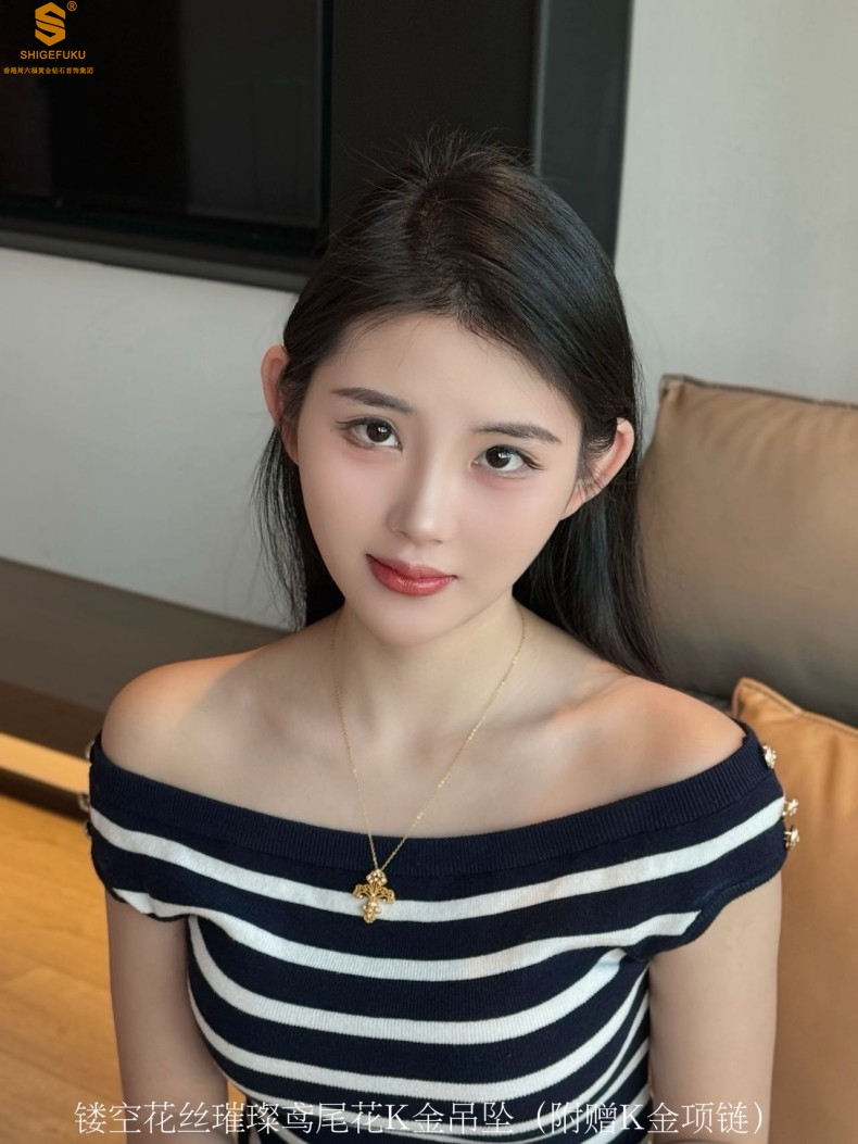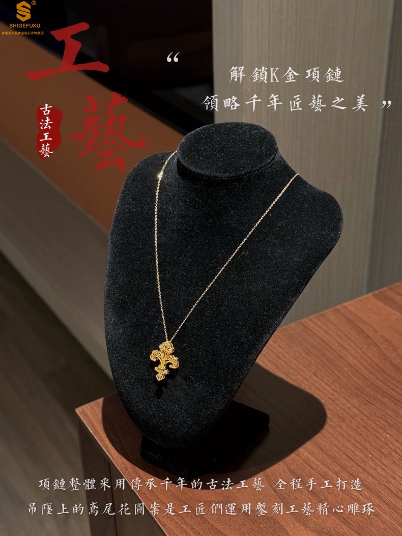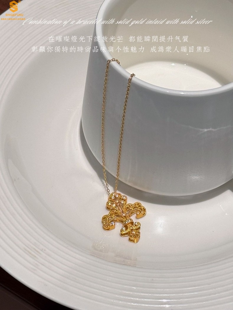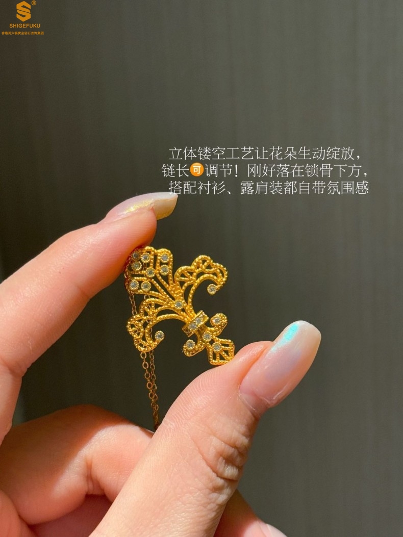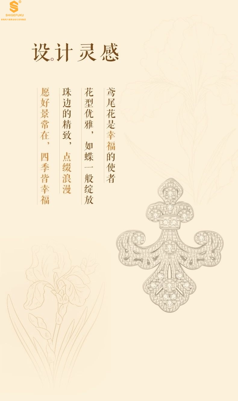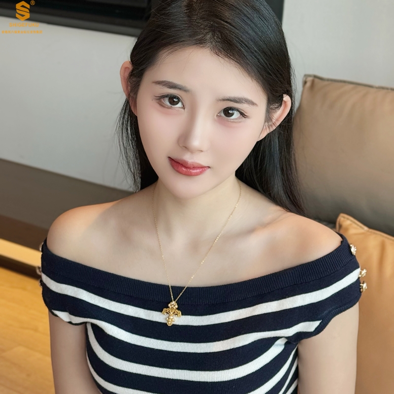 【品名】镂空花丝璀璨鸢尾花K金吊坠(附赠K金项链)