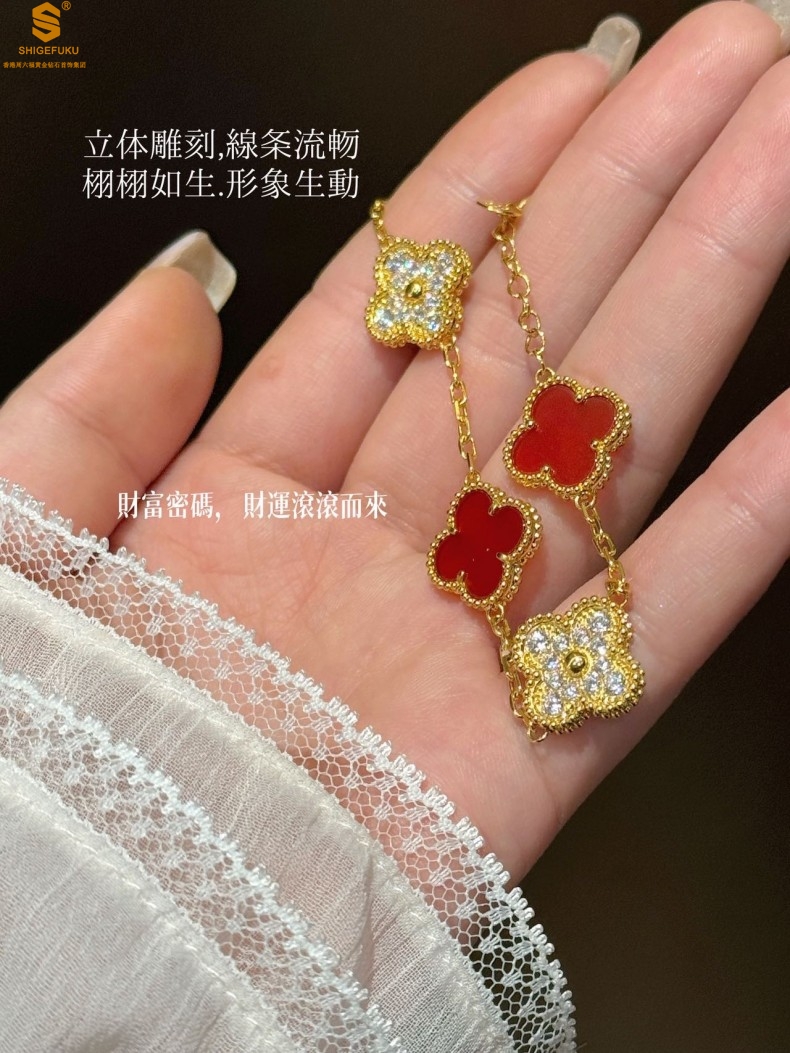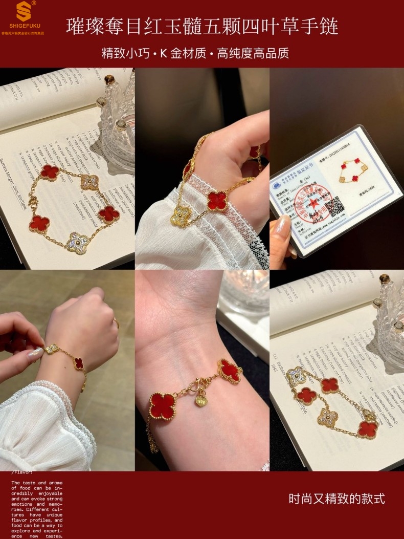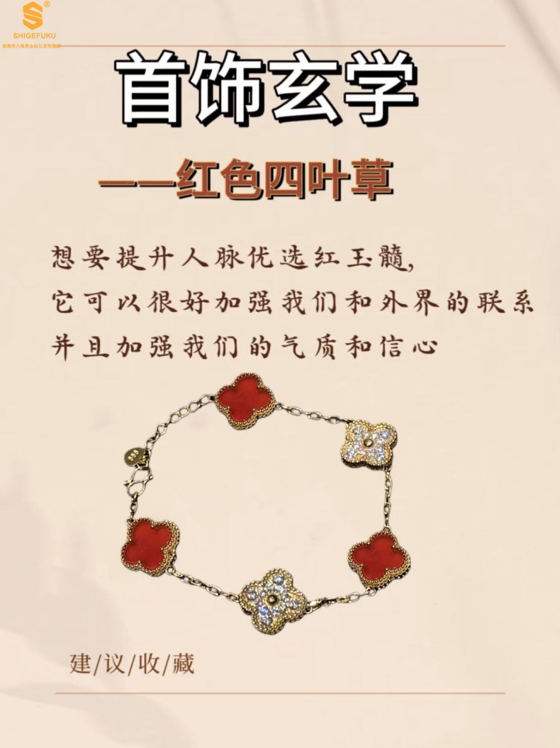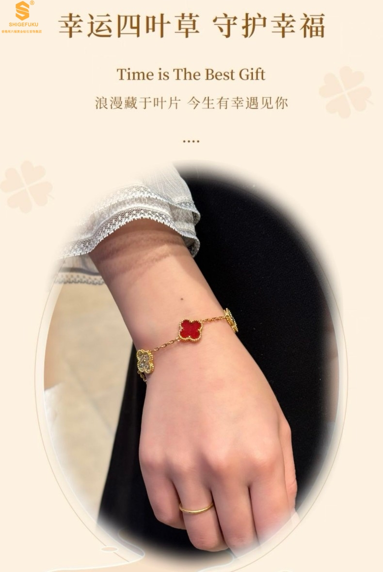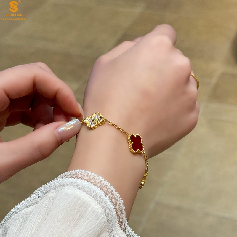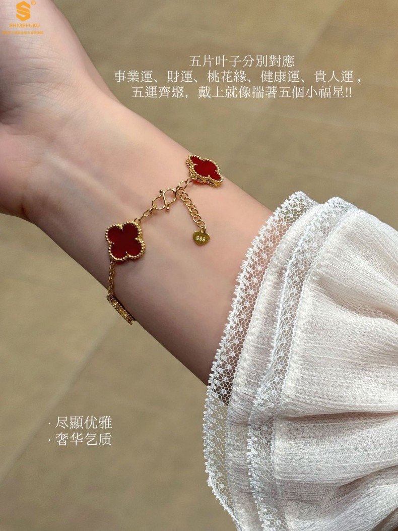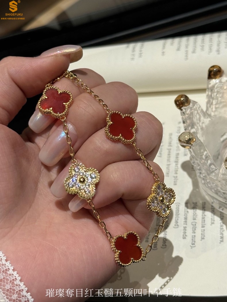 【品名】璀璨夺目红玉髓五颗四叶草手链
