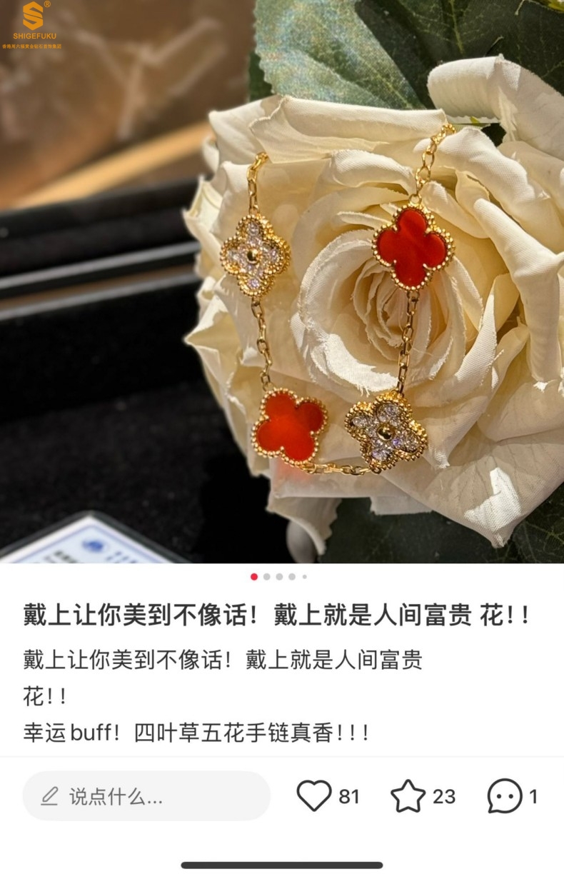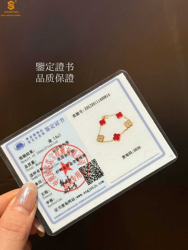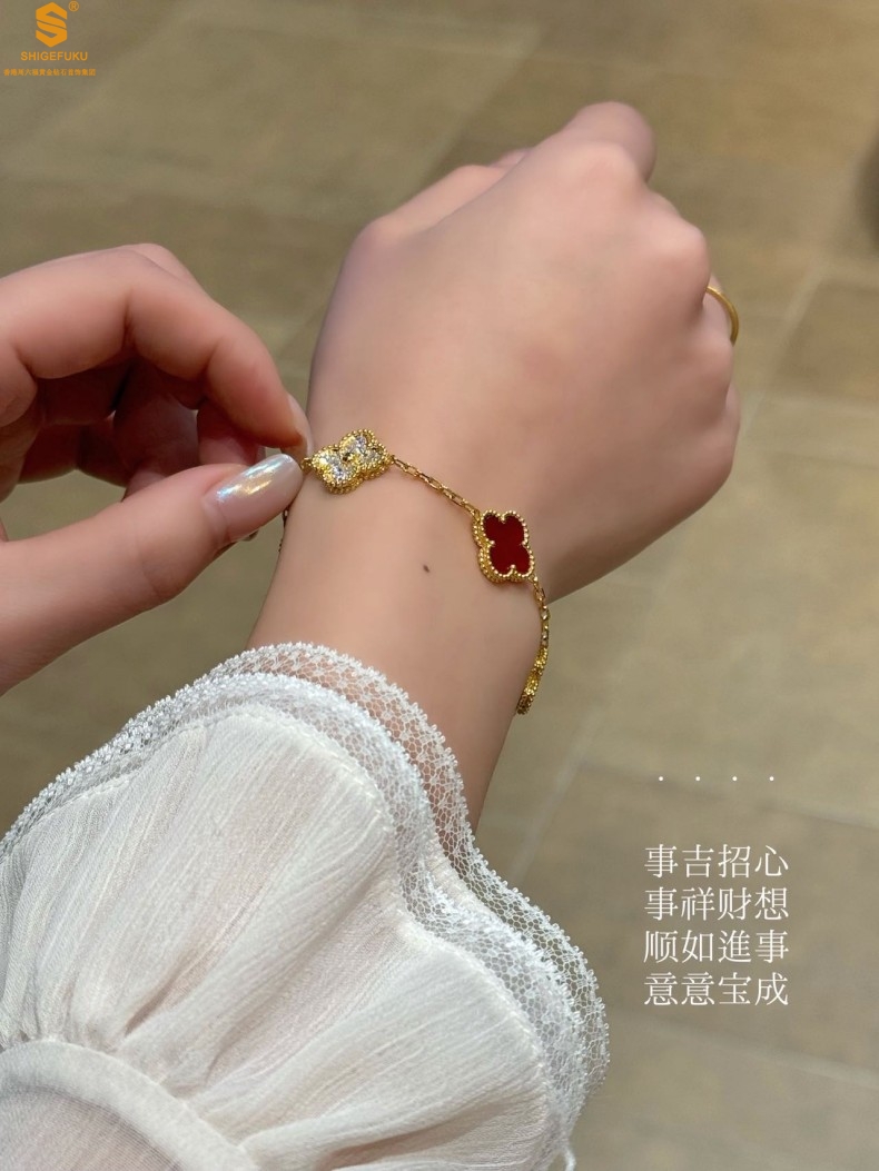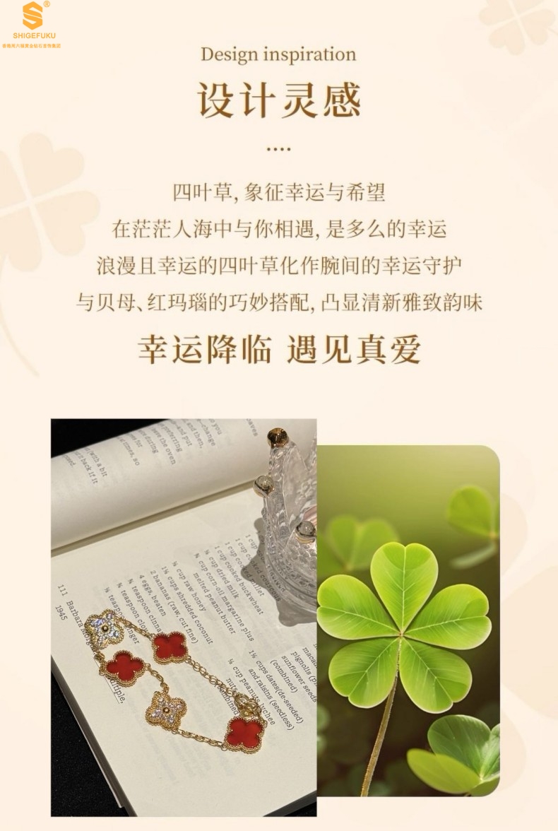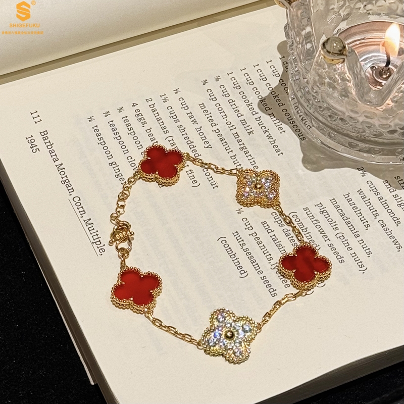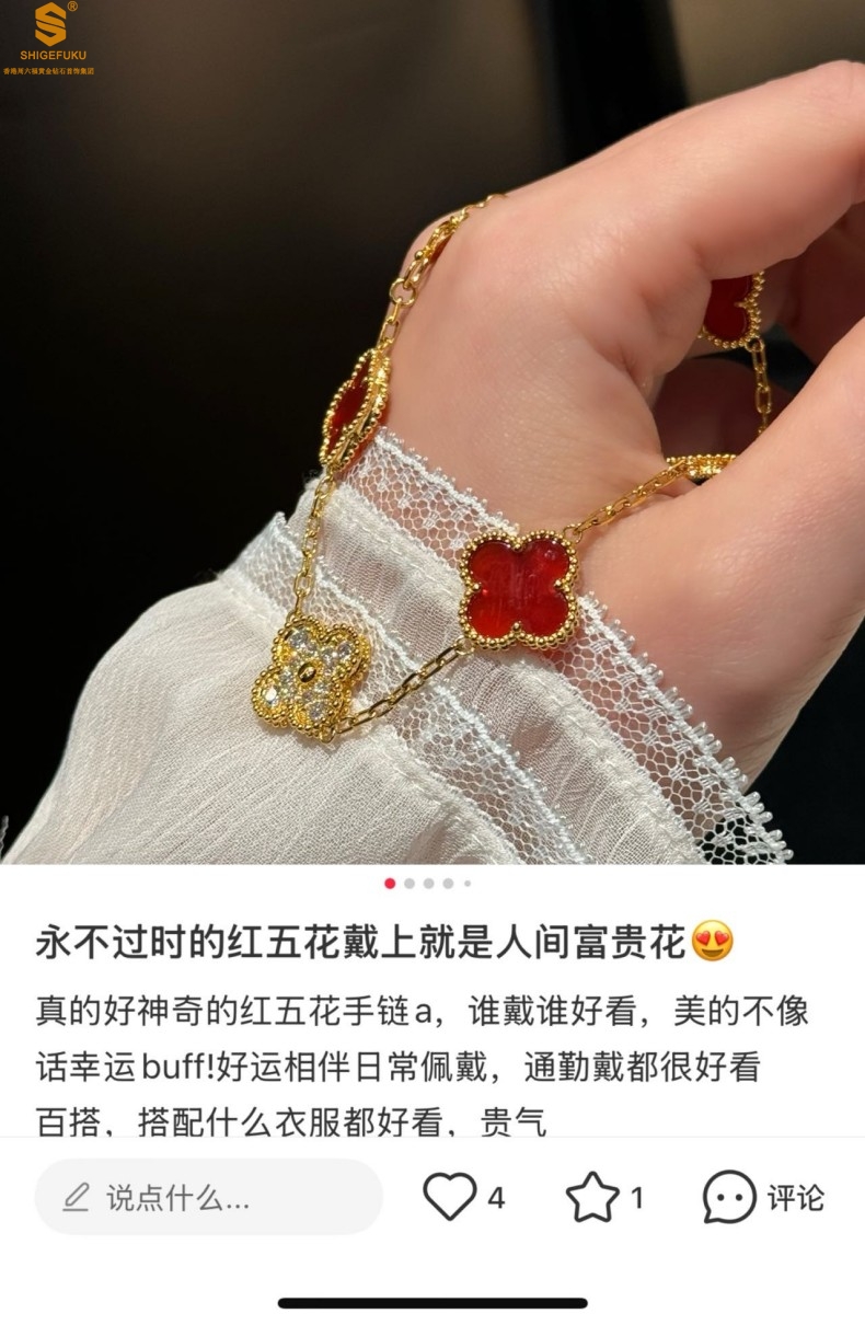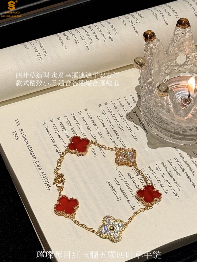 【品名】璀璨夺目红玉髓五颗四叶草手链