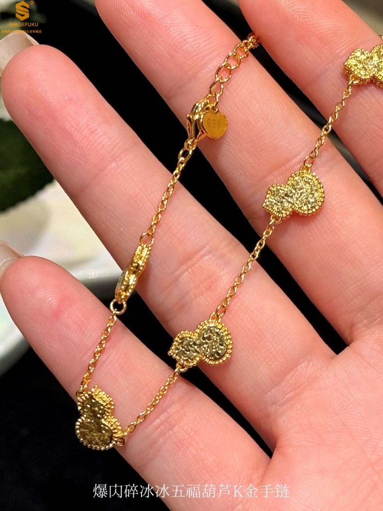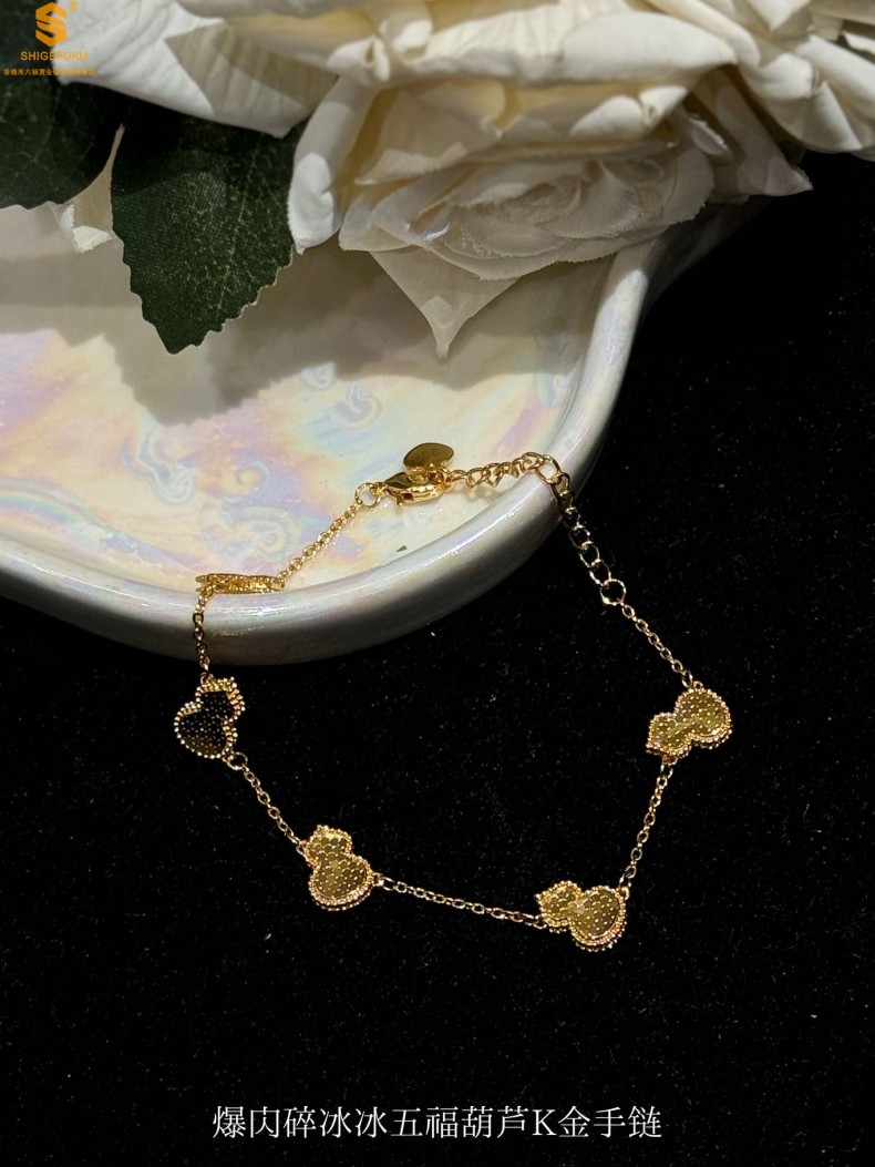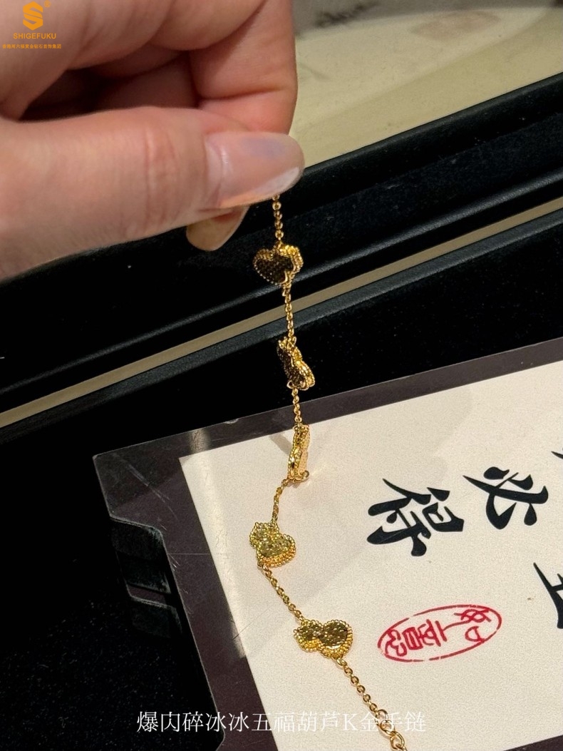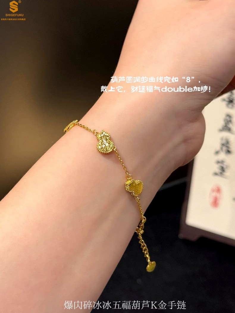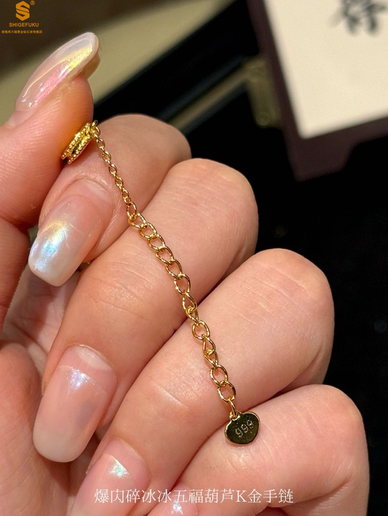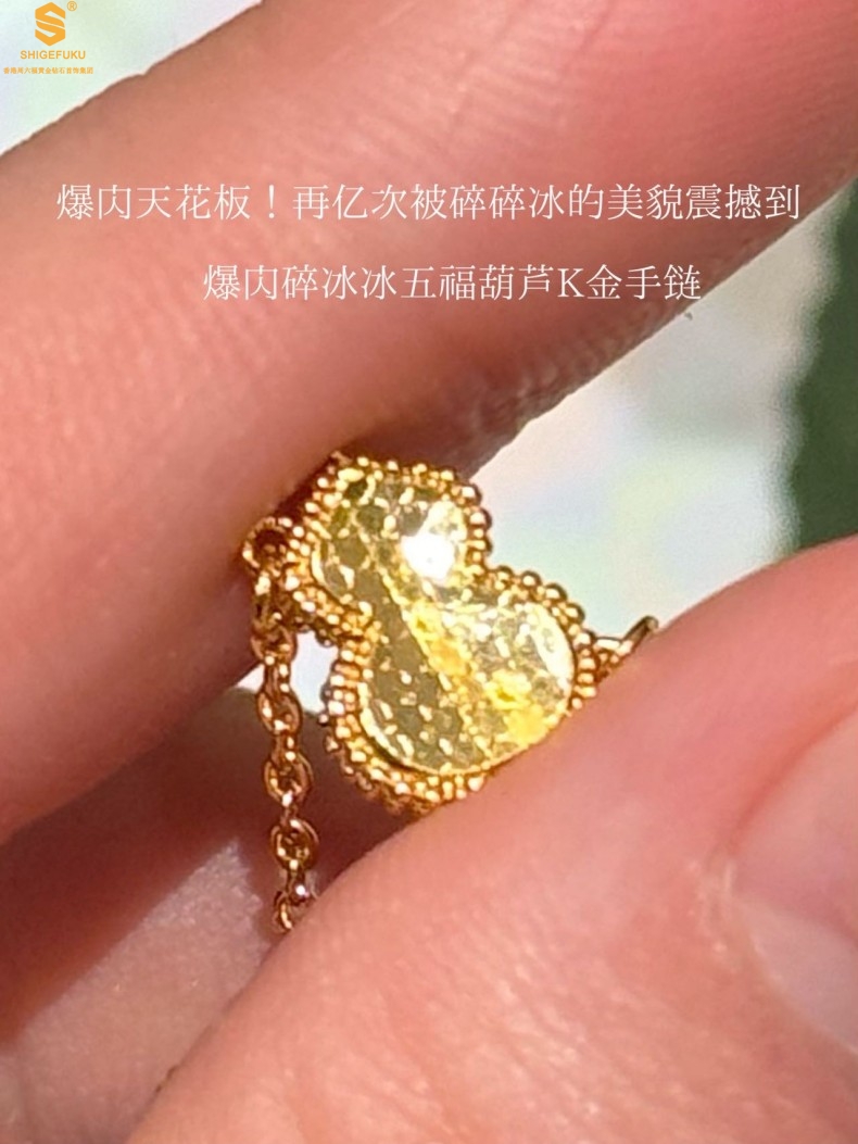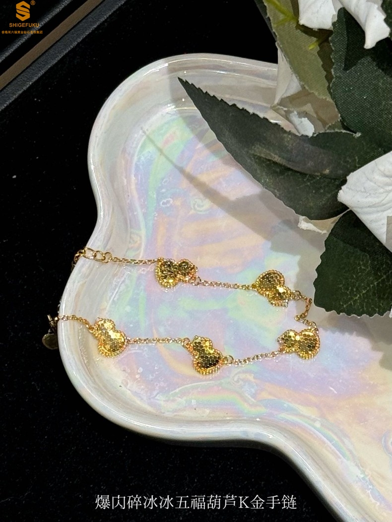 【品名】爆闪碎冰冰五福葫芦K金手链