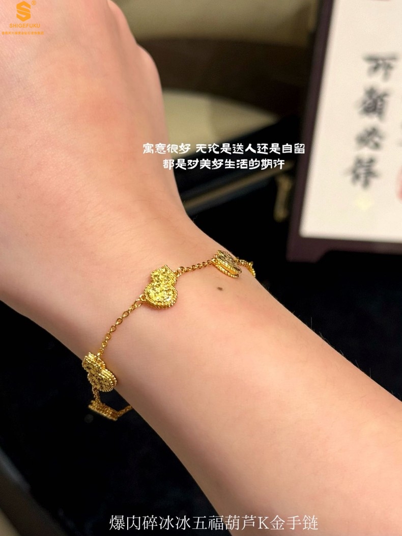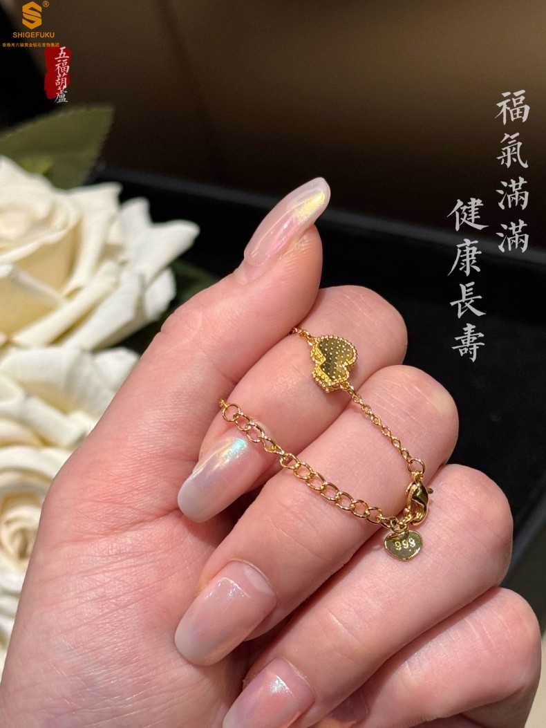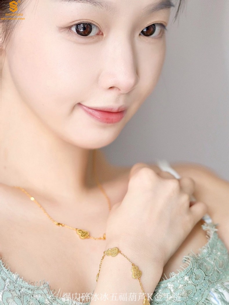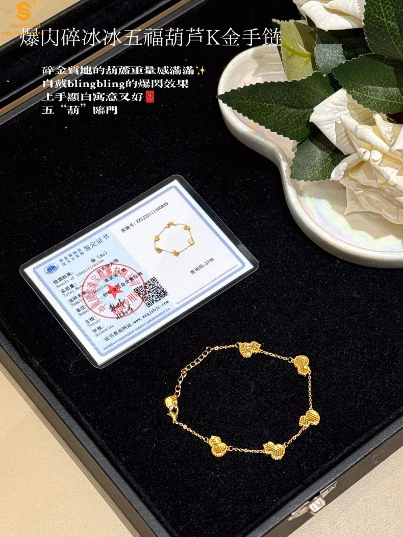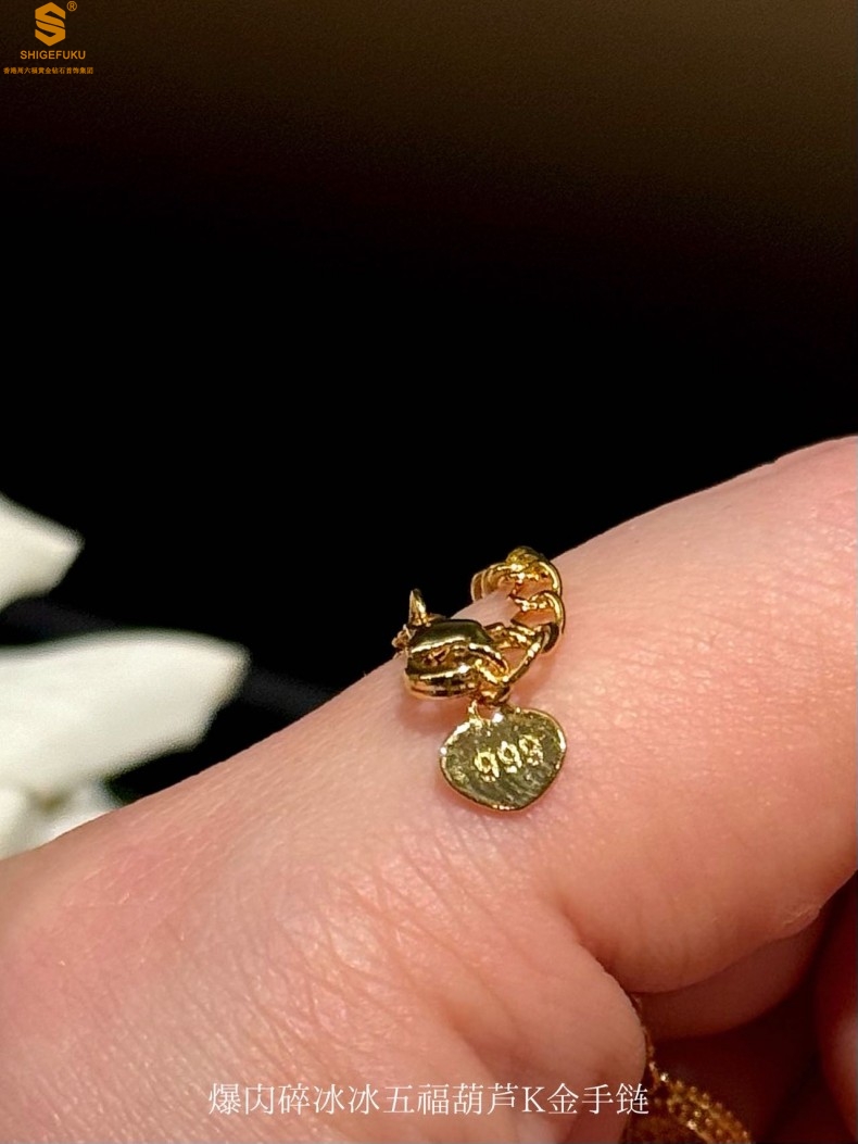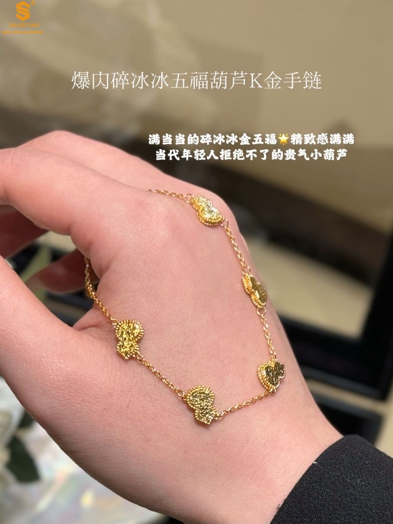 【品名】爆闪碎冰冰五福葫芦K金手链