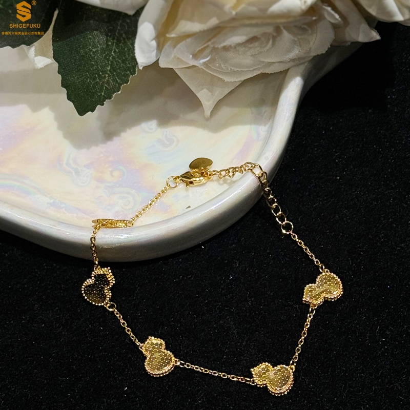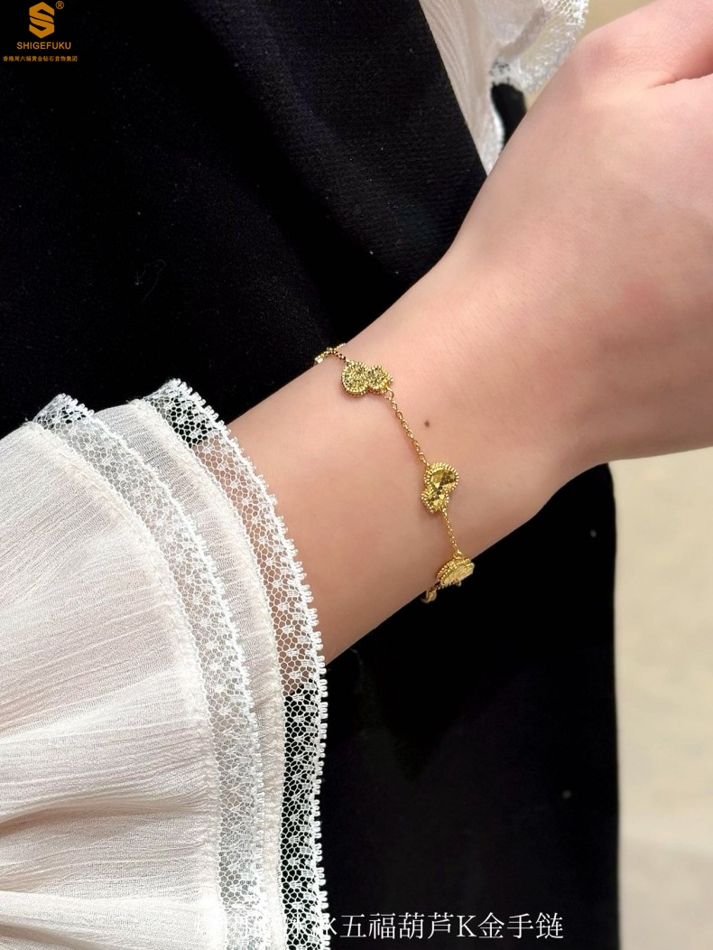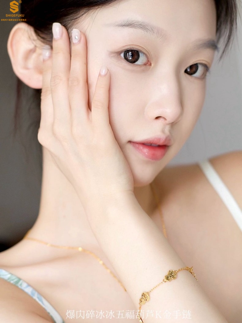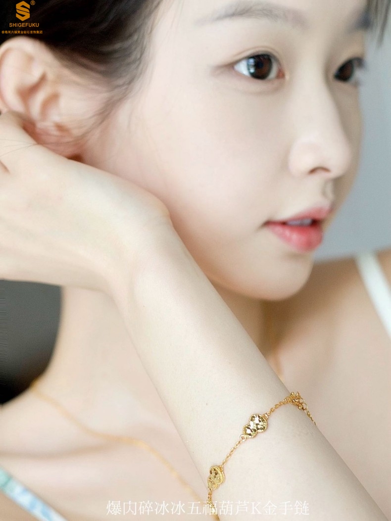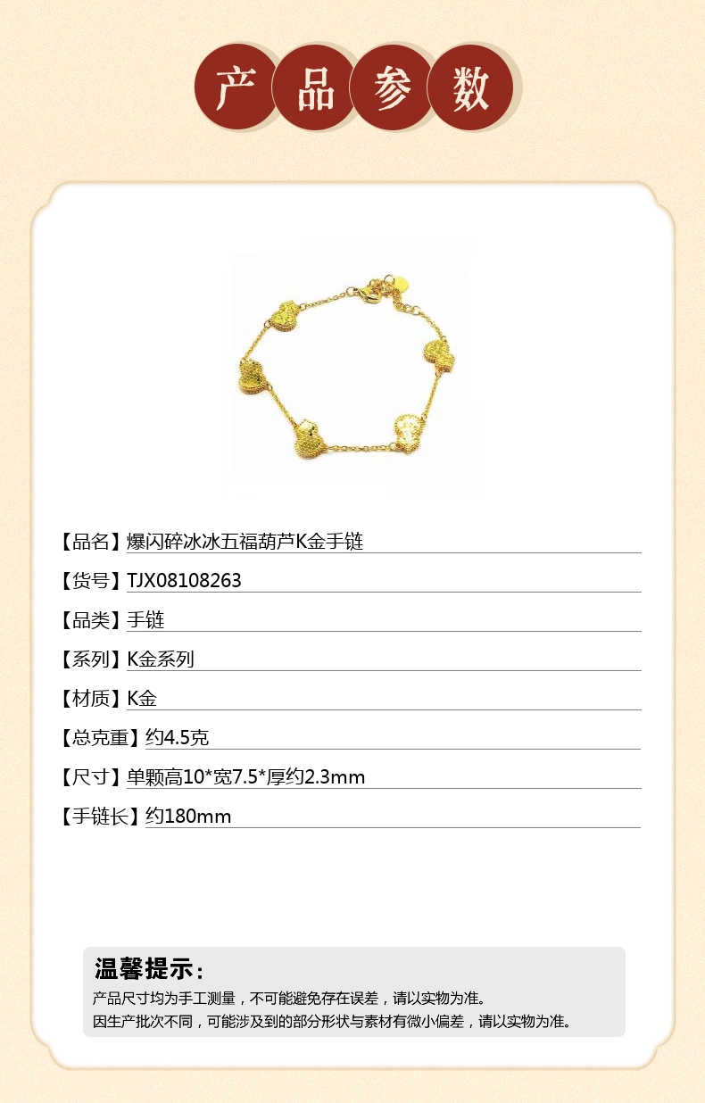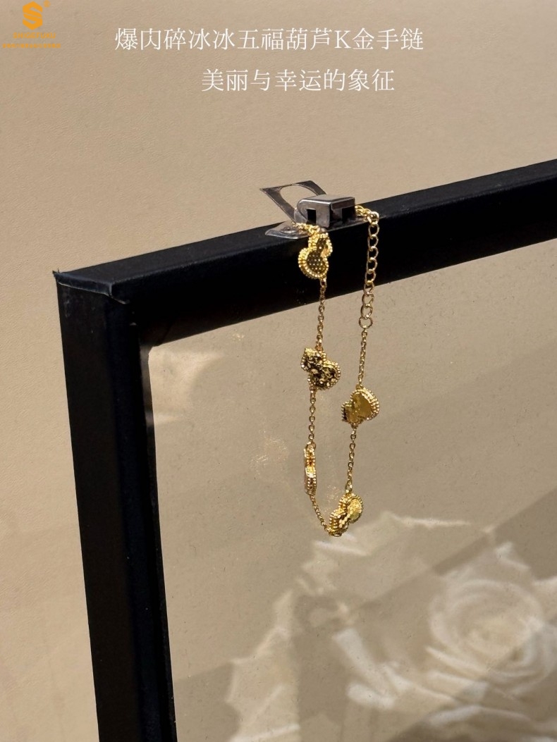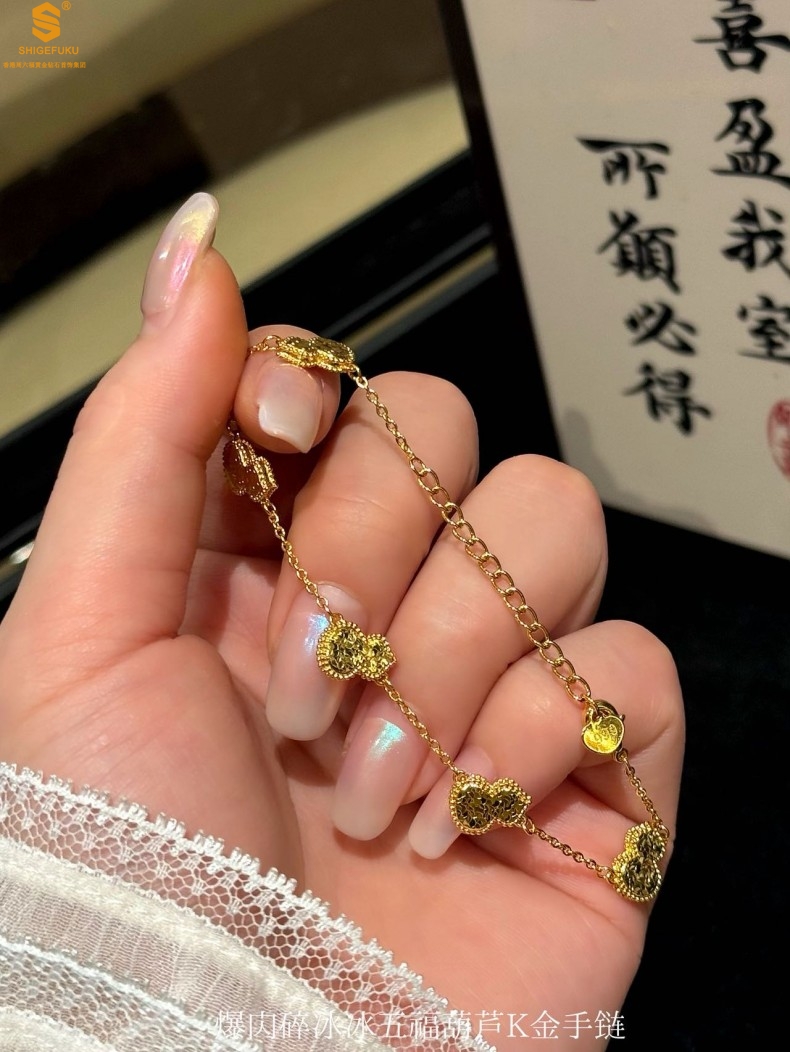 【品名】爆闪碎冰冰五福葫芦K金手链