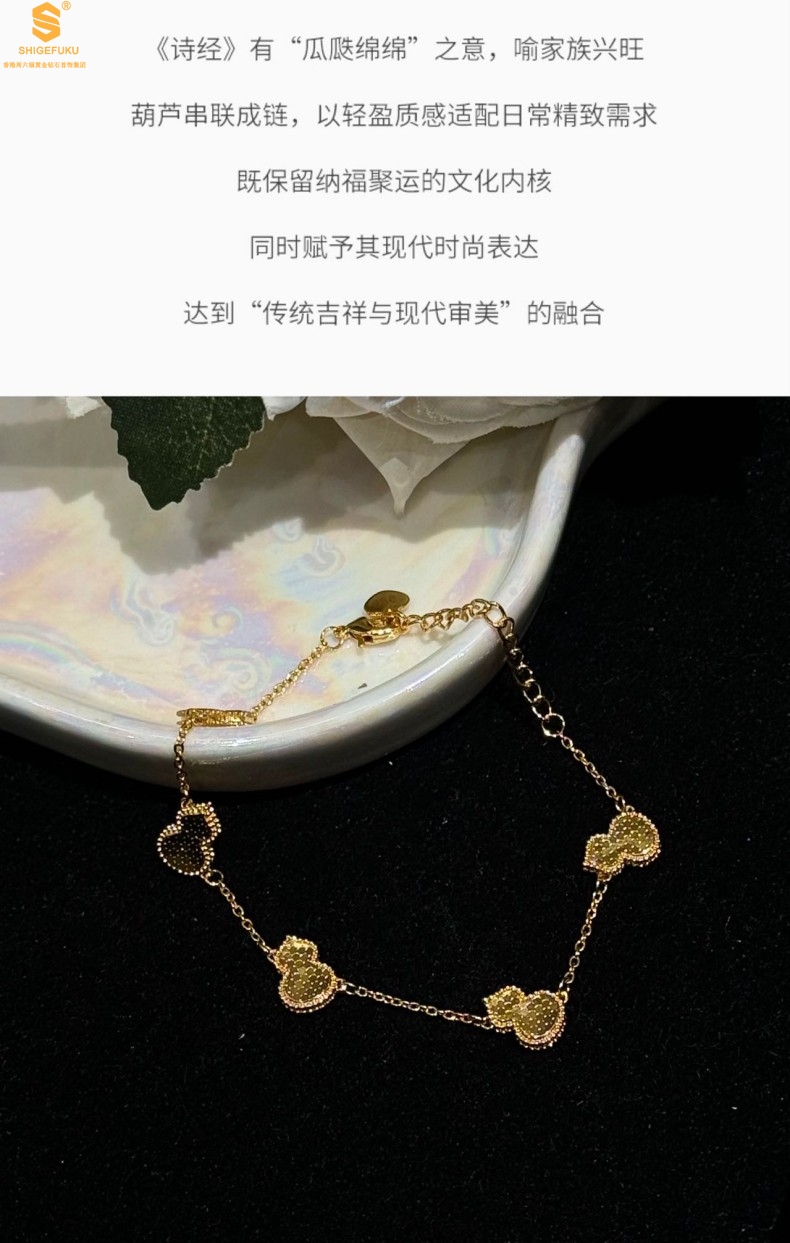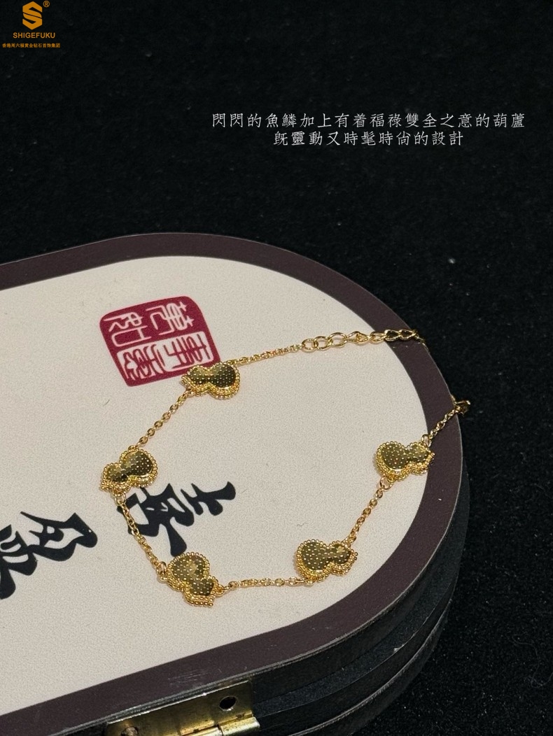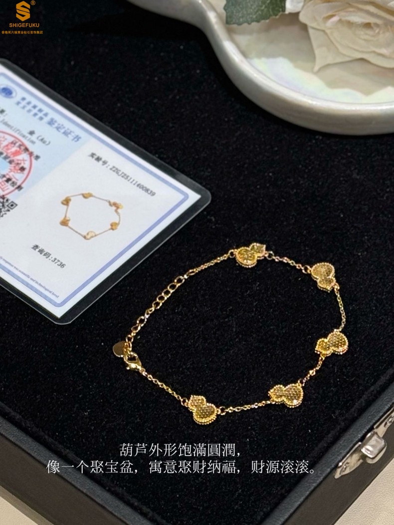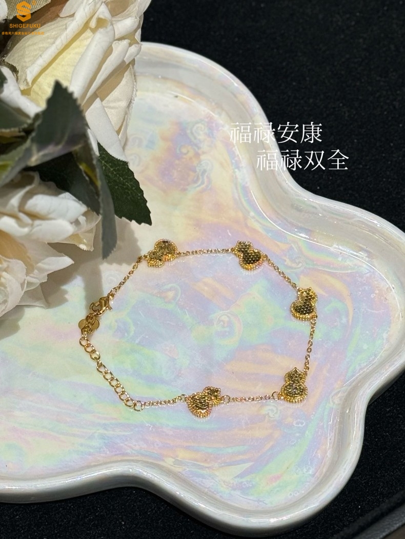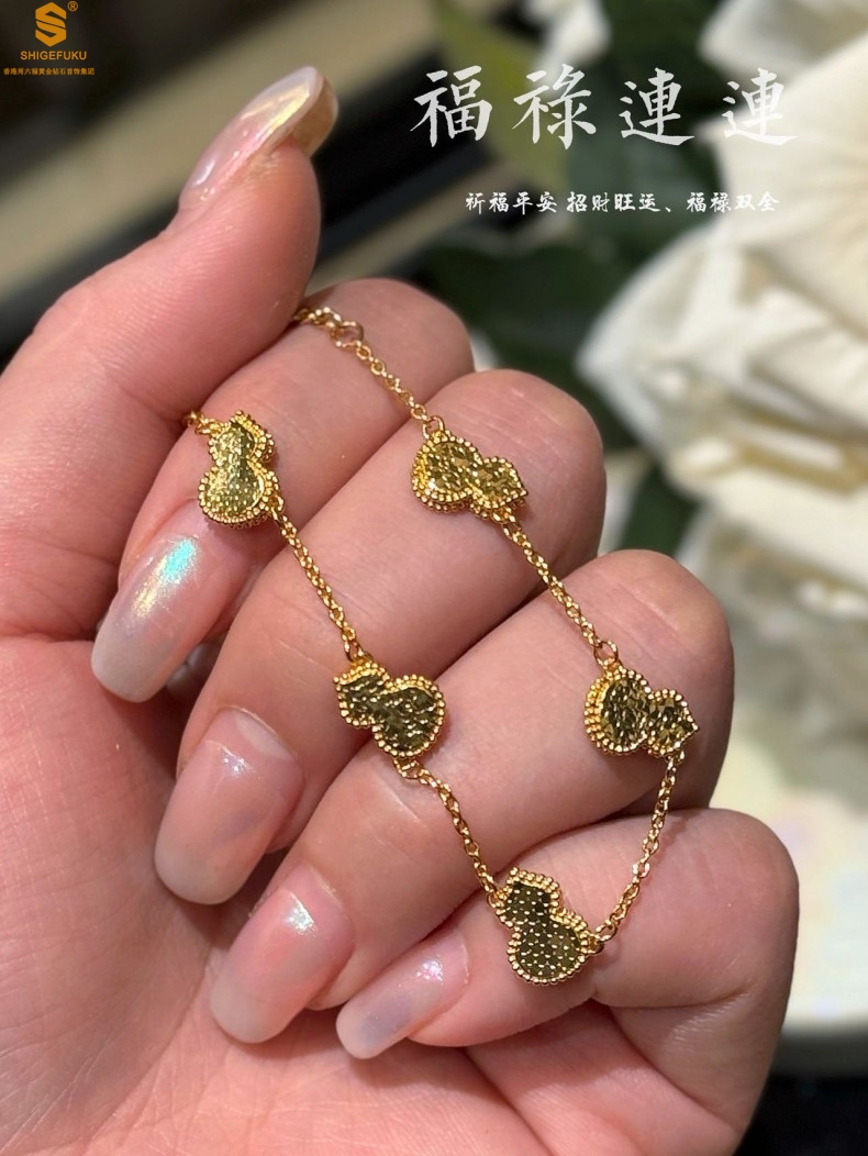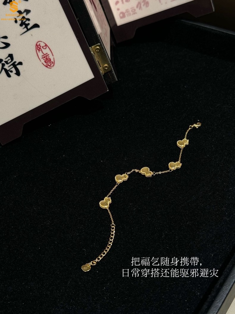 【品名】爆闪碎冰冰五福葫芦K金手链