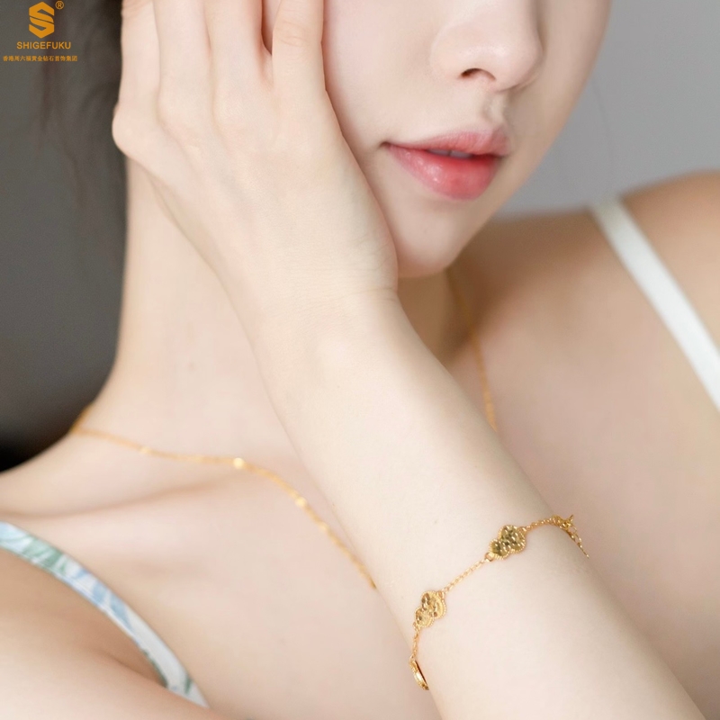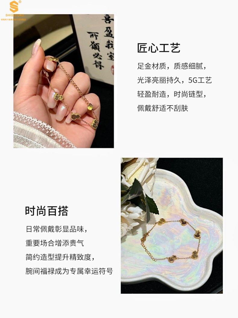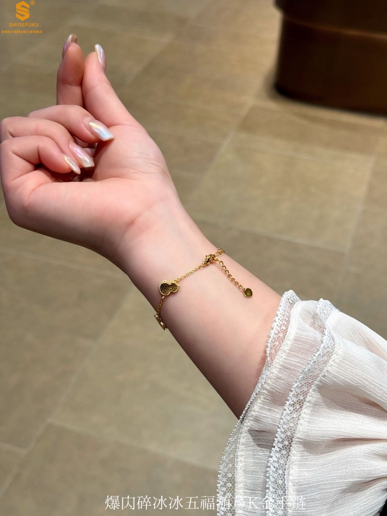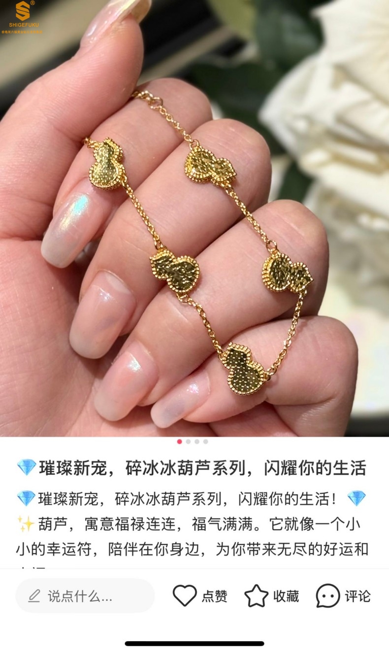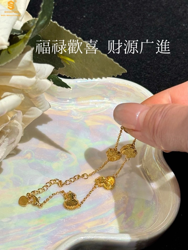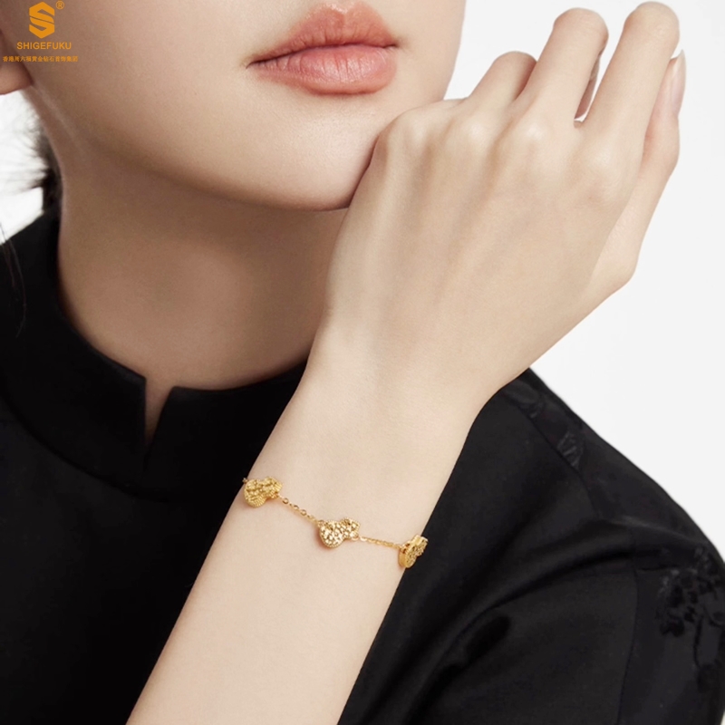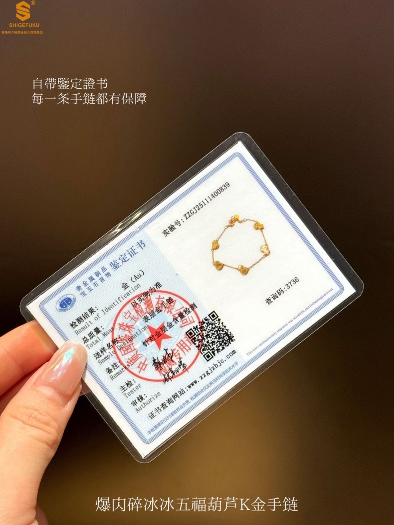 【品名】爆闪碎冰冰五福葫芦K金手链