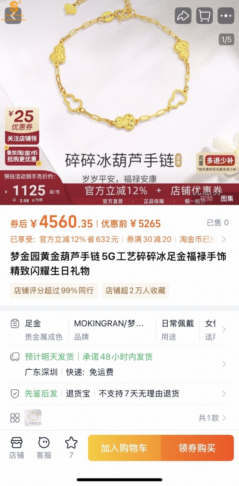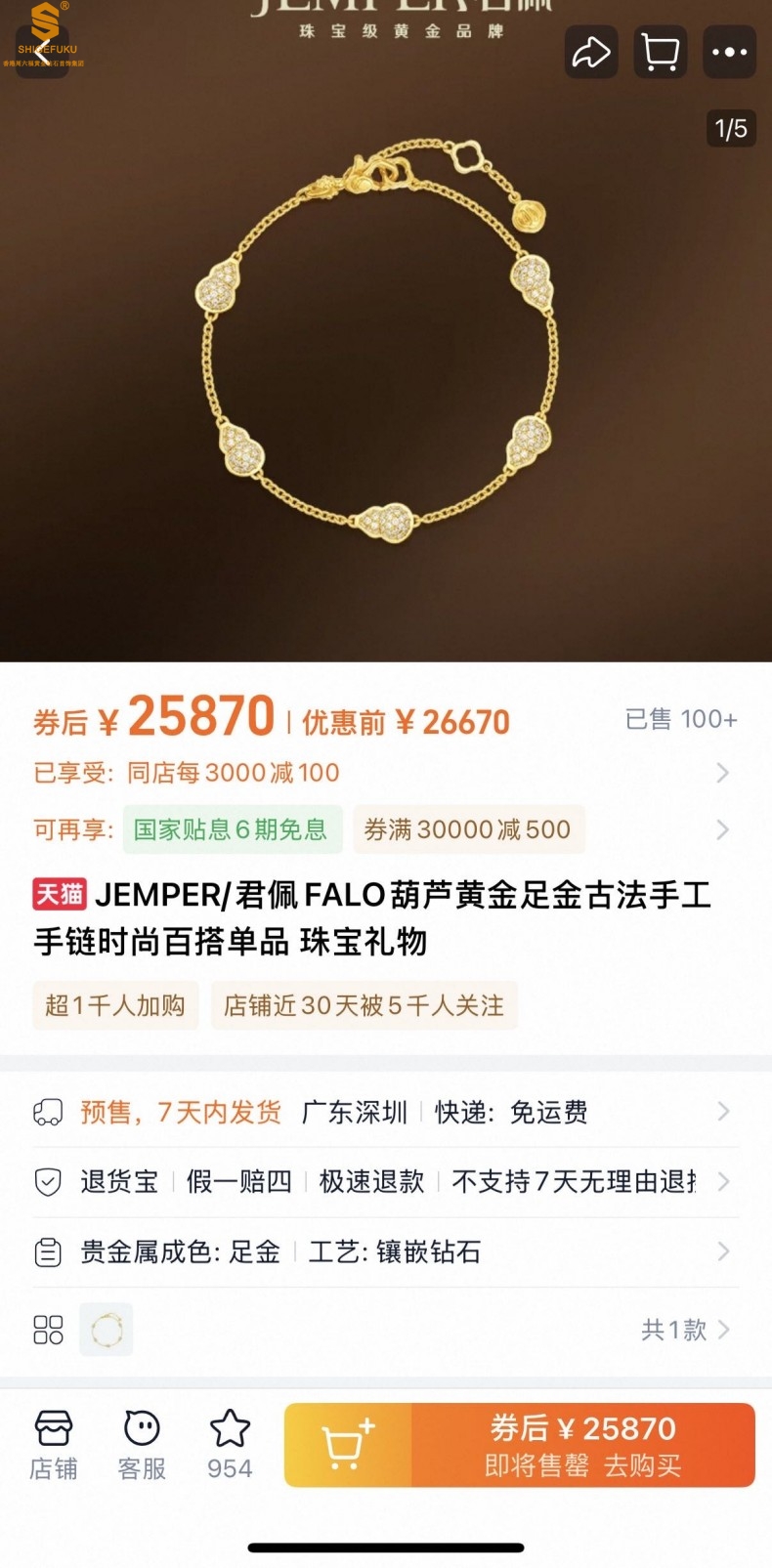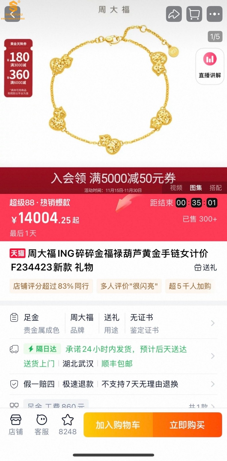 【品牌】香港周六福黄金钻石首饰