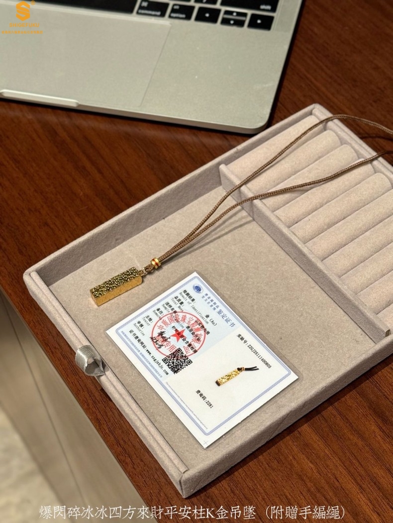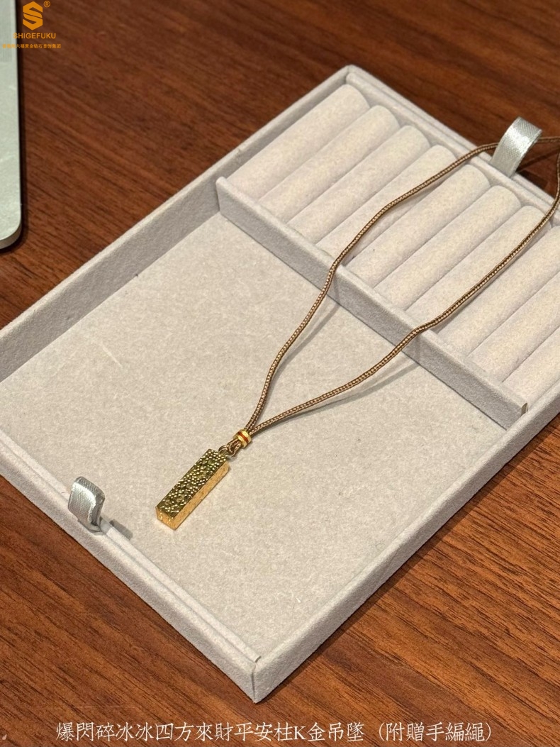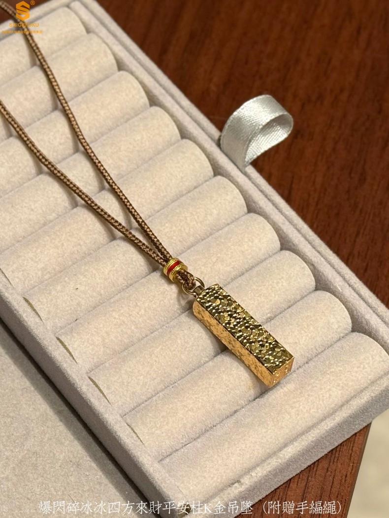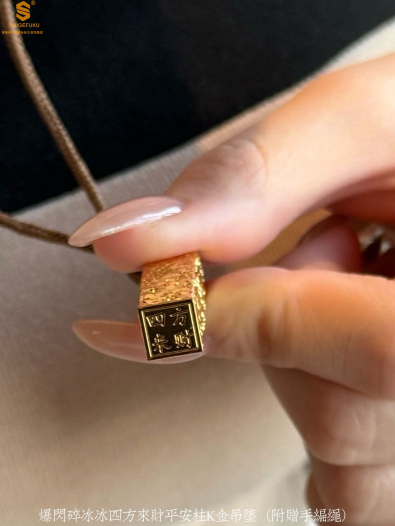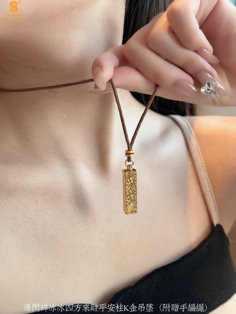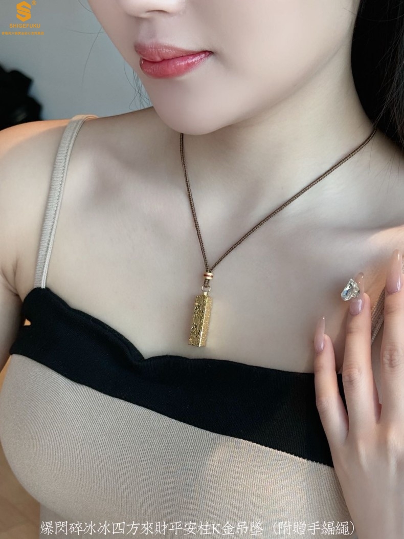 【品名】爆闪碎冰冰四方来财平安柱K金吊坠(附赠手编绳)