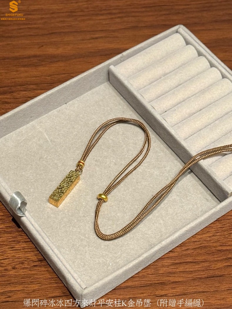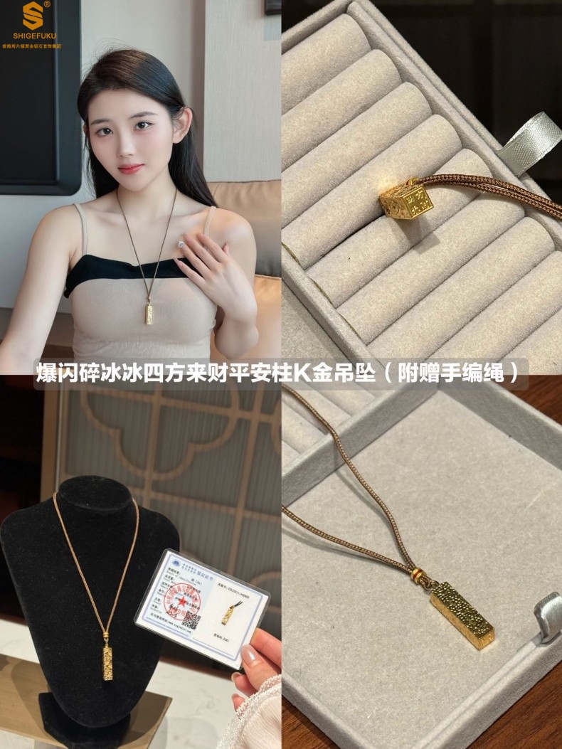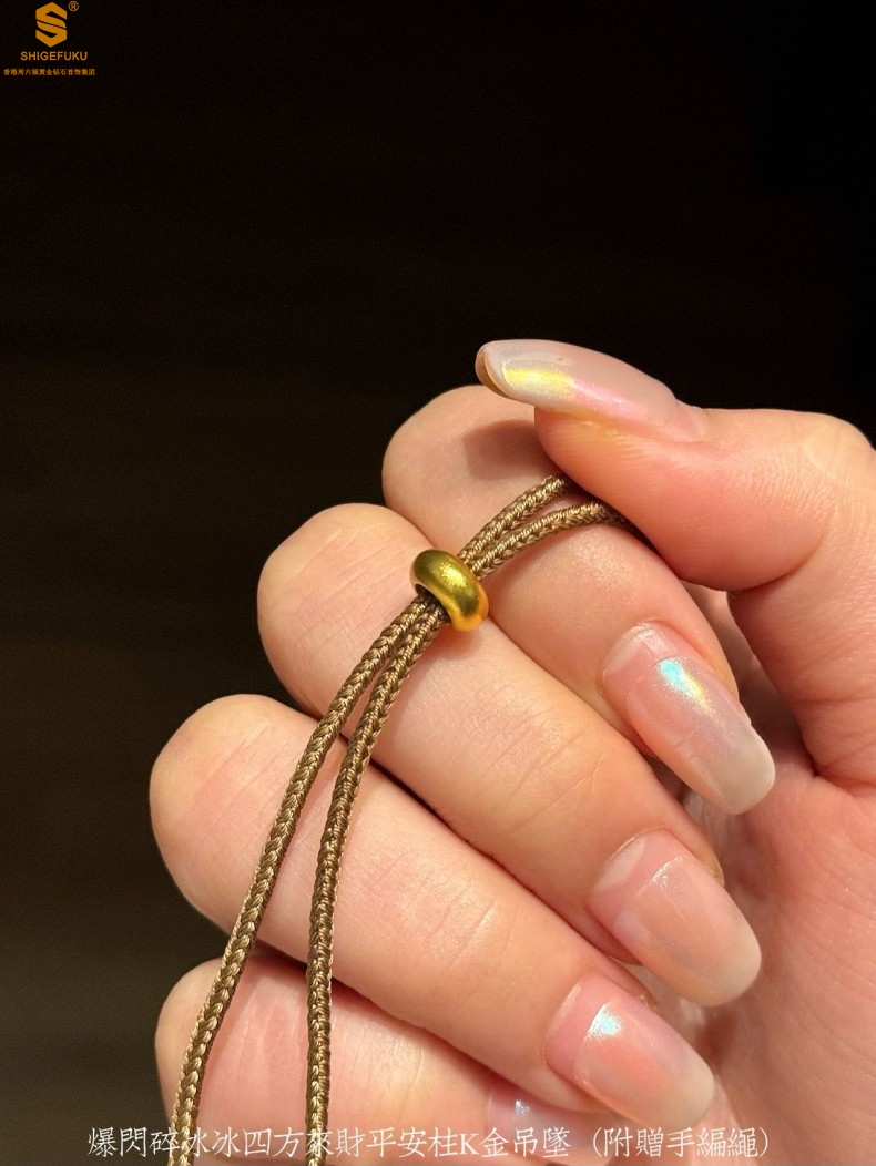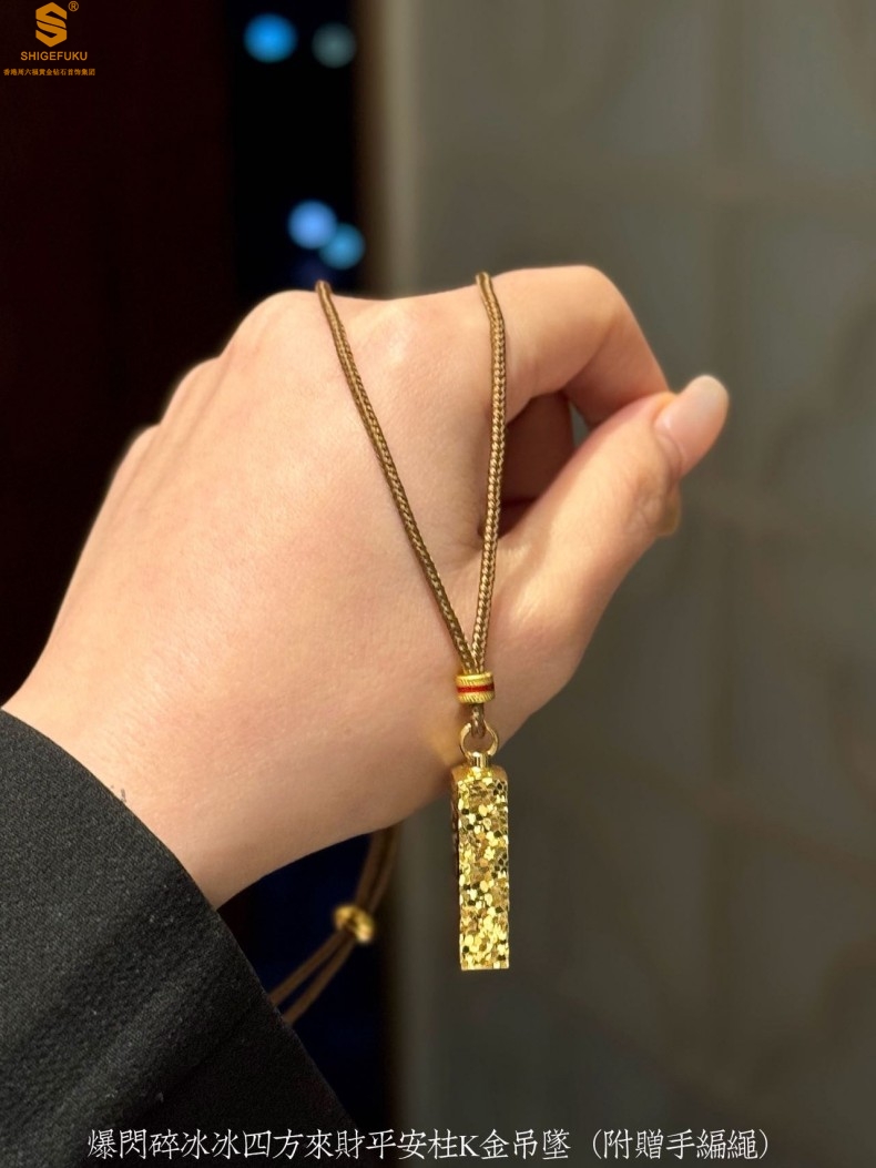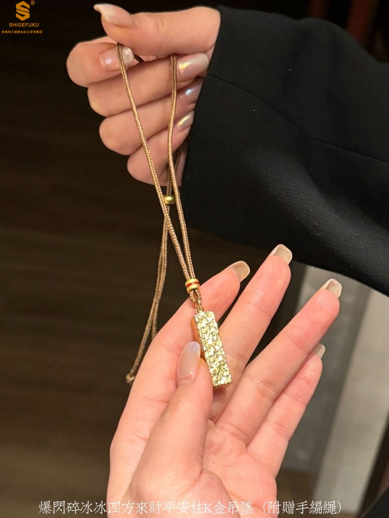 【品名】爆闪碎冰冰四方来财平安柱K金吊坠(附赠手编绳)