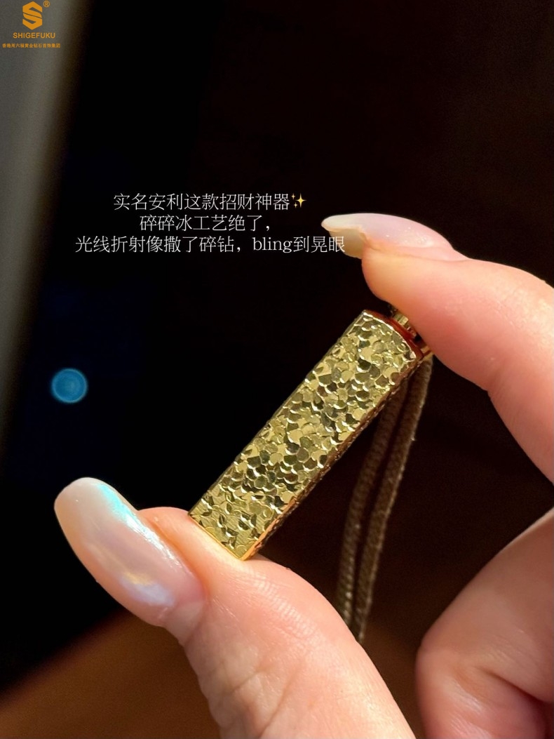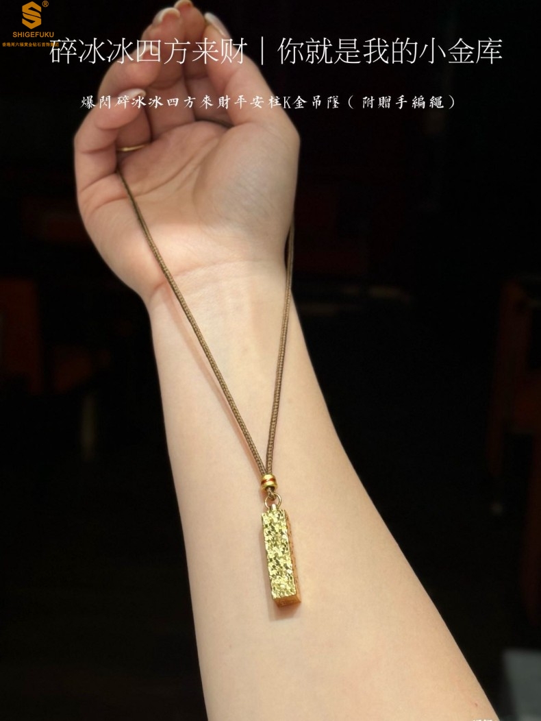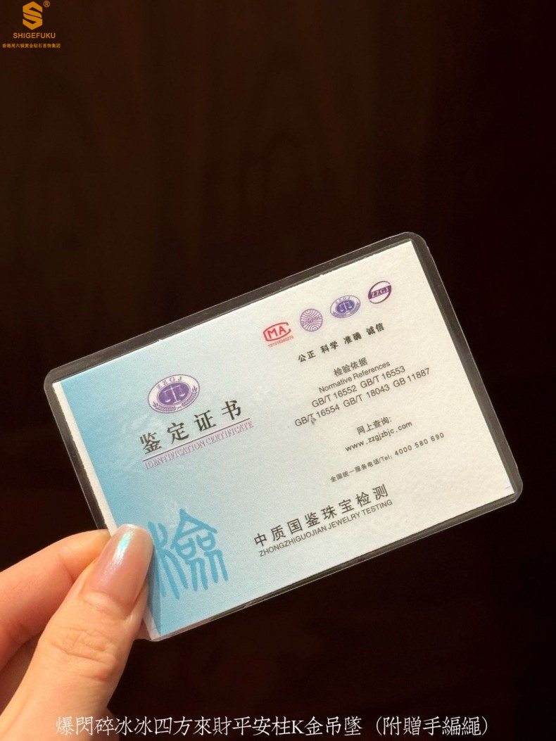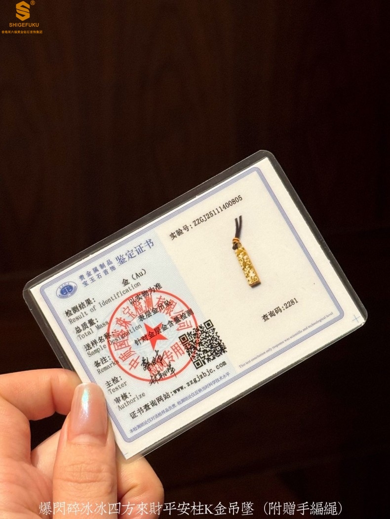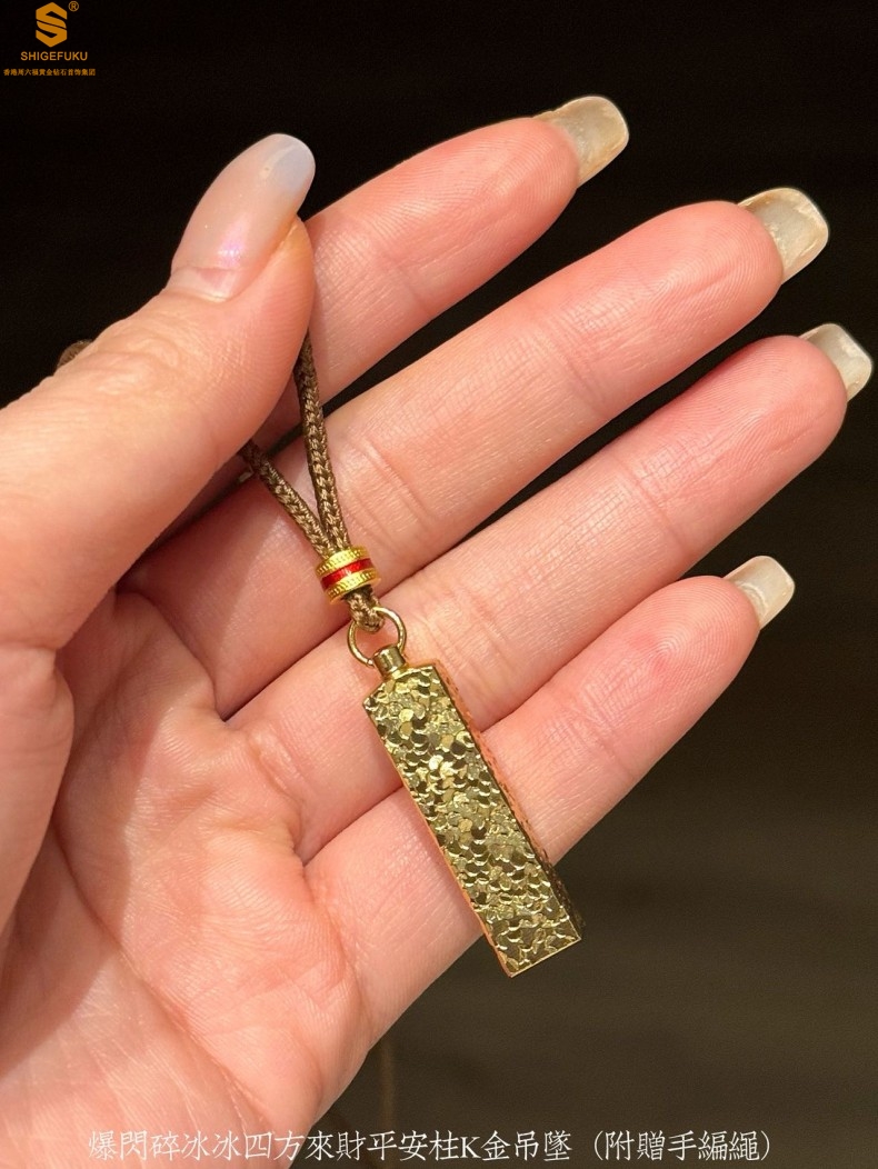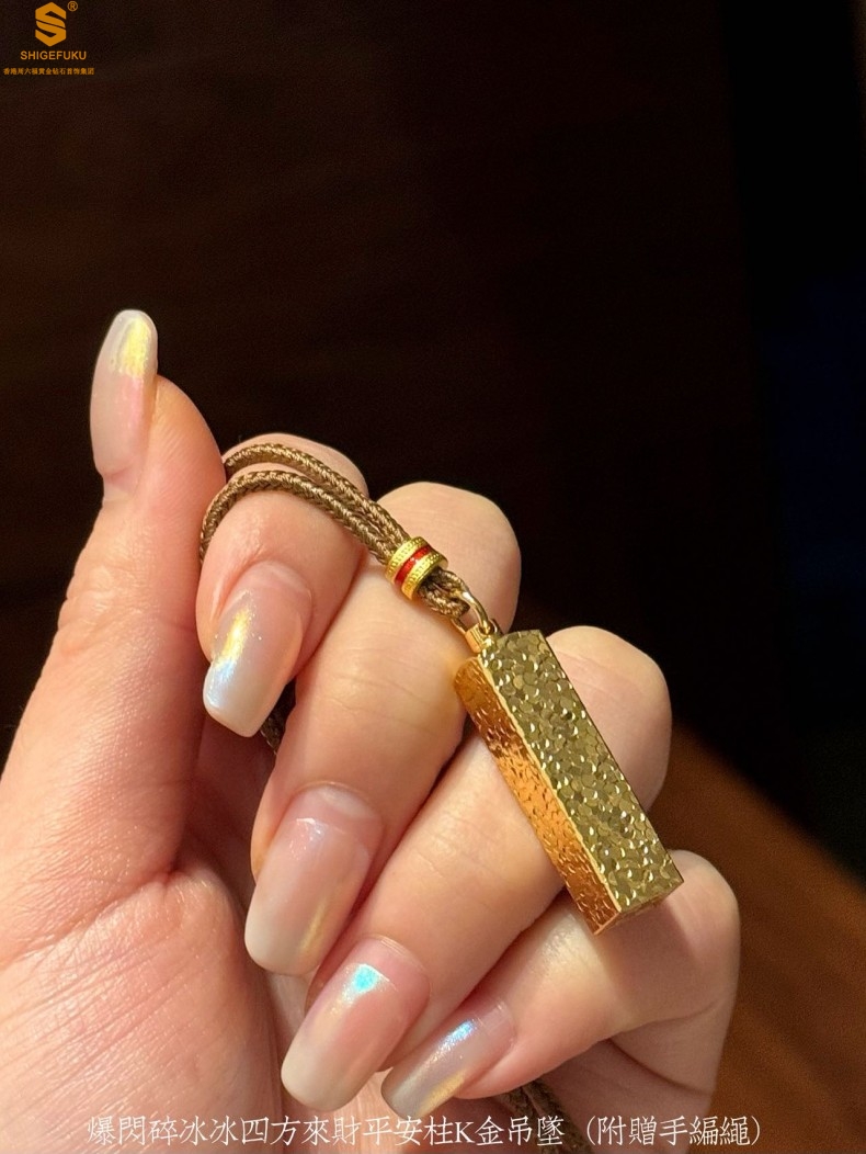 【品名】爆闪碎冰冰四方来财平安柱K金吊坠(附赠手编绳)
