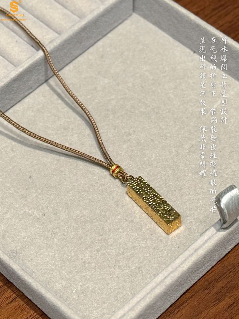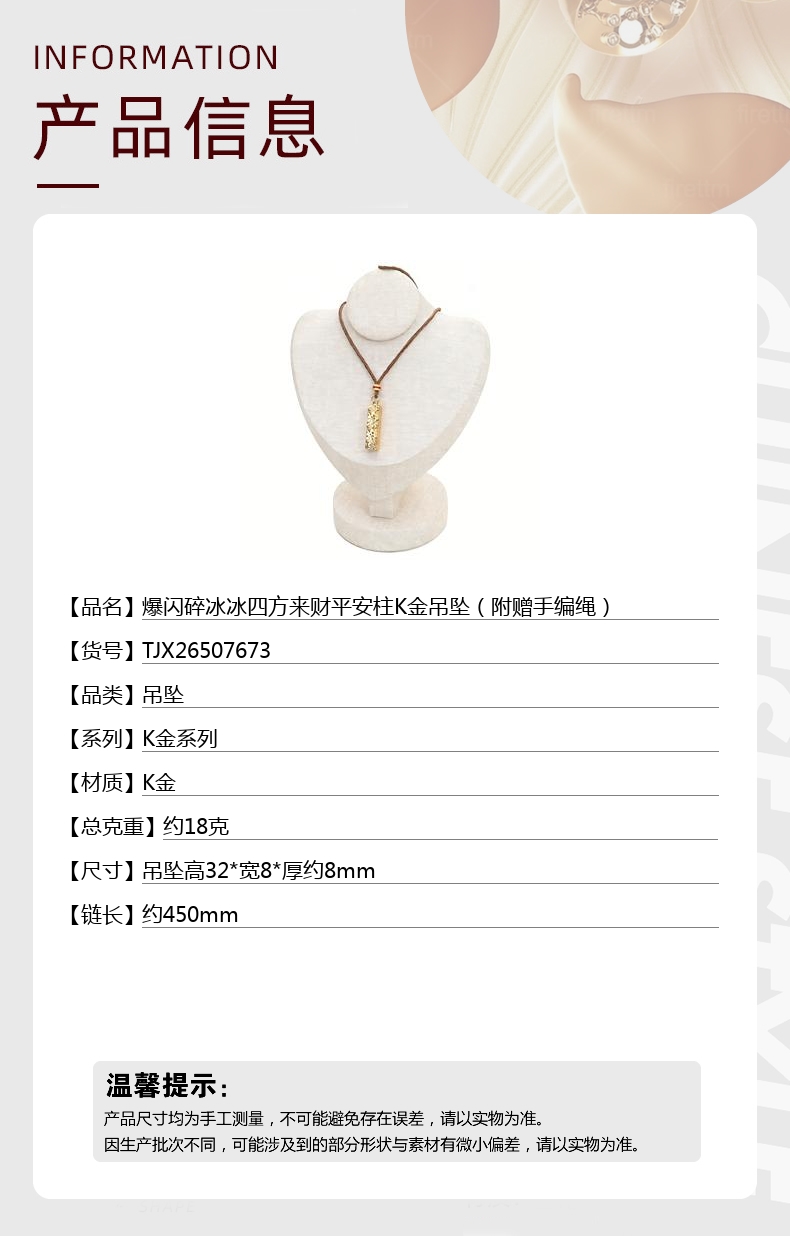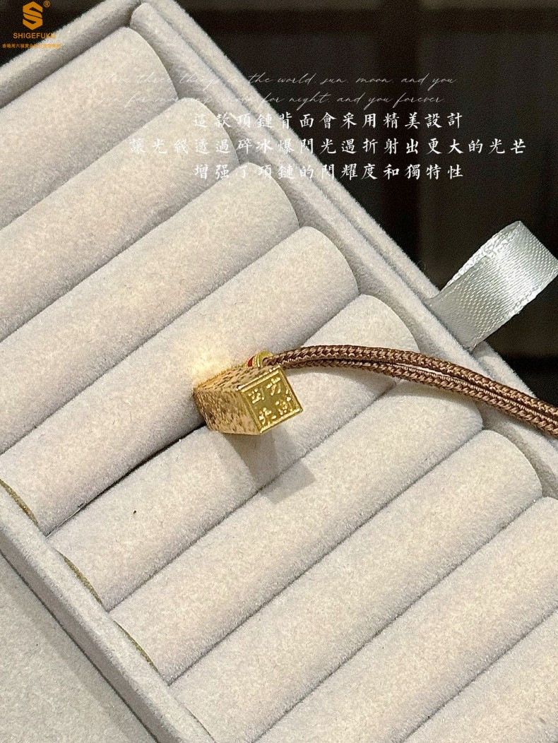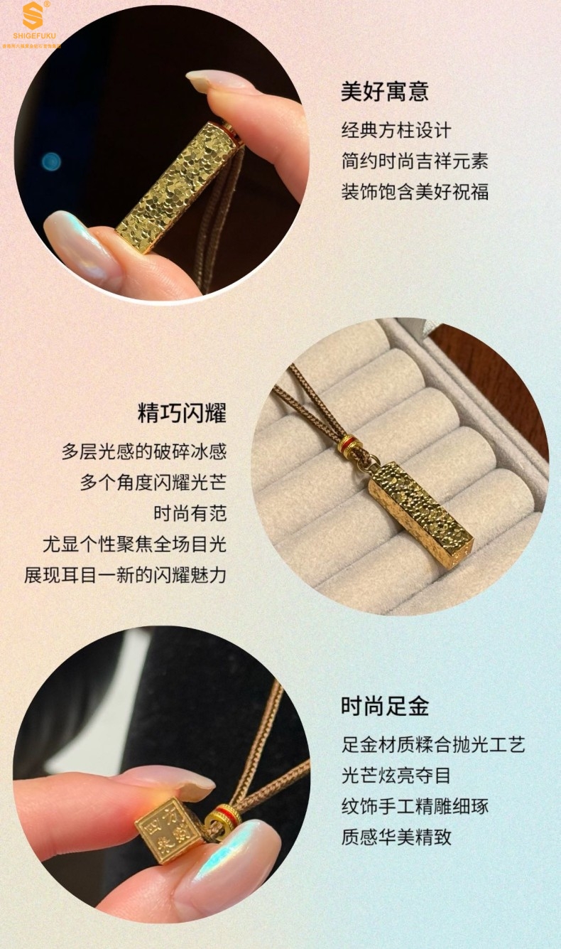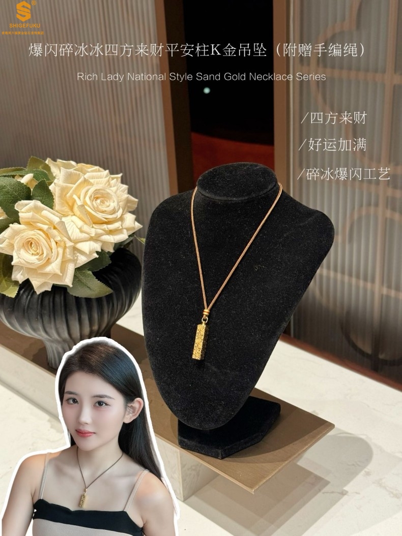 【品名】爆闪碎冰冰四方来财平安柱K金吊坠(附赠手编绳)