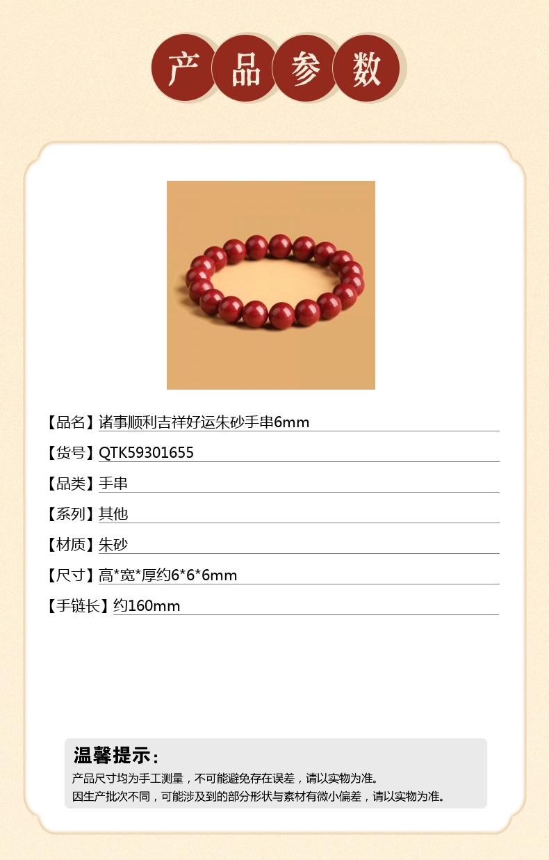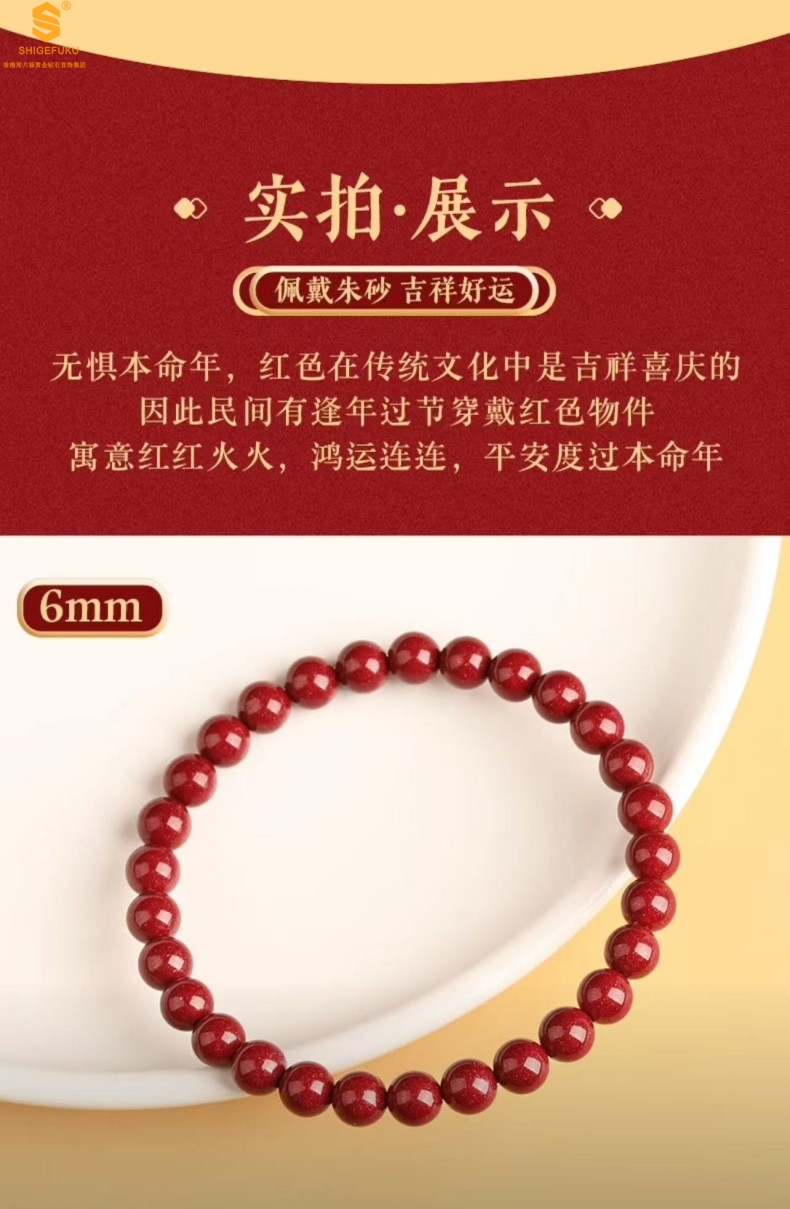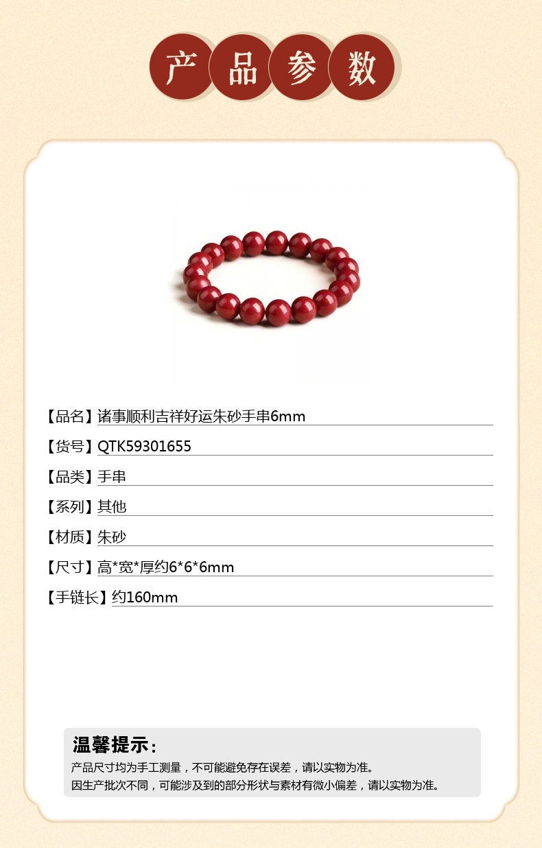 【品名】诸事顺利吉祥好运朱砂手串6mm