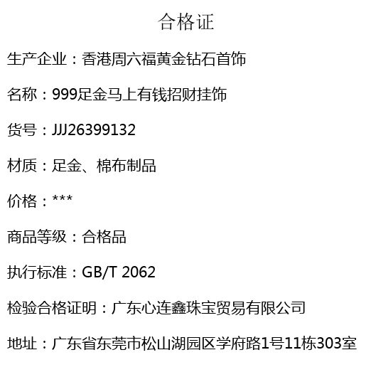 【套装包含】首饰+绒布袋+国检证书(赠品没有)+质保单+价签