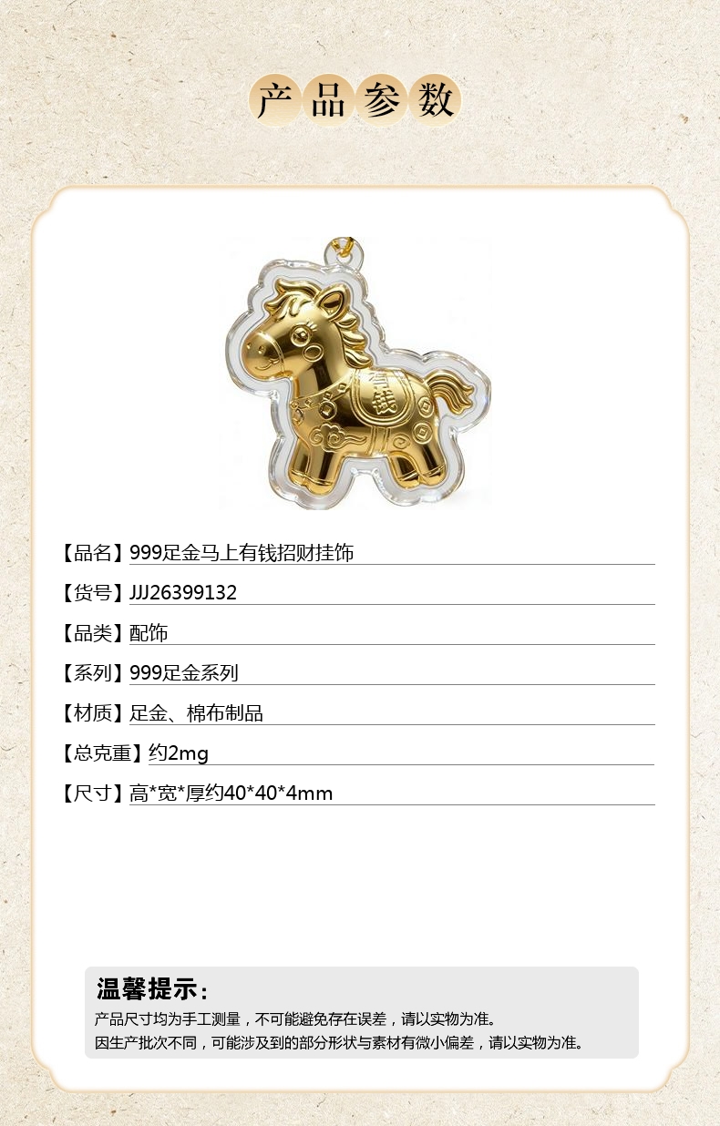 【品名】999足金马上有钱招财挂饰