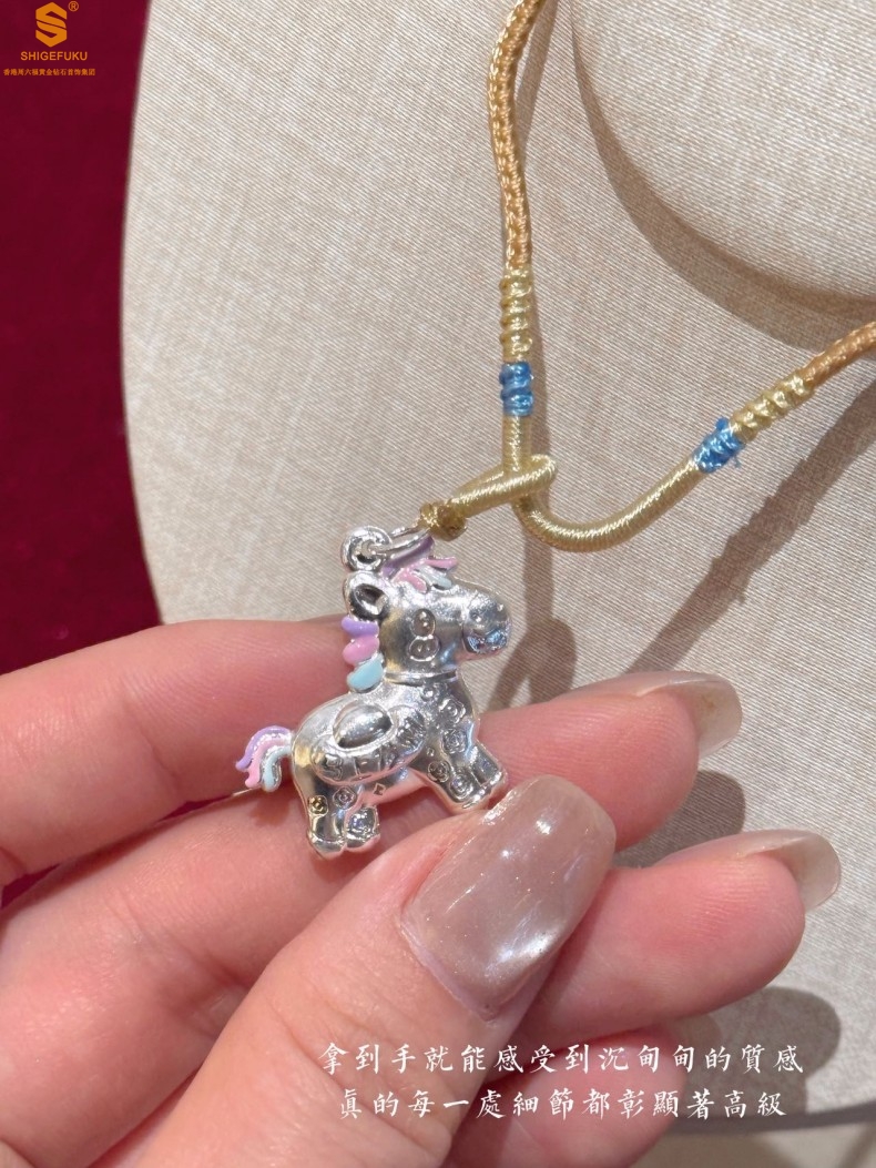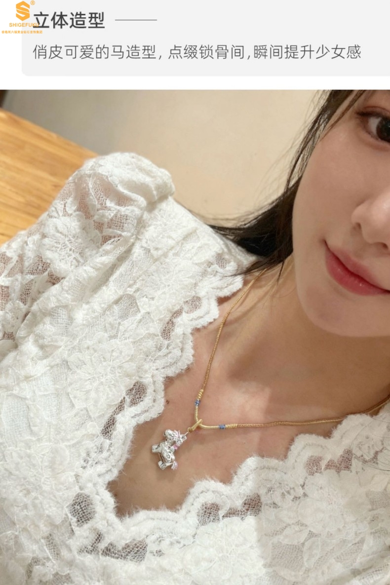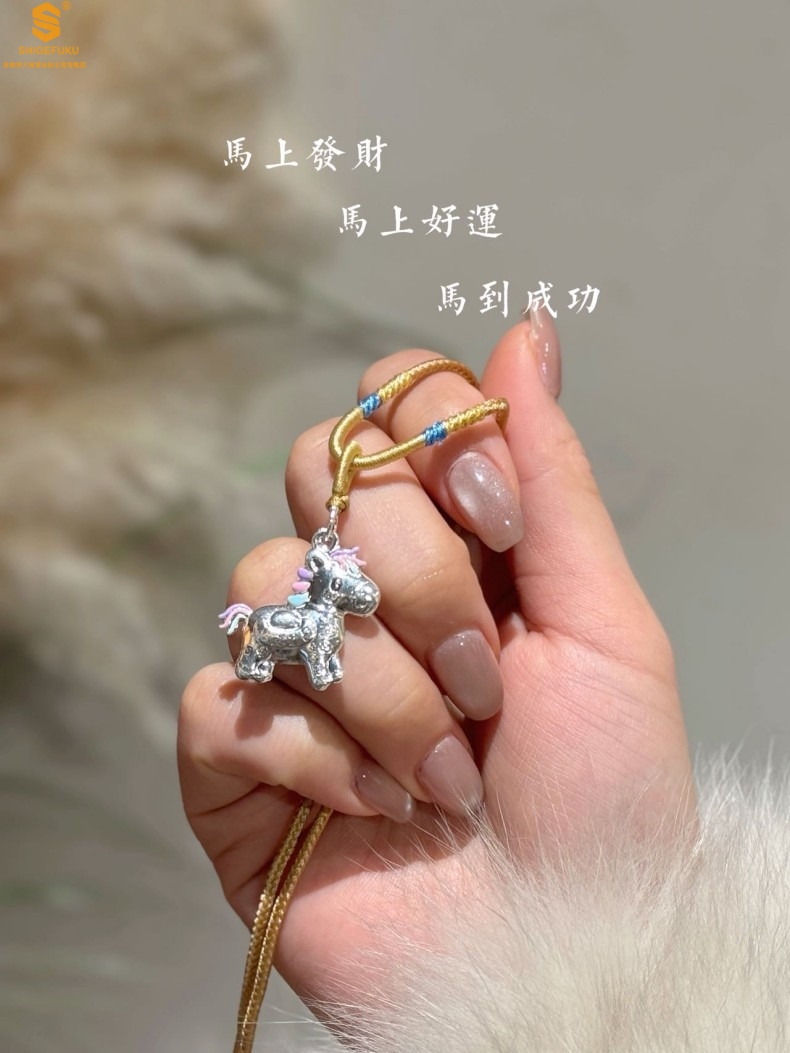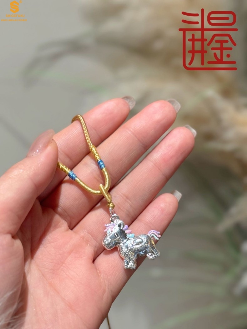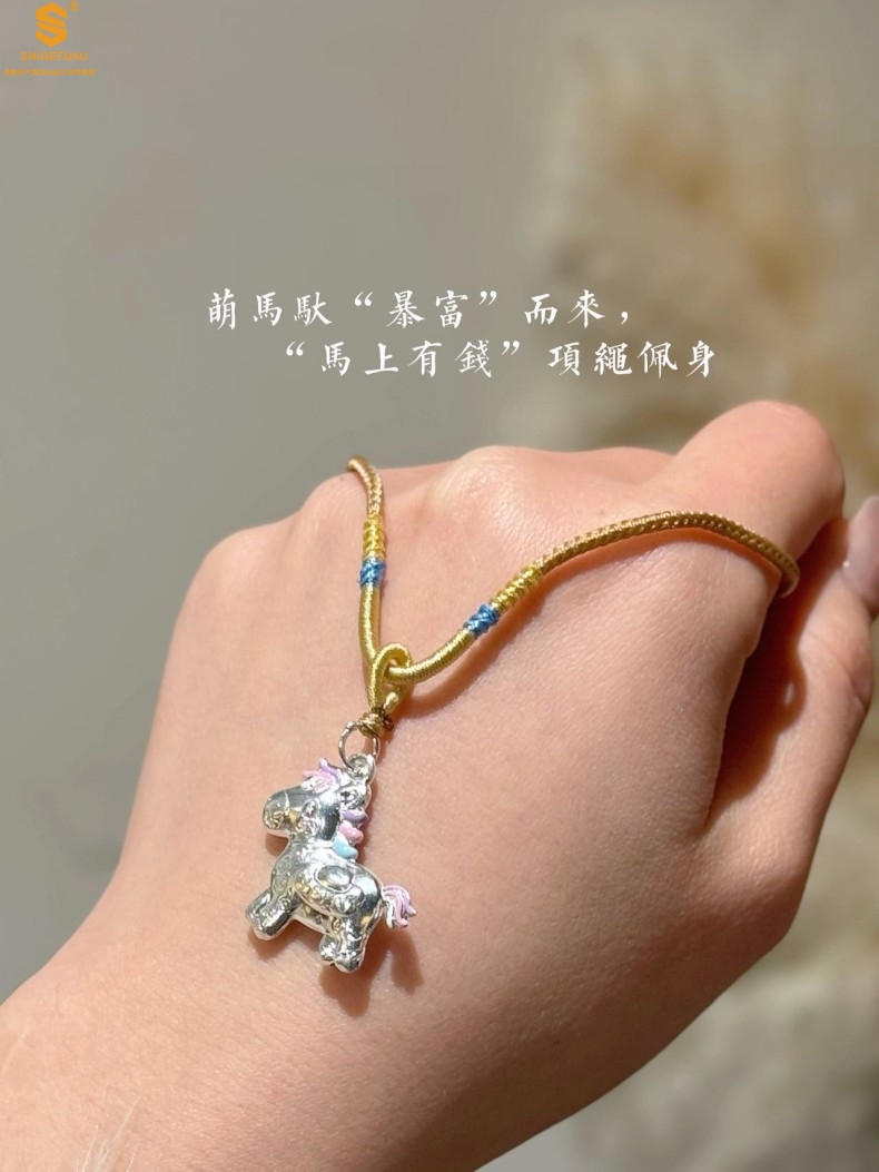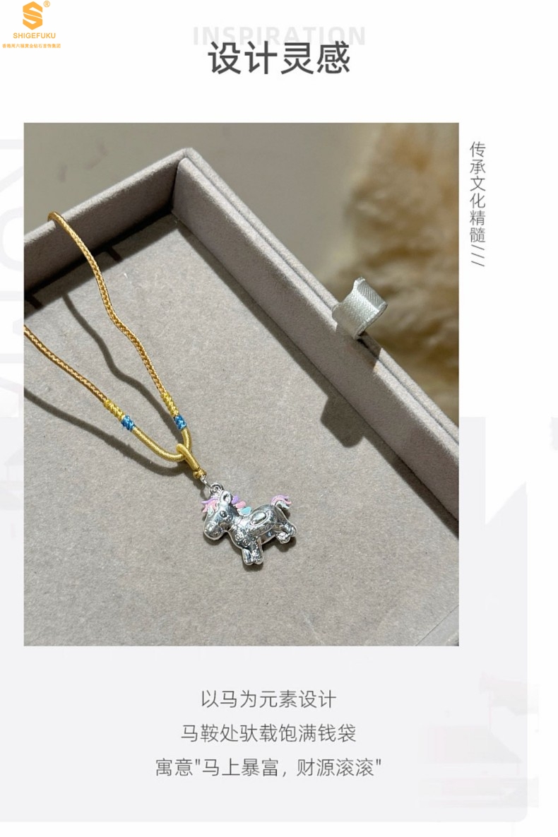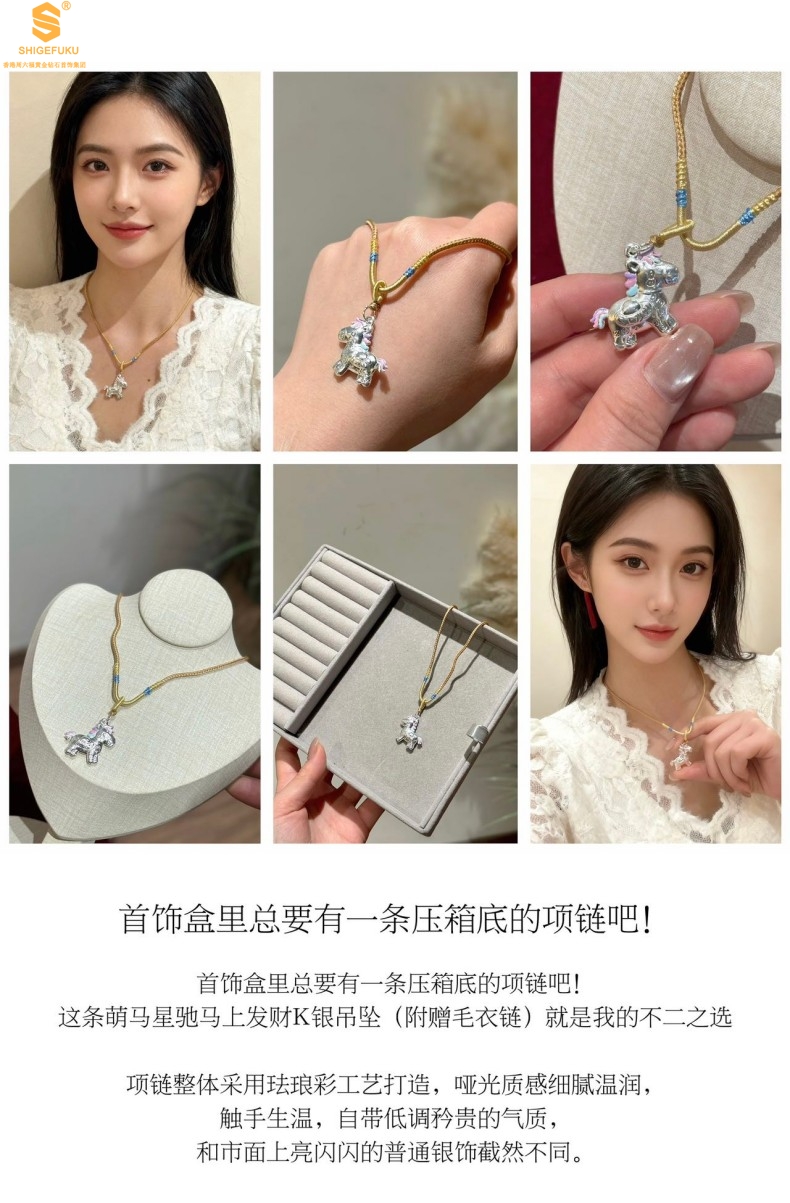 【品名】萌马星驰马上发财K银吊坠(附赠毛衣链)