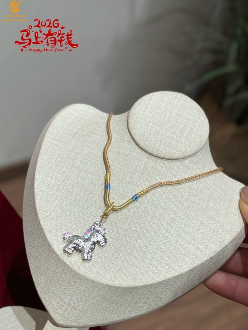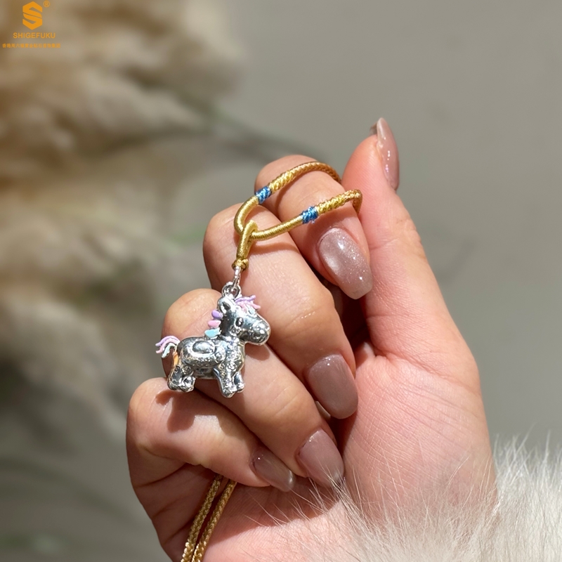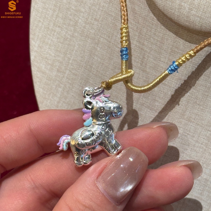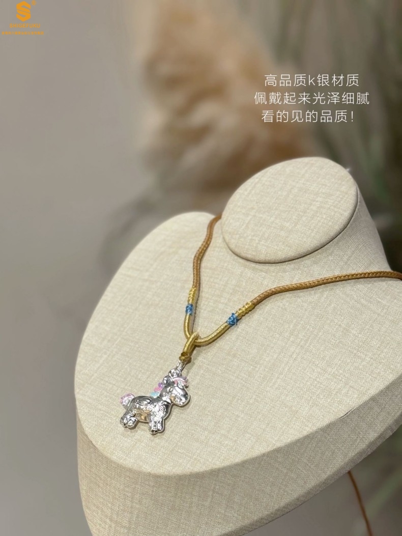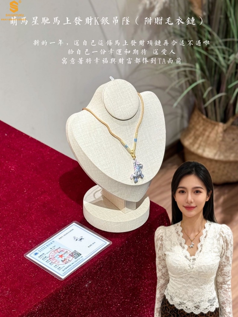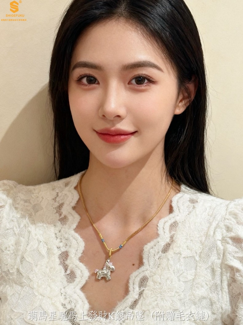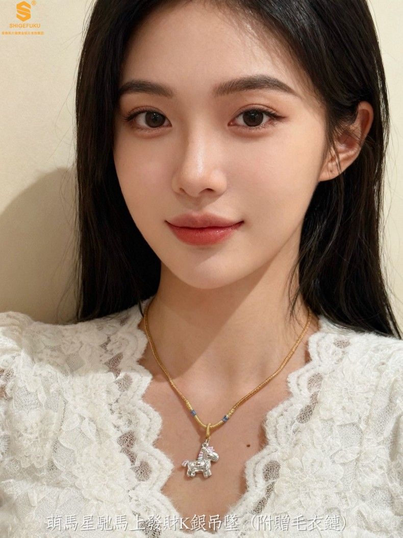 【品名】萌马星驰马上发财K银吊坠(附赠毛衣链)
