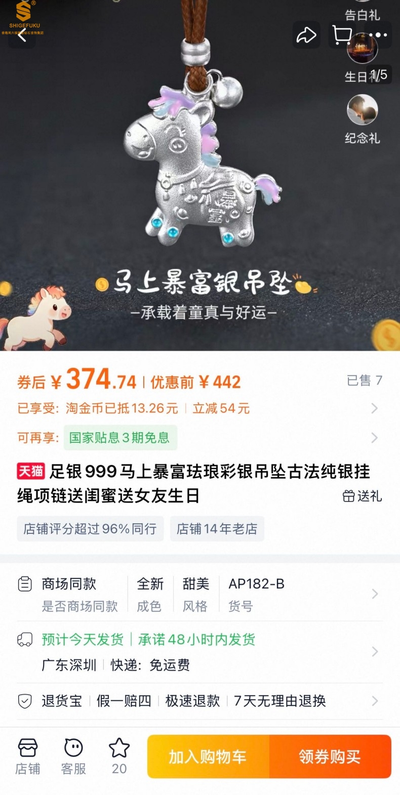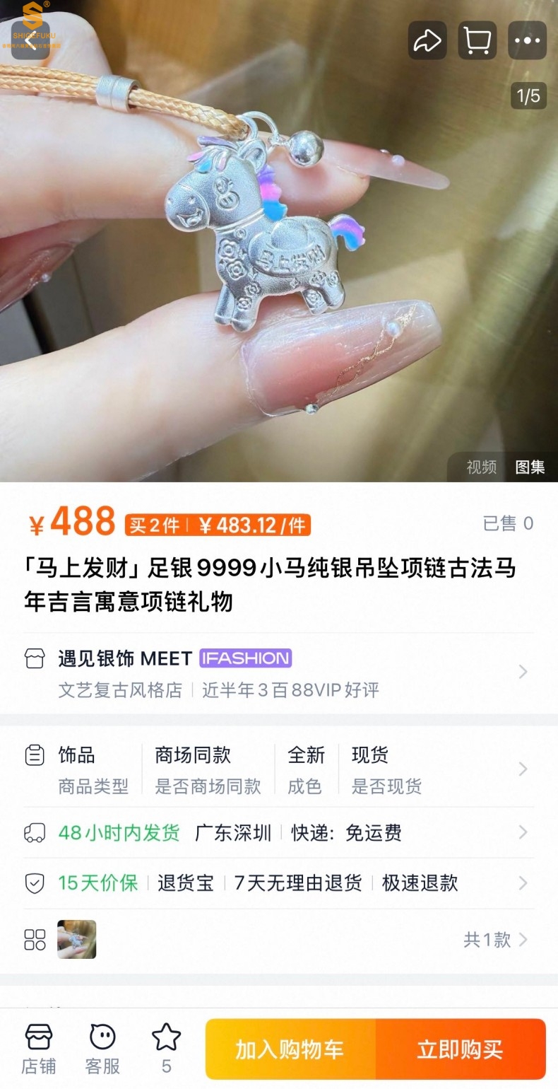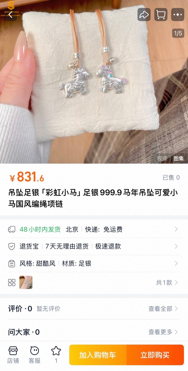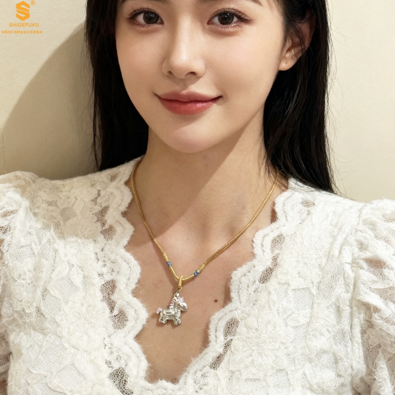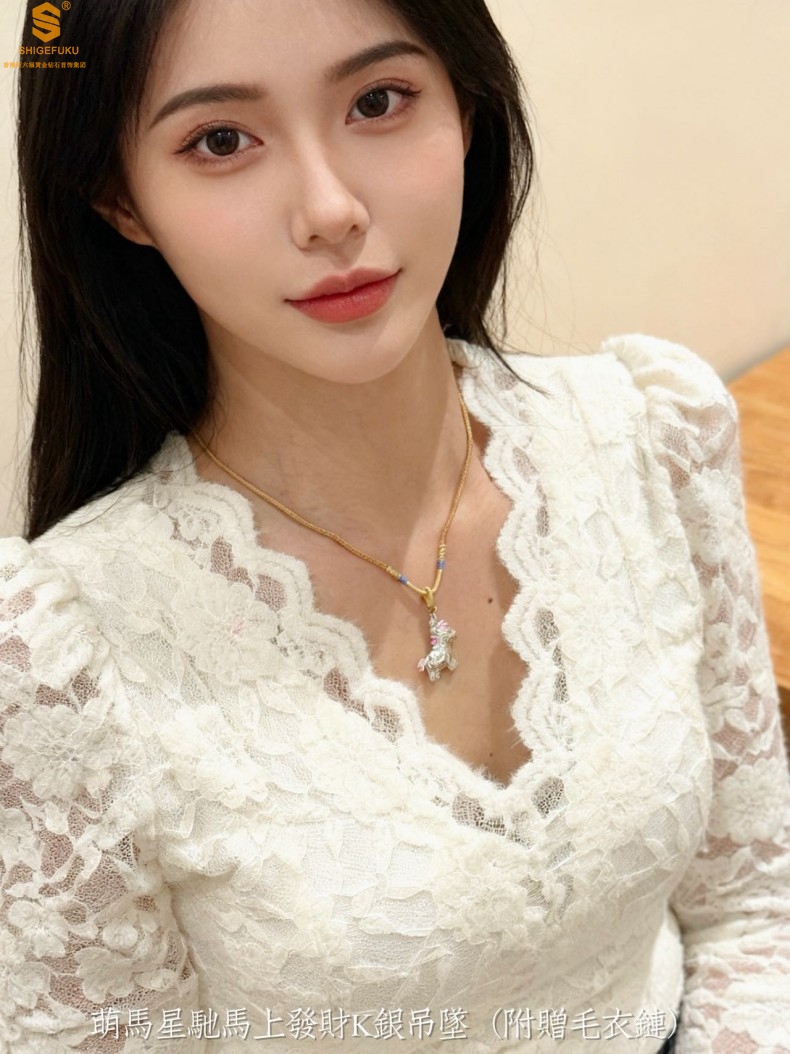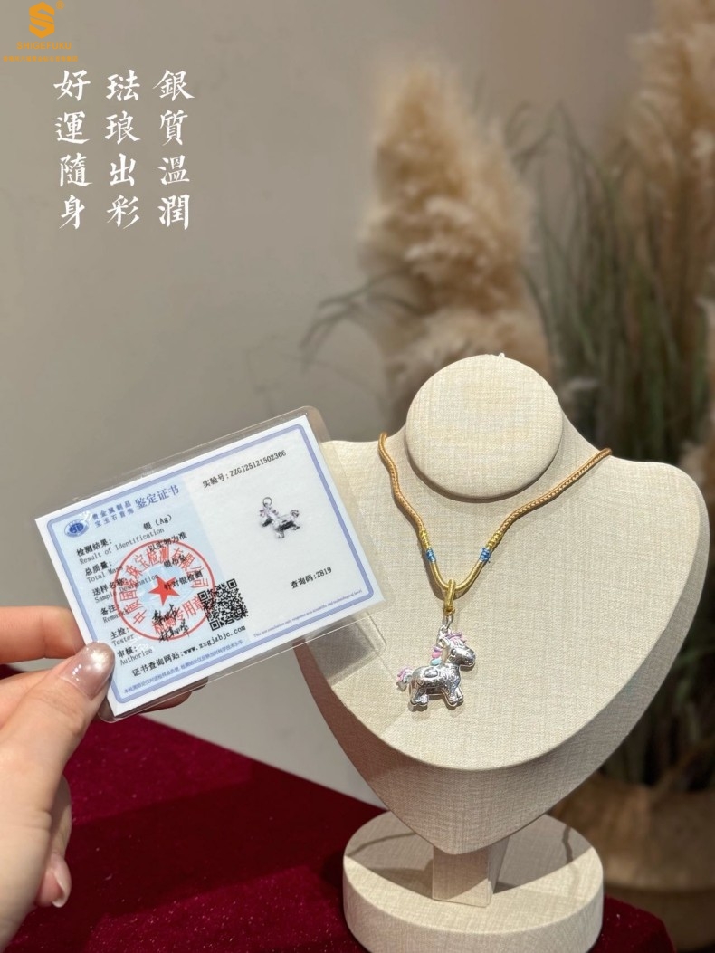 【品名】萌马星驰马上发财K银吊坠(附赠毛衣链)