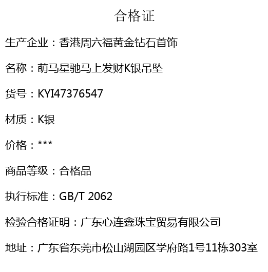 【套装包含】首饰+绒布袋+国检证书(赠品没有)+质保单+价签