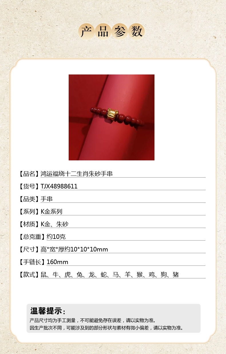 【品名】鸿运福绕十二生肖朱砂手串