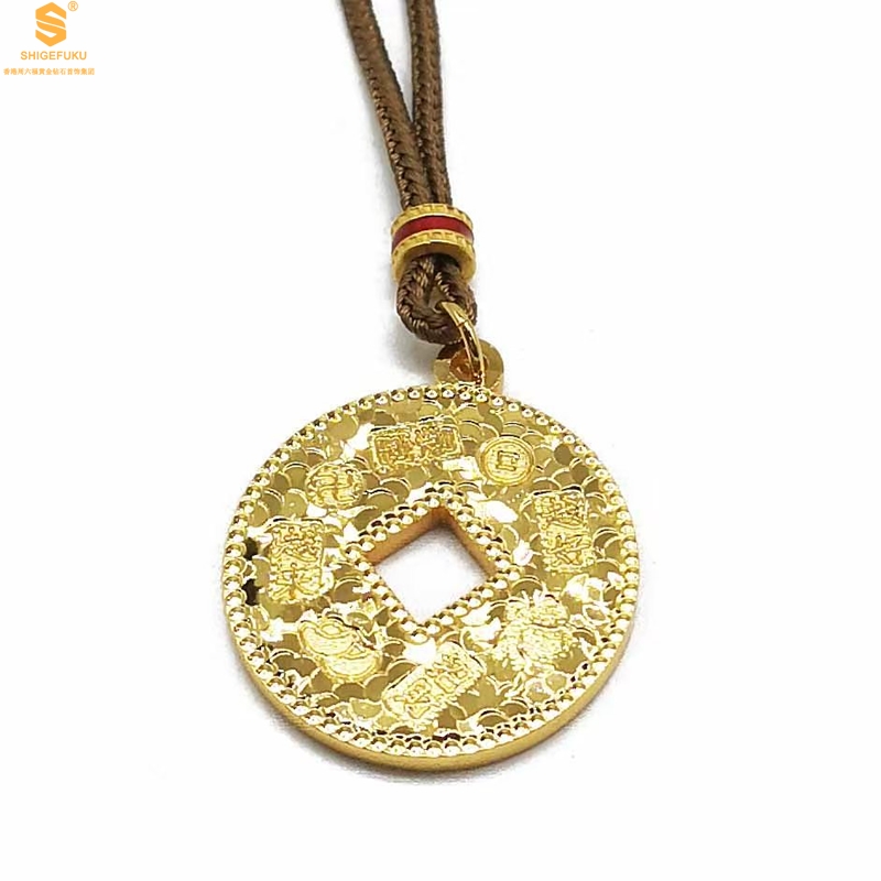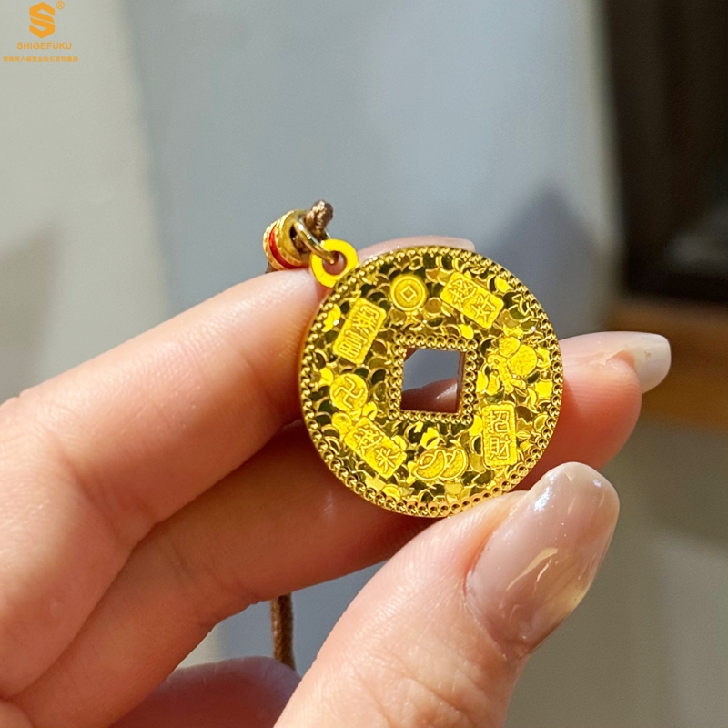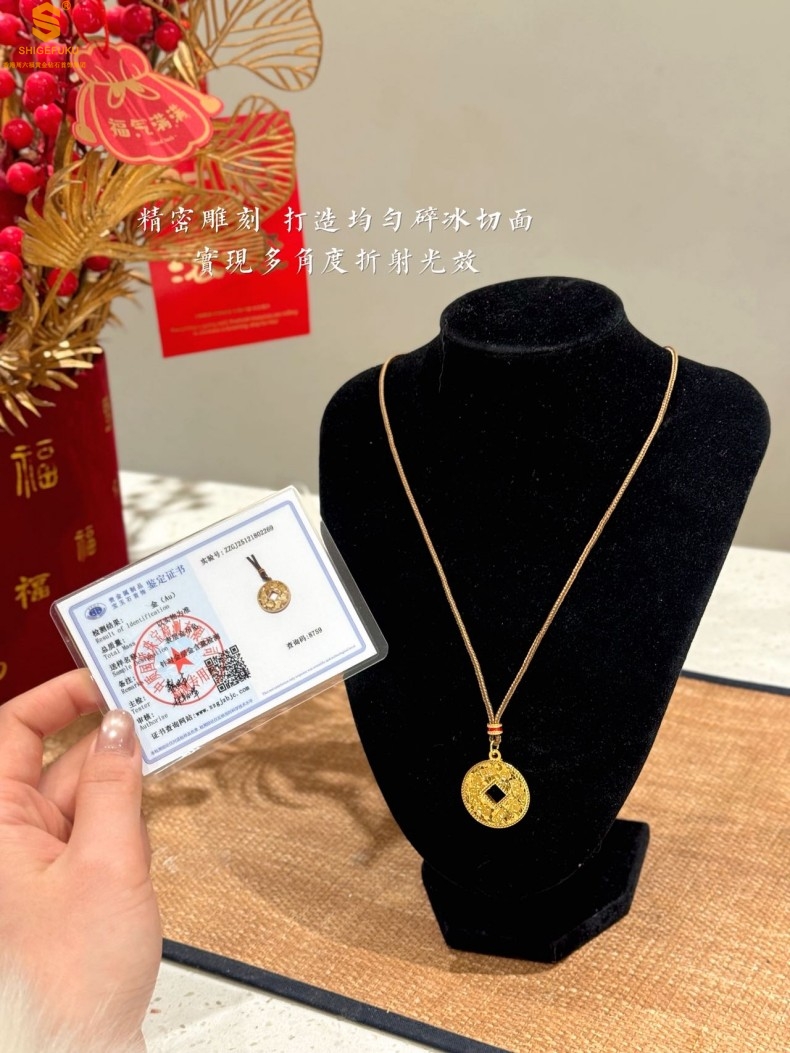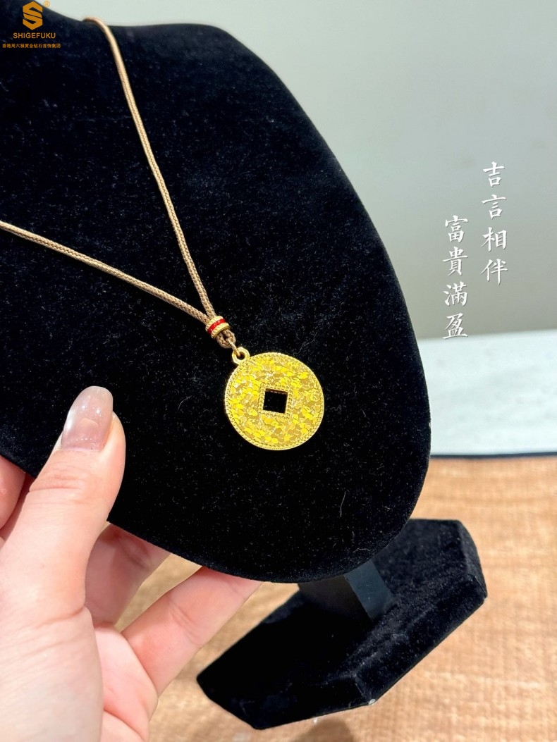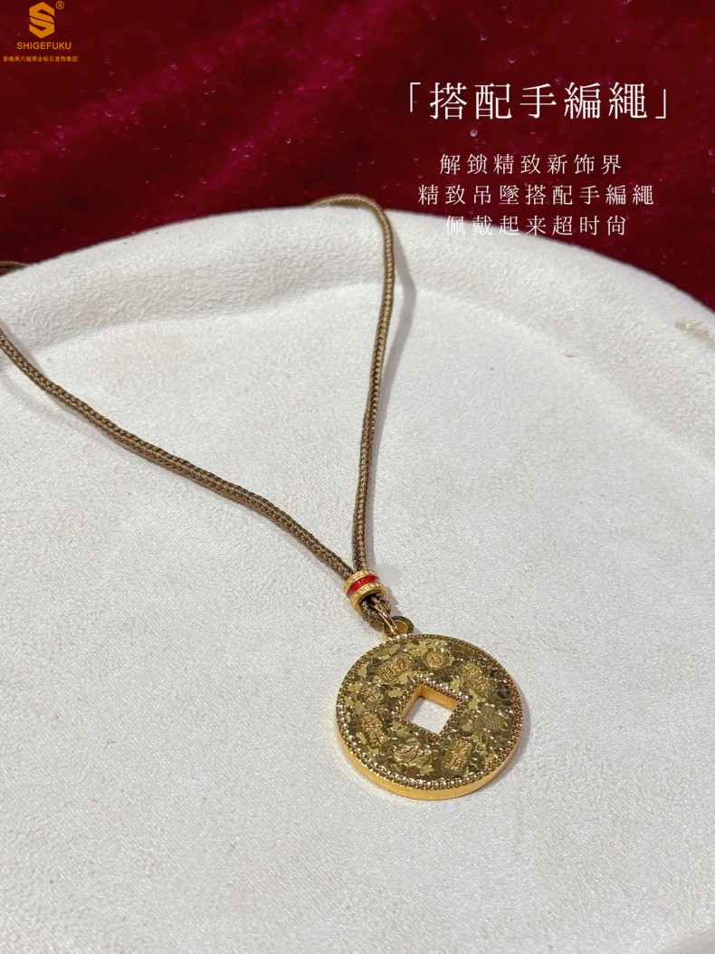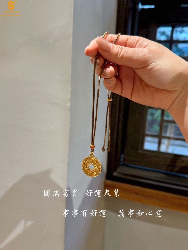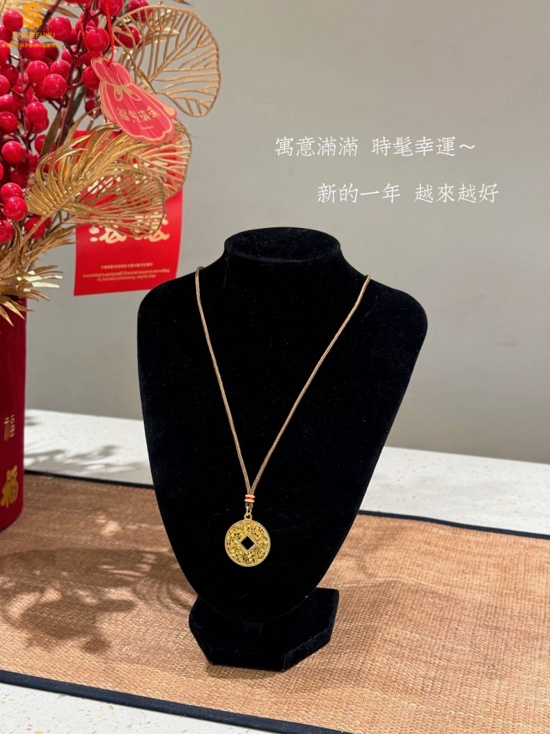 【品名】碎冰冰吉言来财钱币K金吊坠(附赠手编绳)