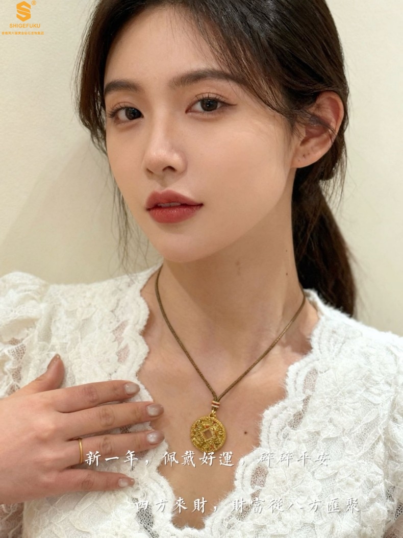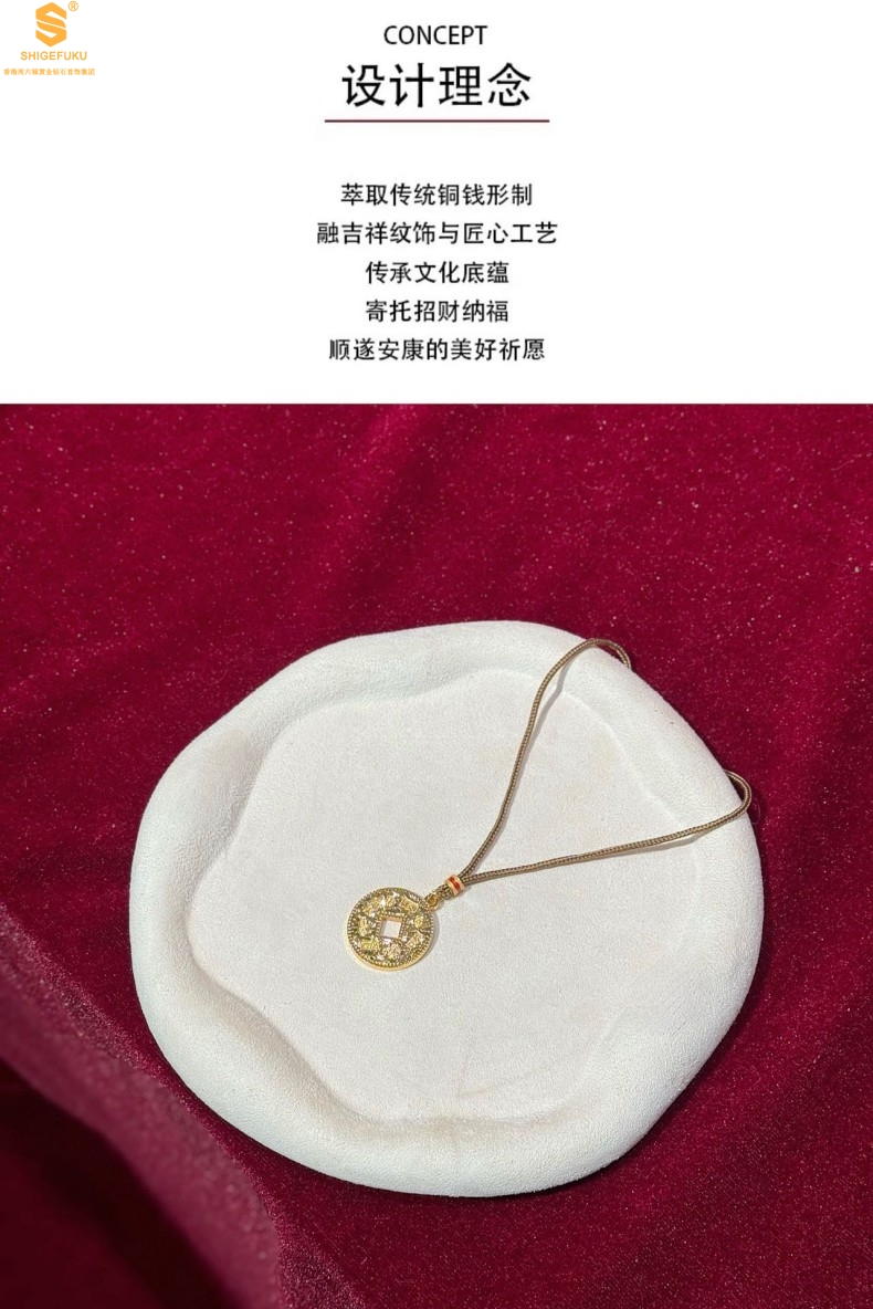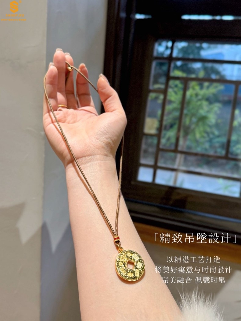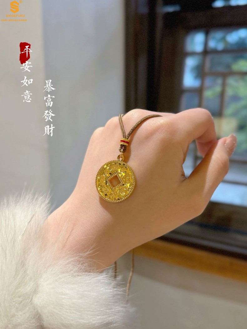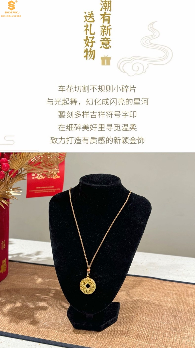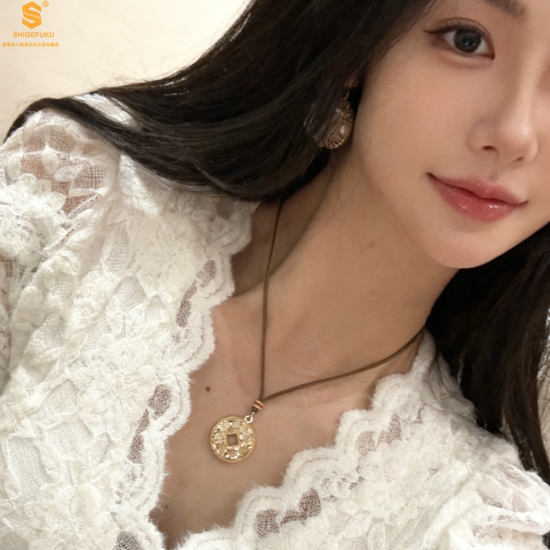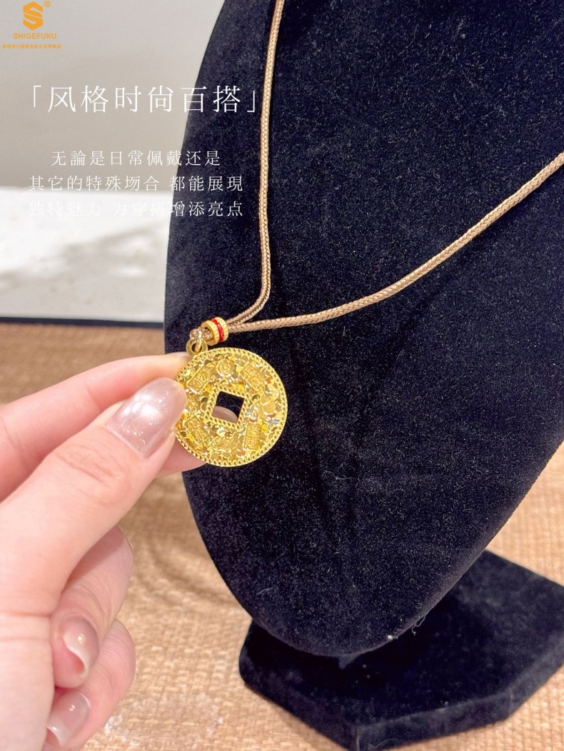 【品名】碎冰冰吉言来财钱币K金吊坠(附赠手编绳)