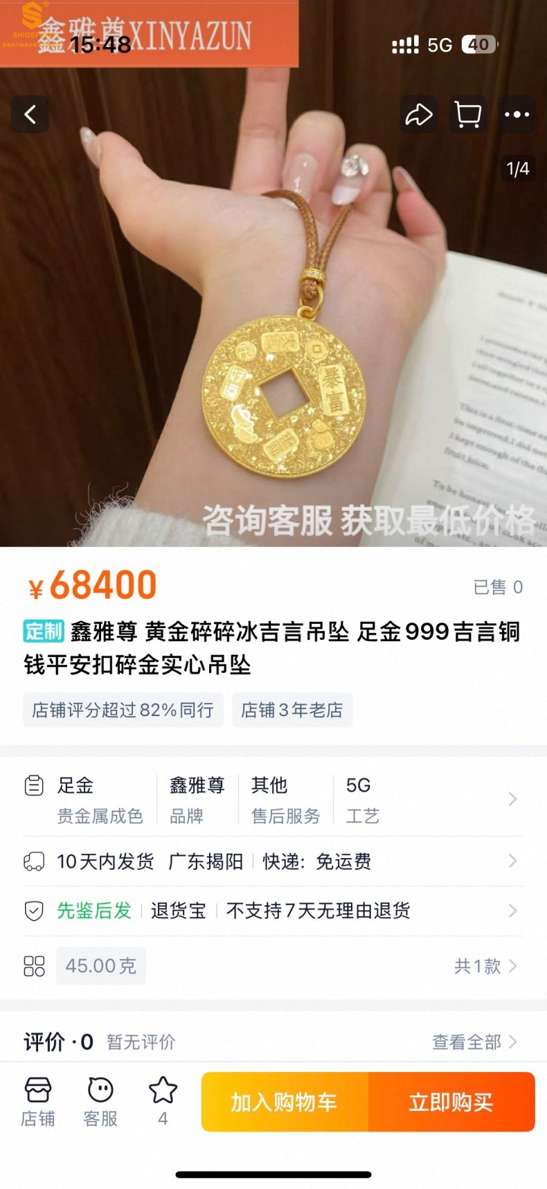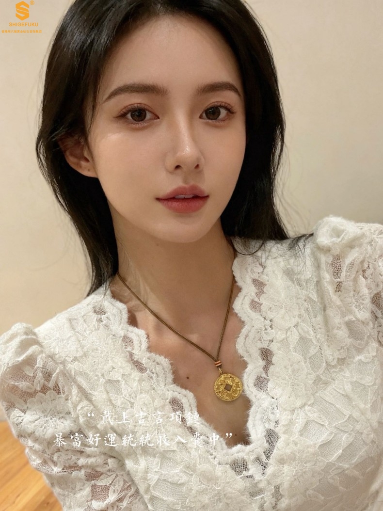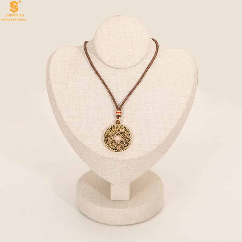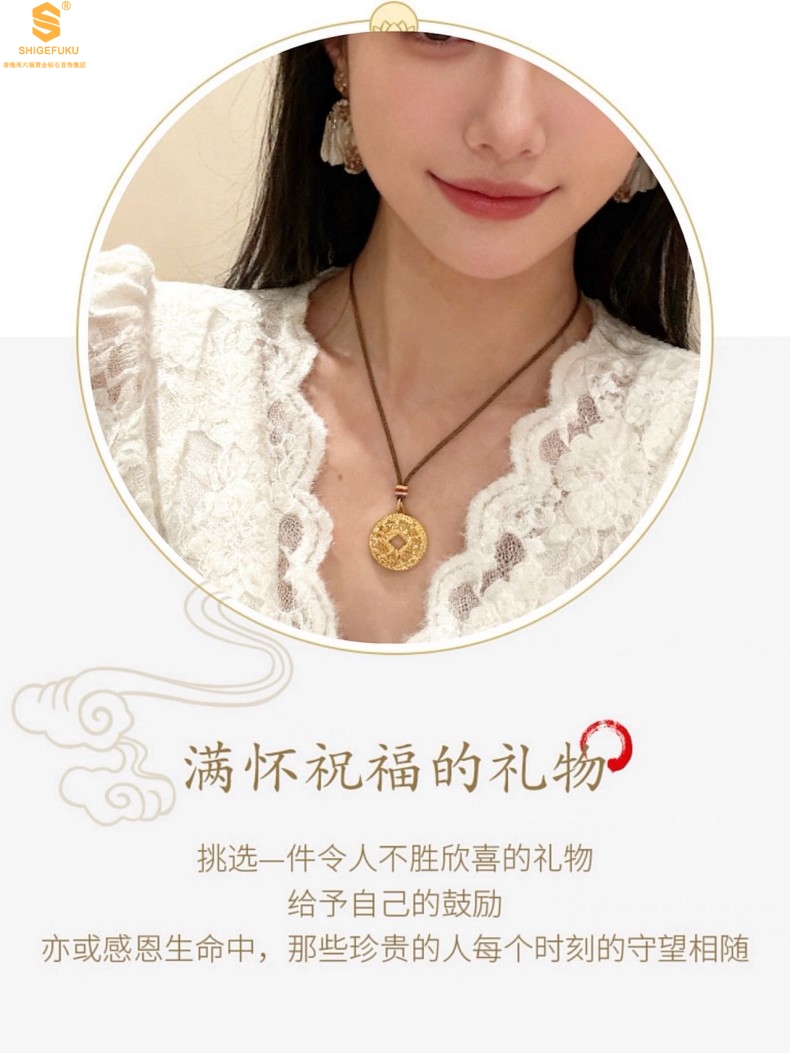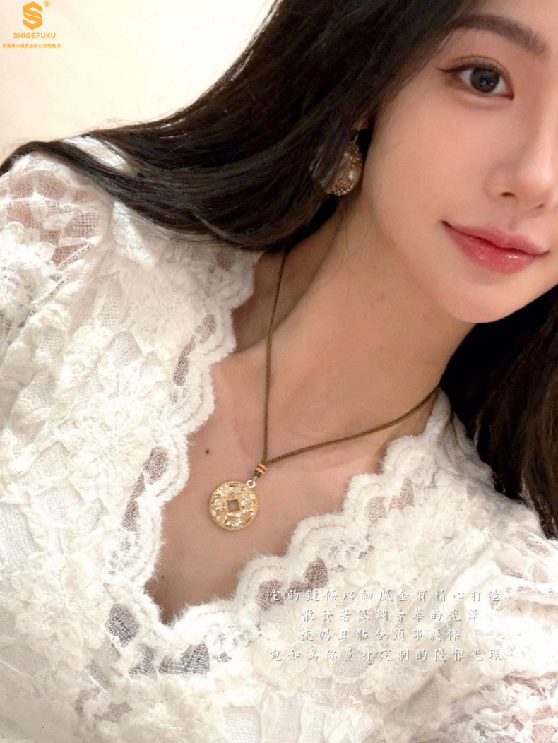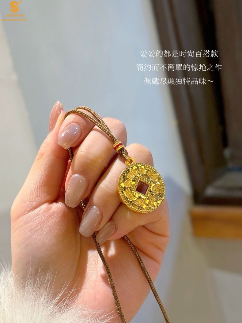 【品名】碎冰冰吉言来财钱币K金吊坠(附赠手编绳)