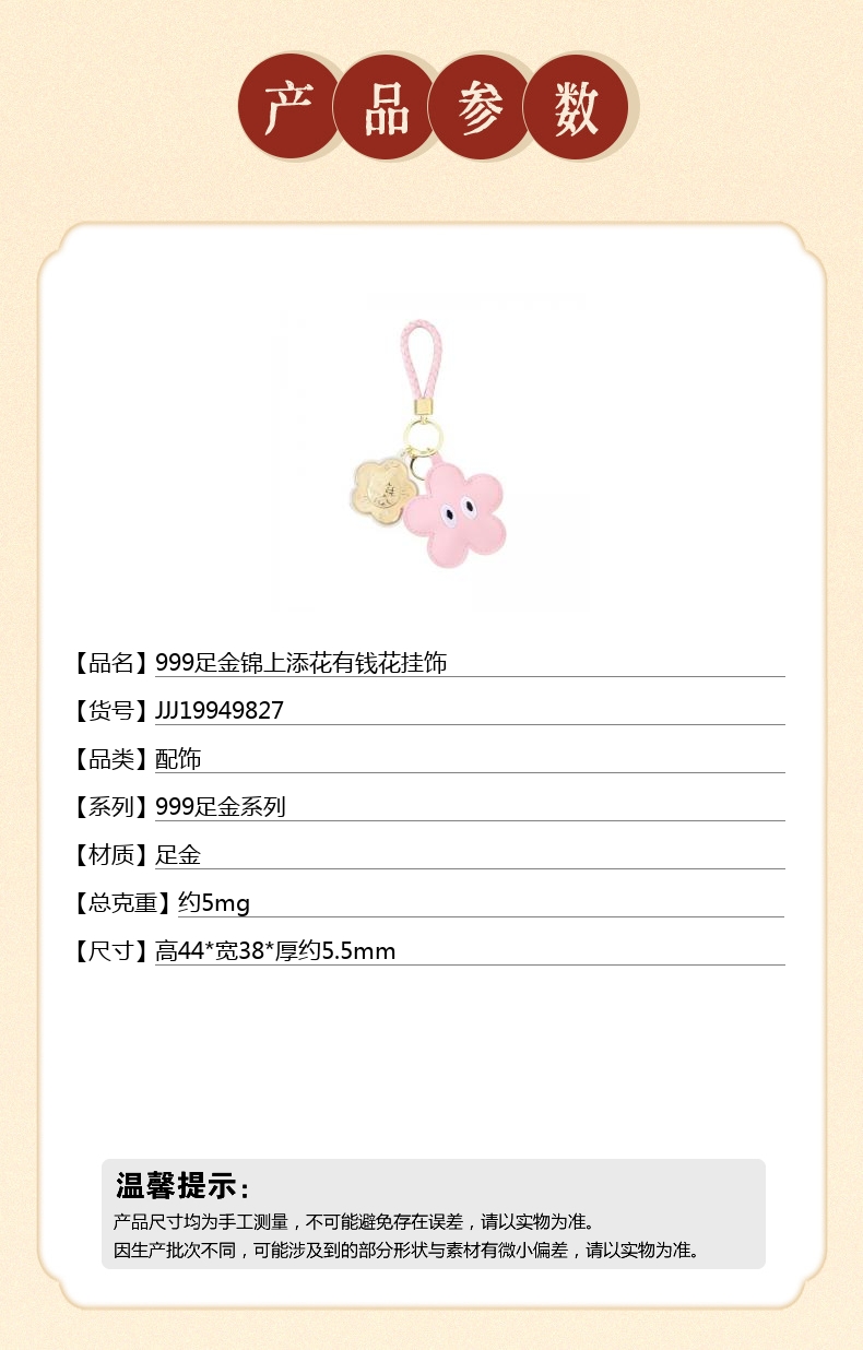 【品名】999足金锦上添花有钱花挂饰
