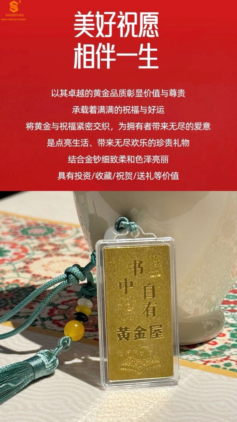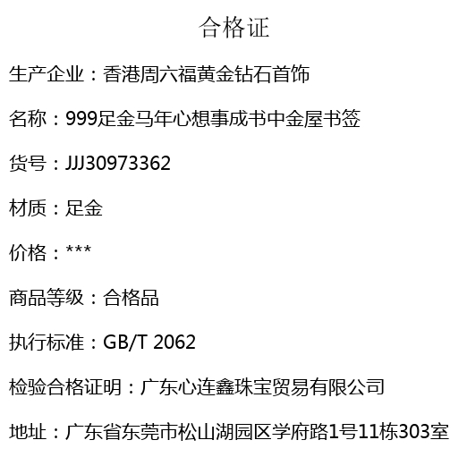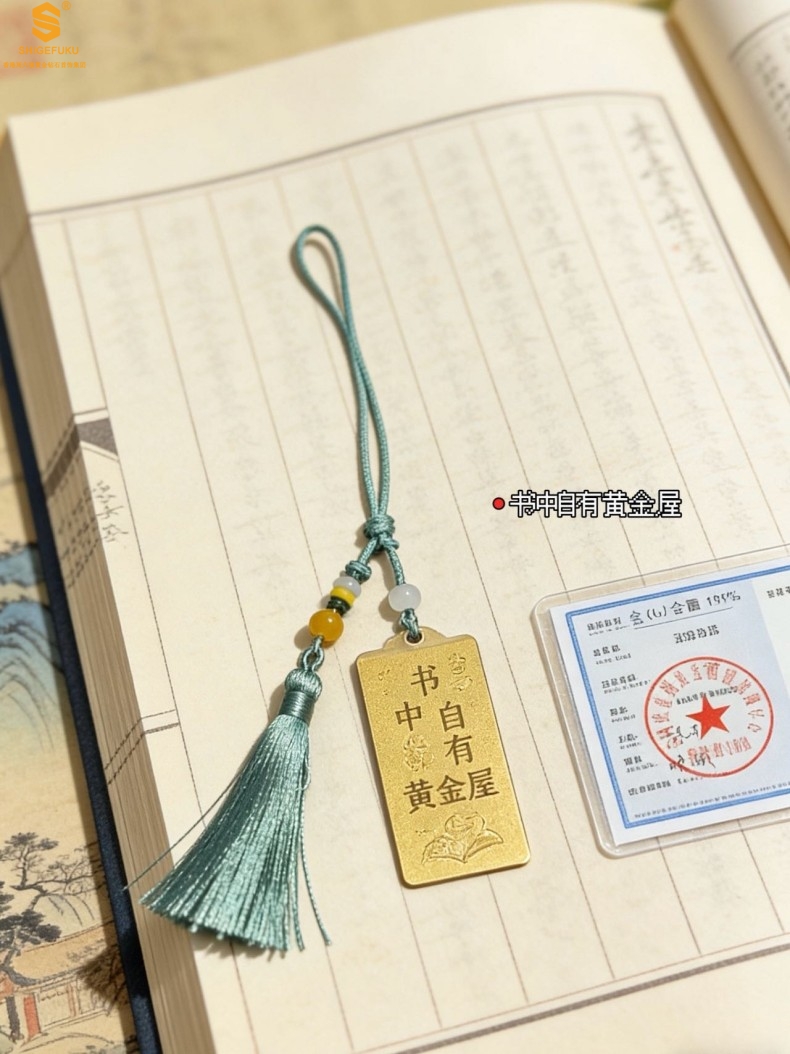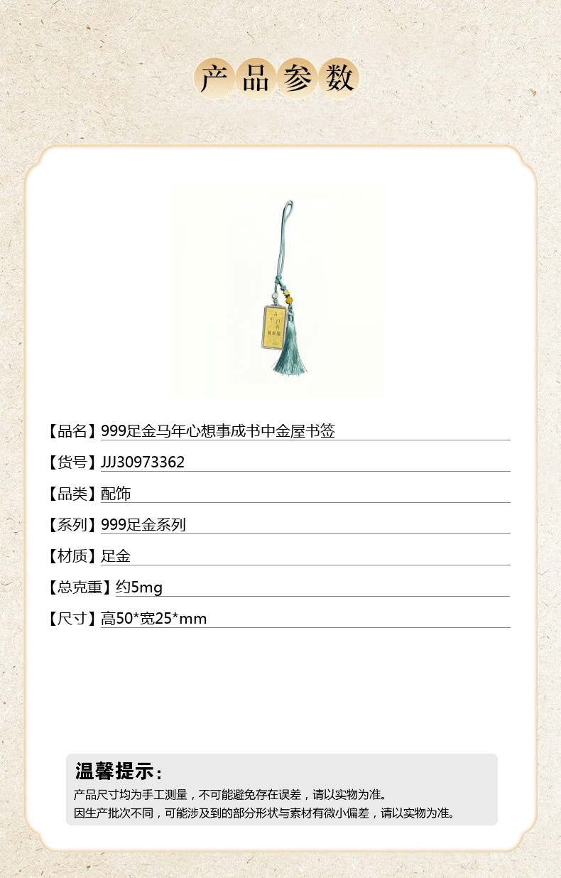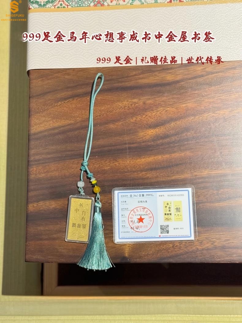 【品名】999足金马年心想事成书中金屋书签