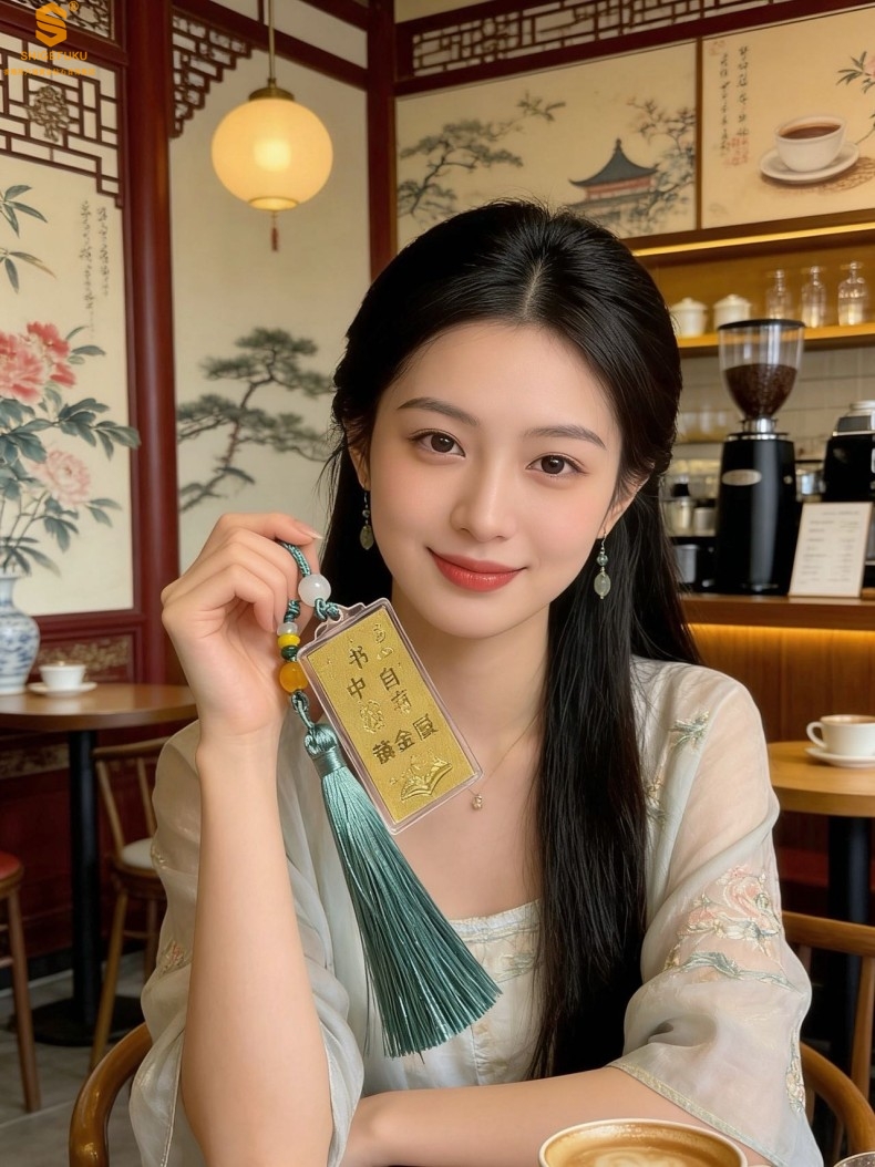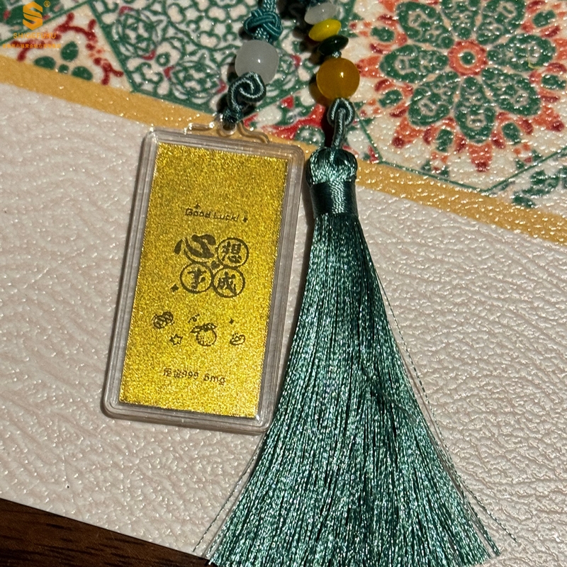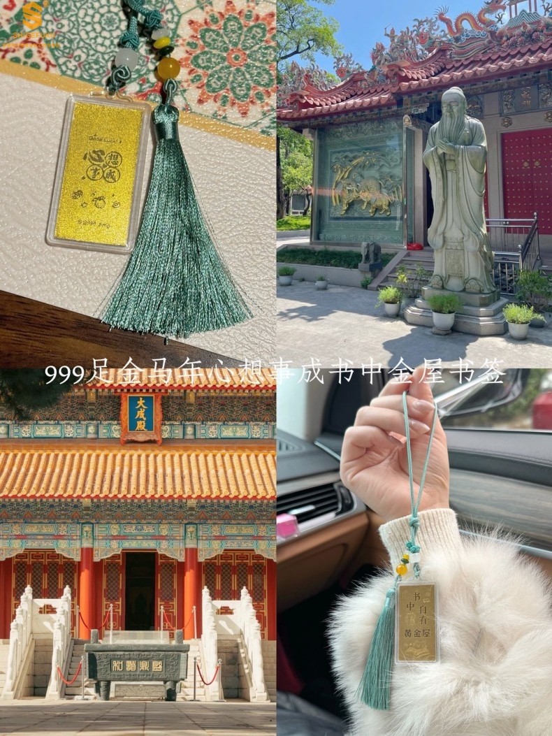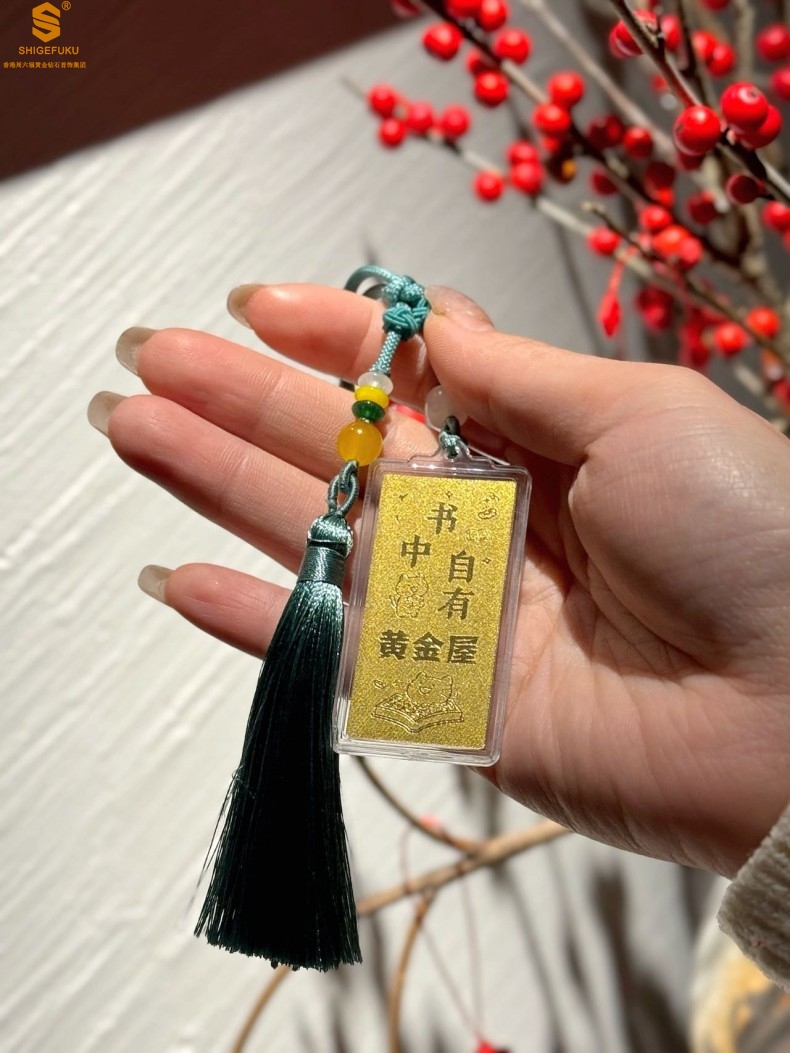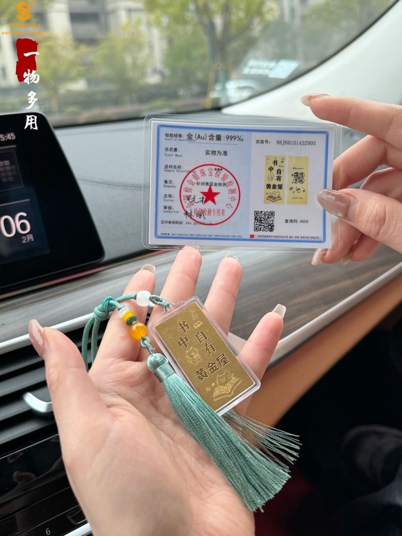 【品名】999足金马年心想事成书中金屋书签