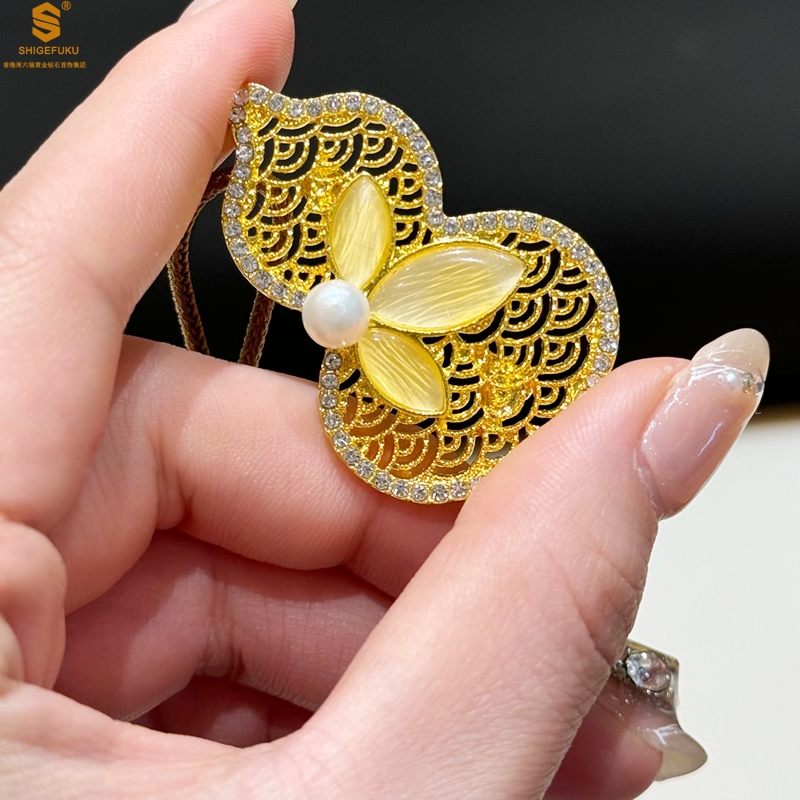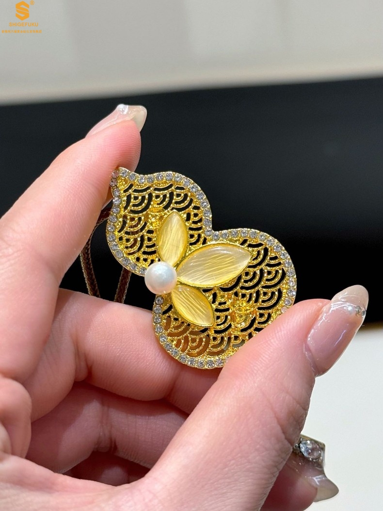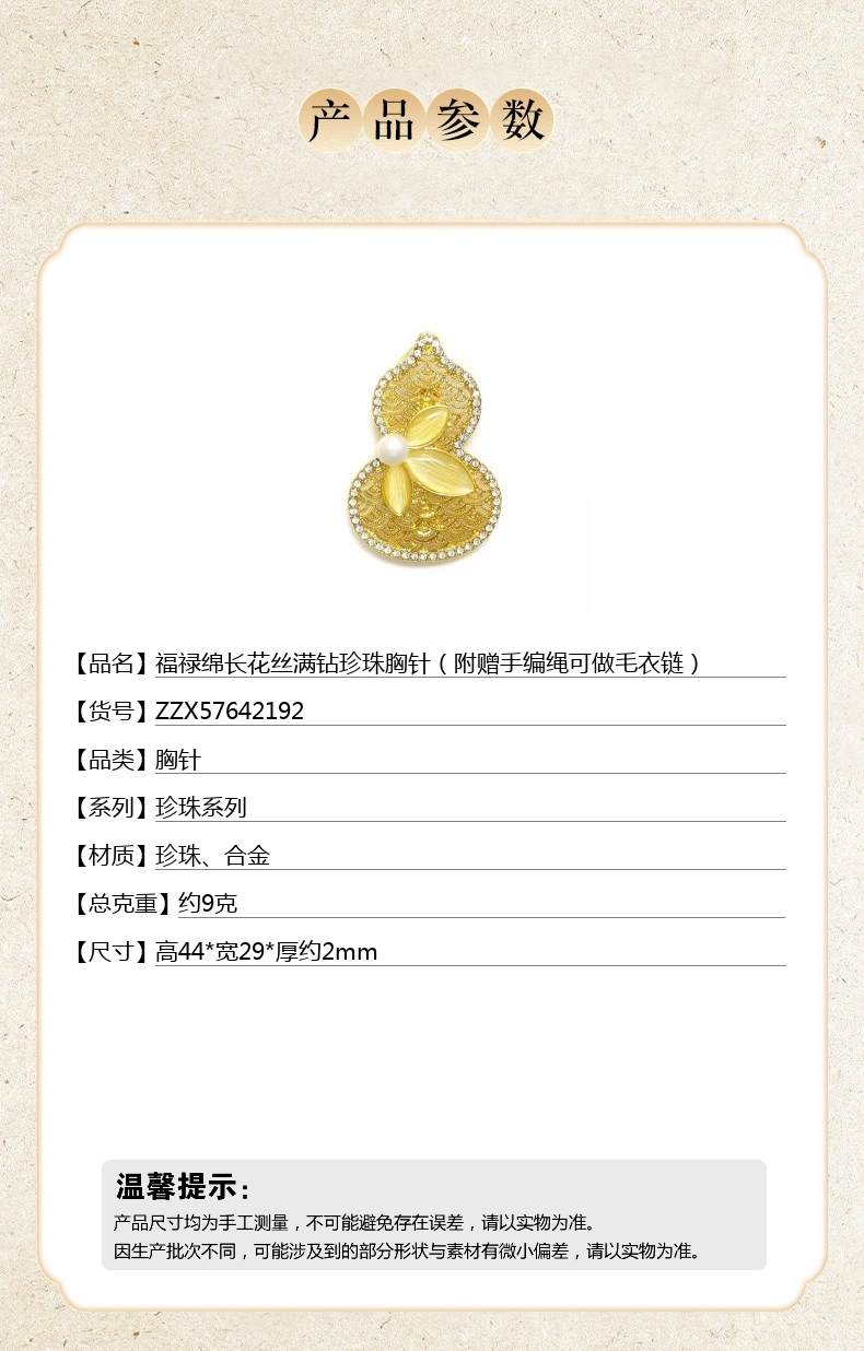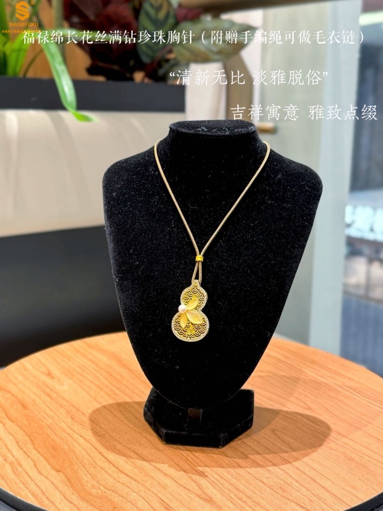 【品名】福禄绵长花丝满钻珍珠胸针(附赠手编绳可做毛衣链)