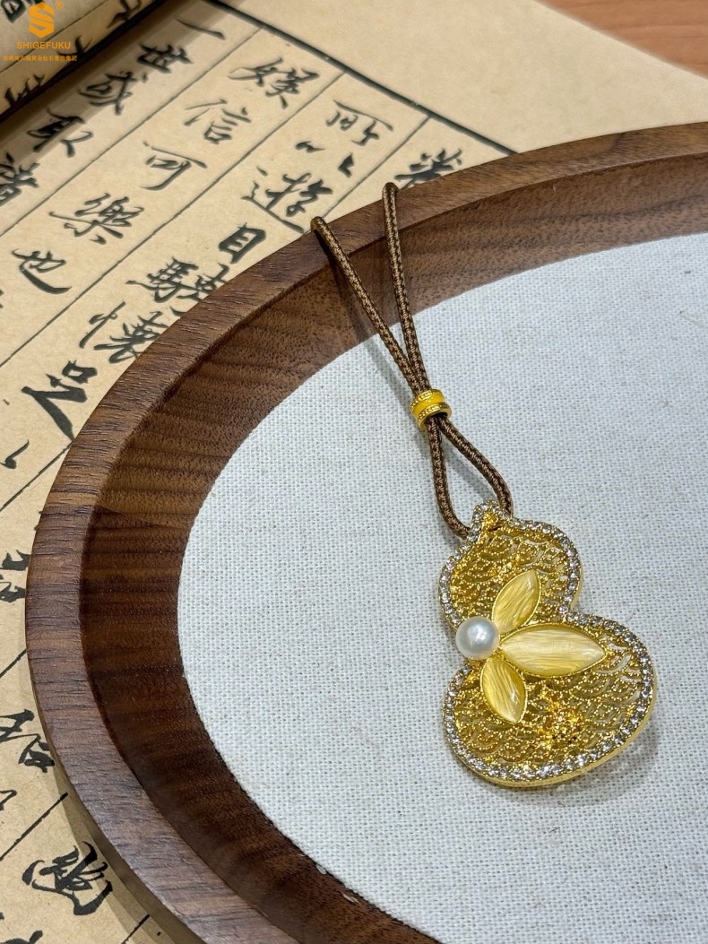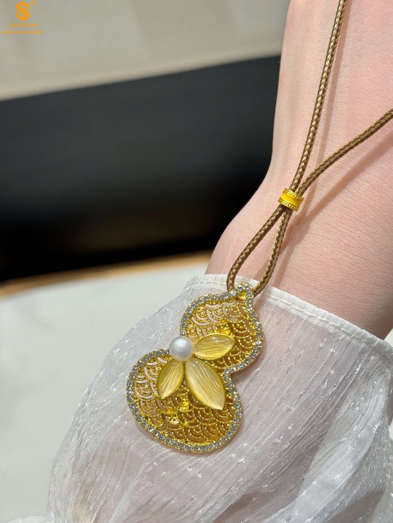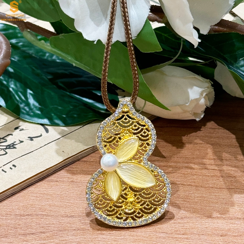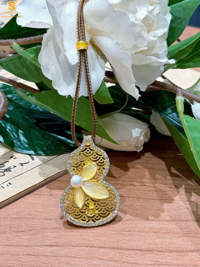 【品名】福禄绵长花丝满钻珍珠胸针(附赠手编绳可做毛衣链)