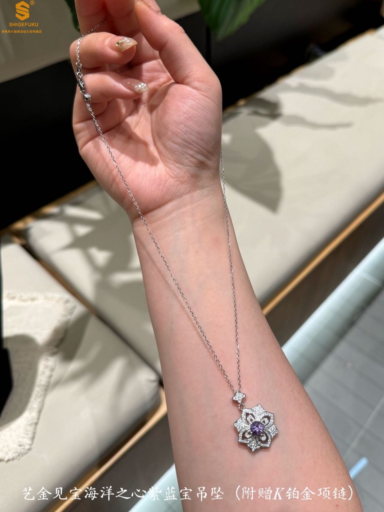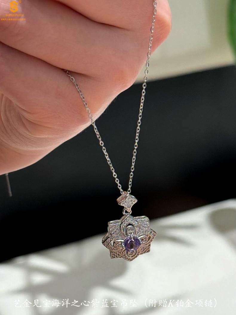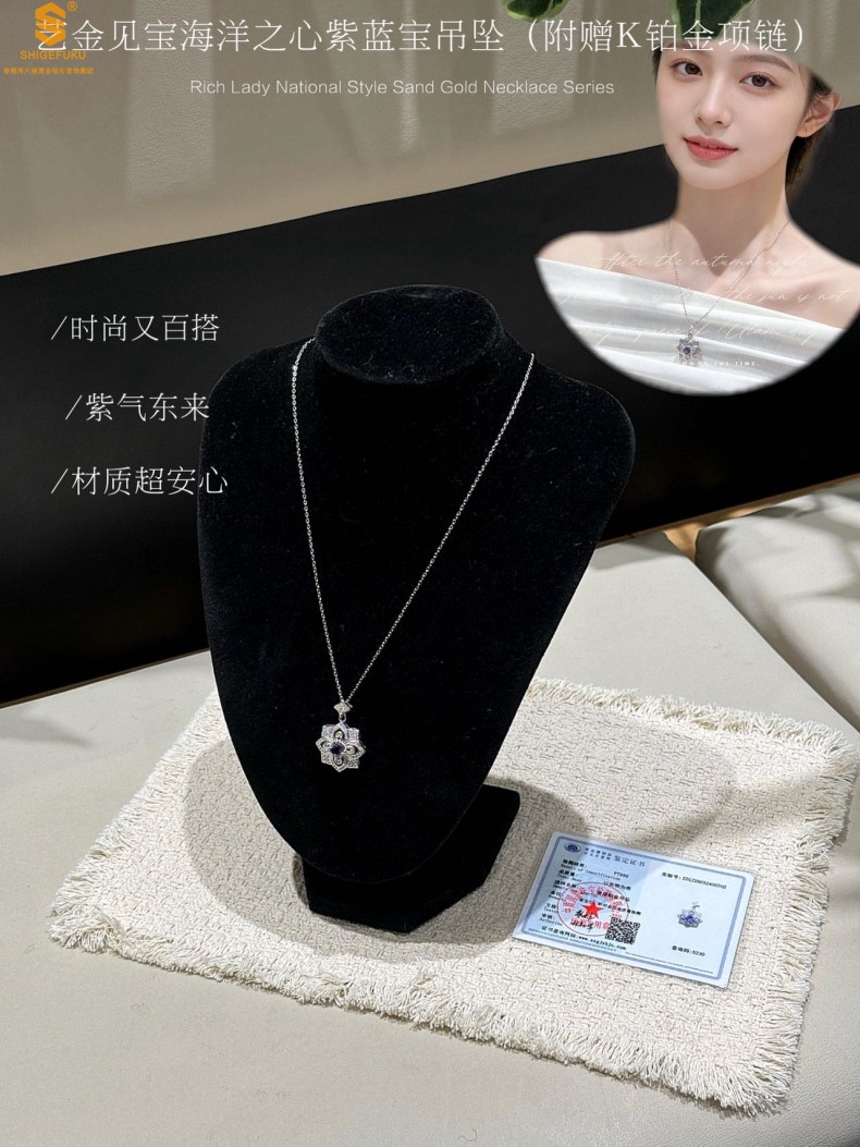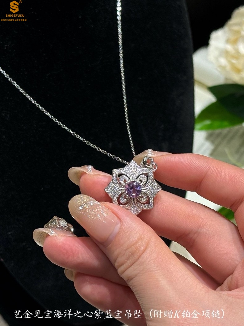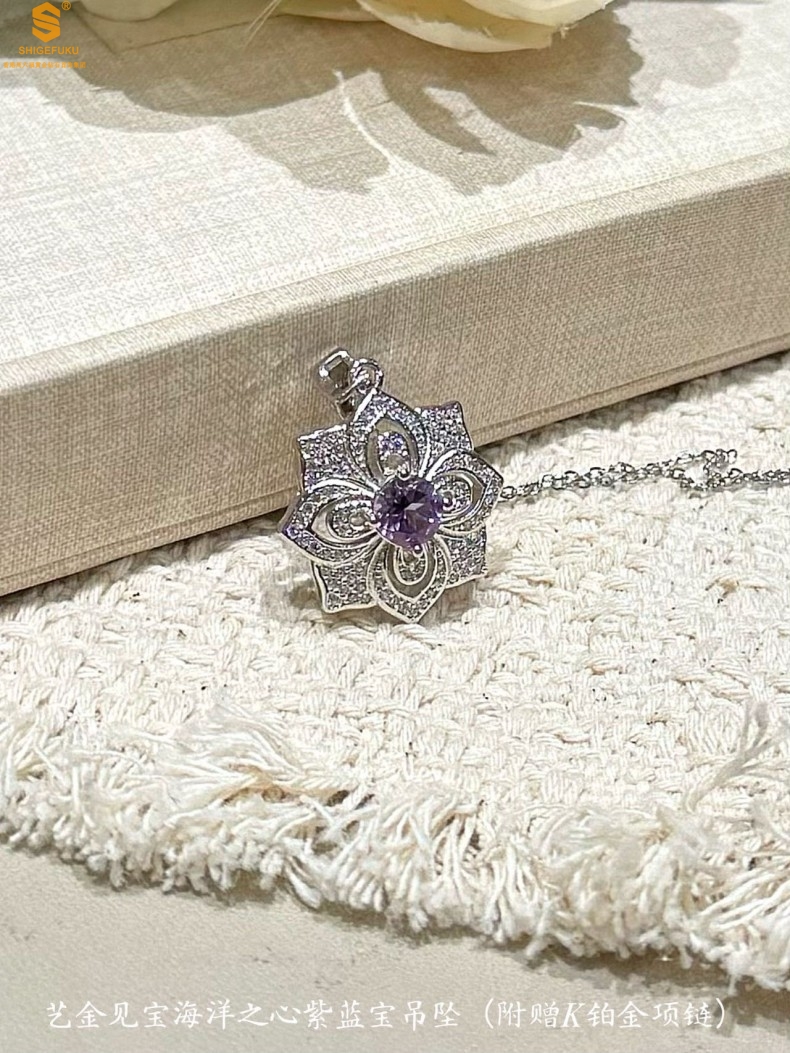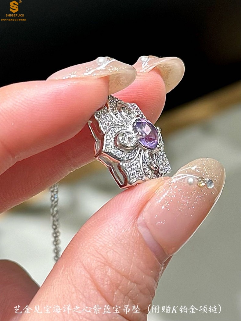 【品名】艺金见宝海洋之心紫蓝宝吊坠(附赠K铂金项链)