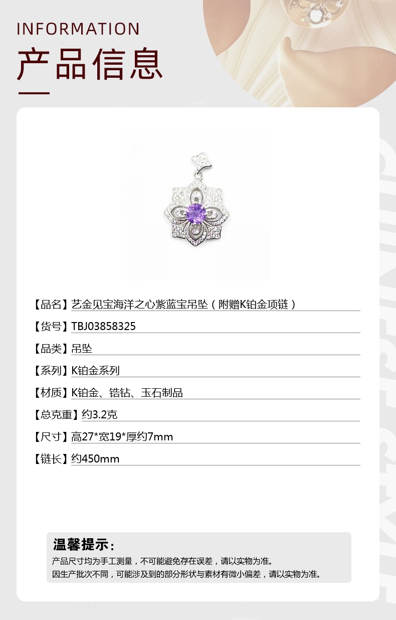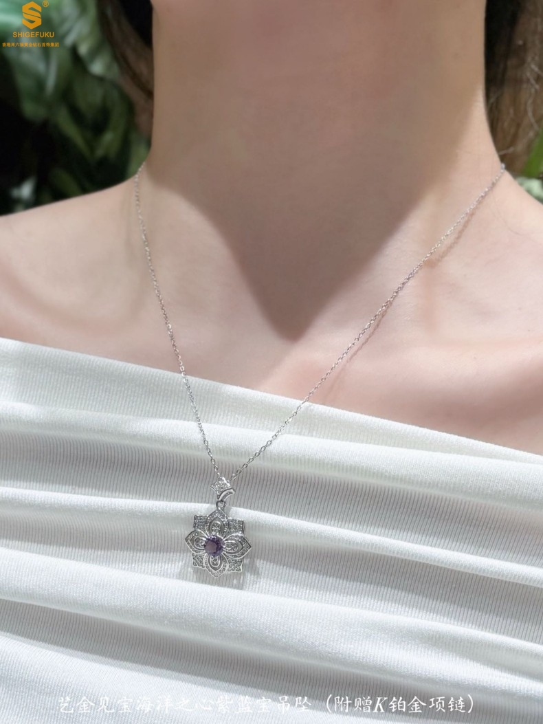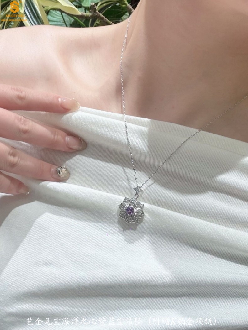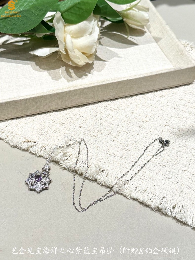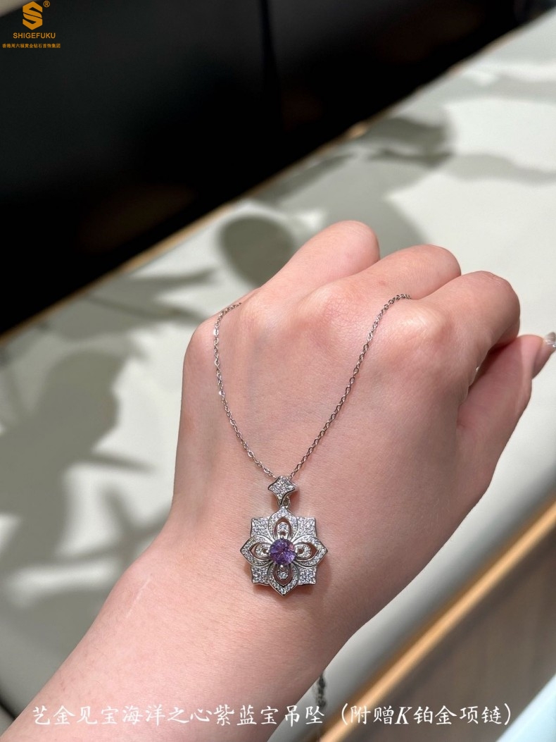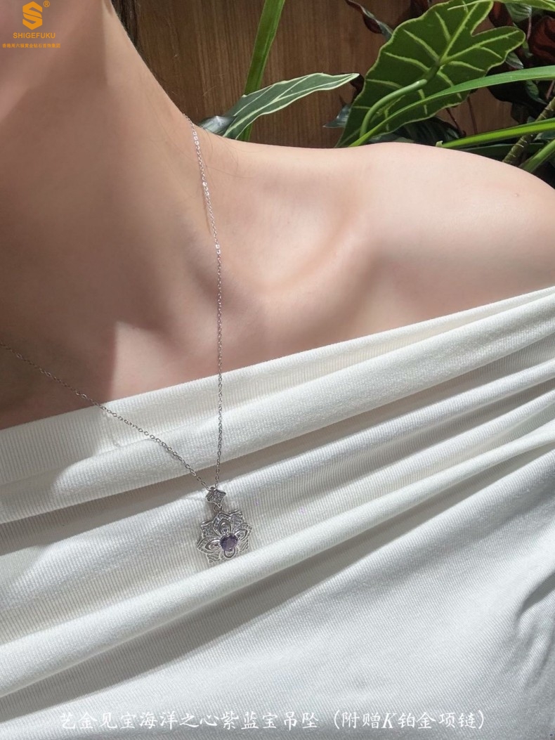 【品名】艺金见宝海洋之心紫蓝宝吊坠(附赠K铂金项链)
