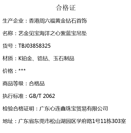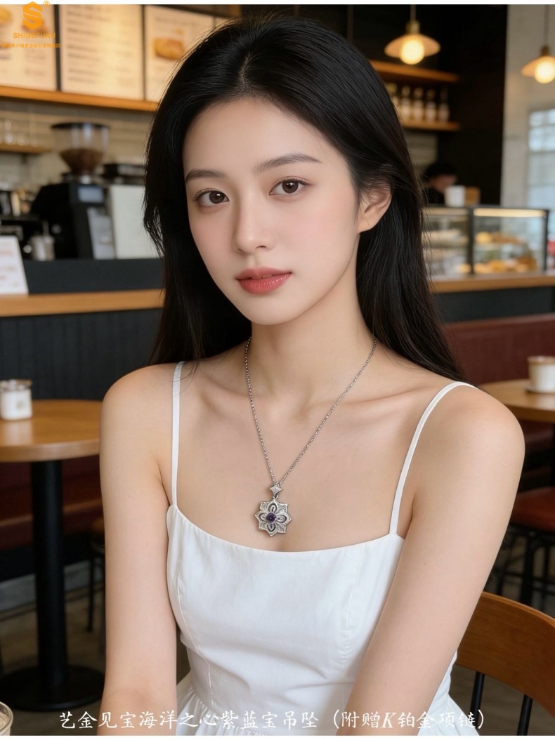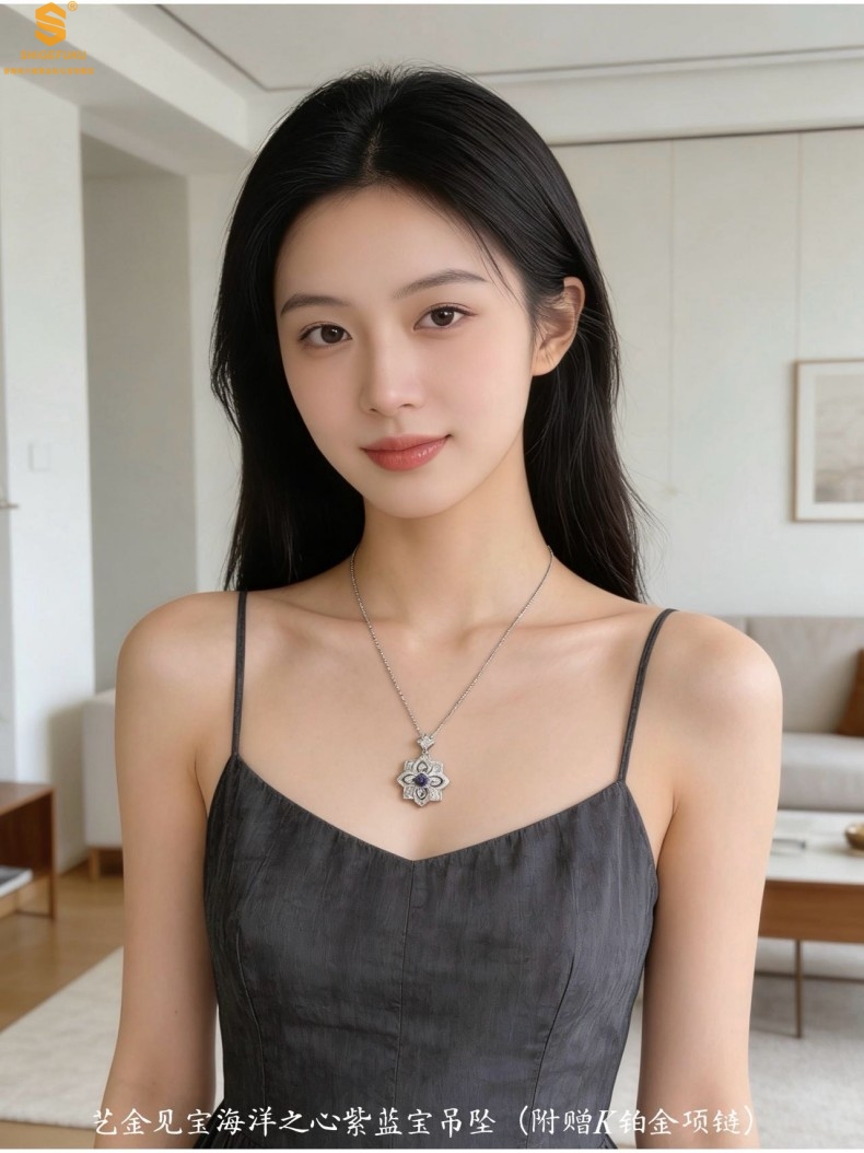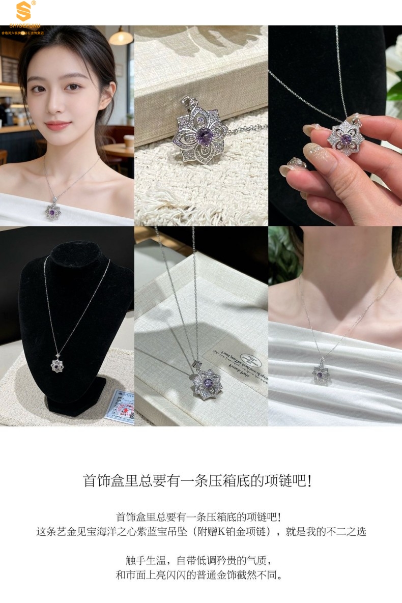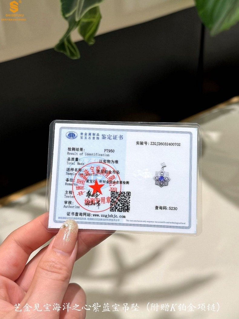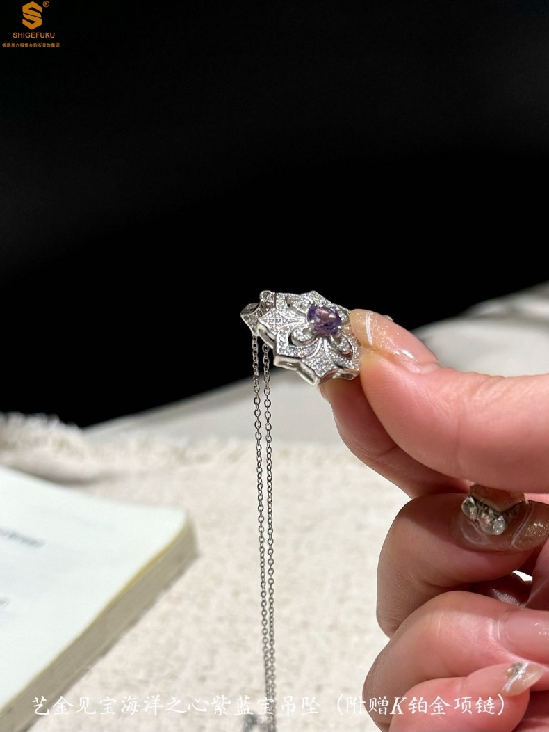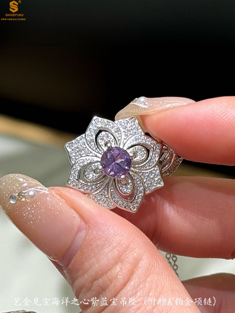【品名】艺金见宝海洋之心紫蓝宝吊坠(附赠K铂金项链)