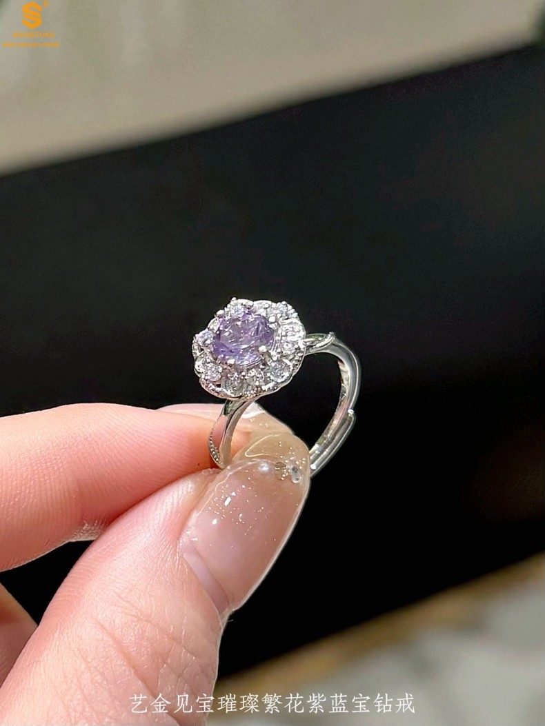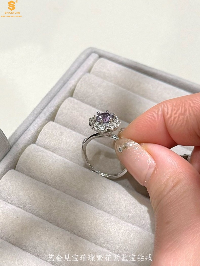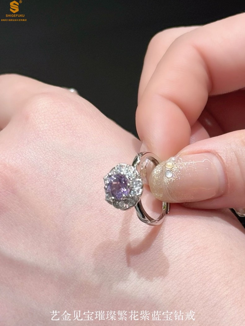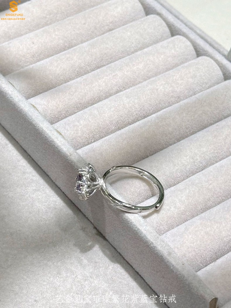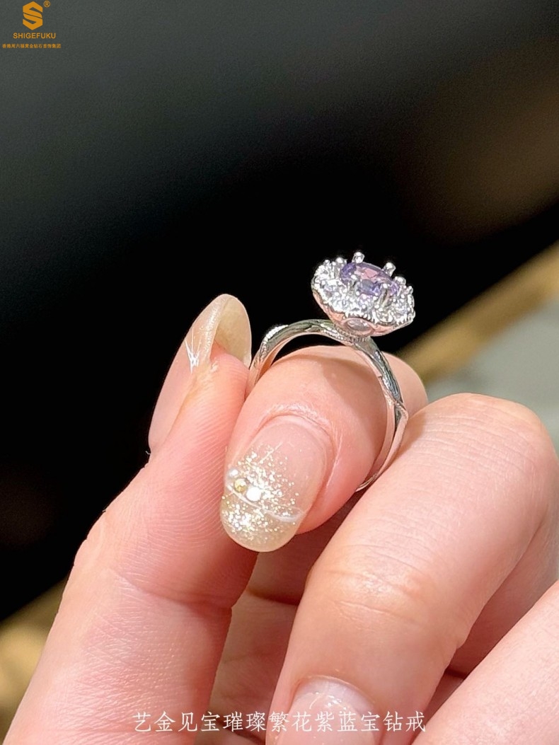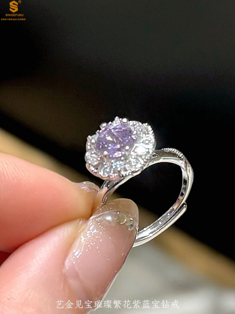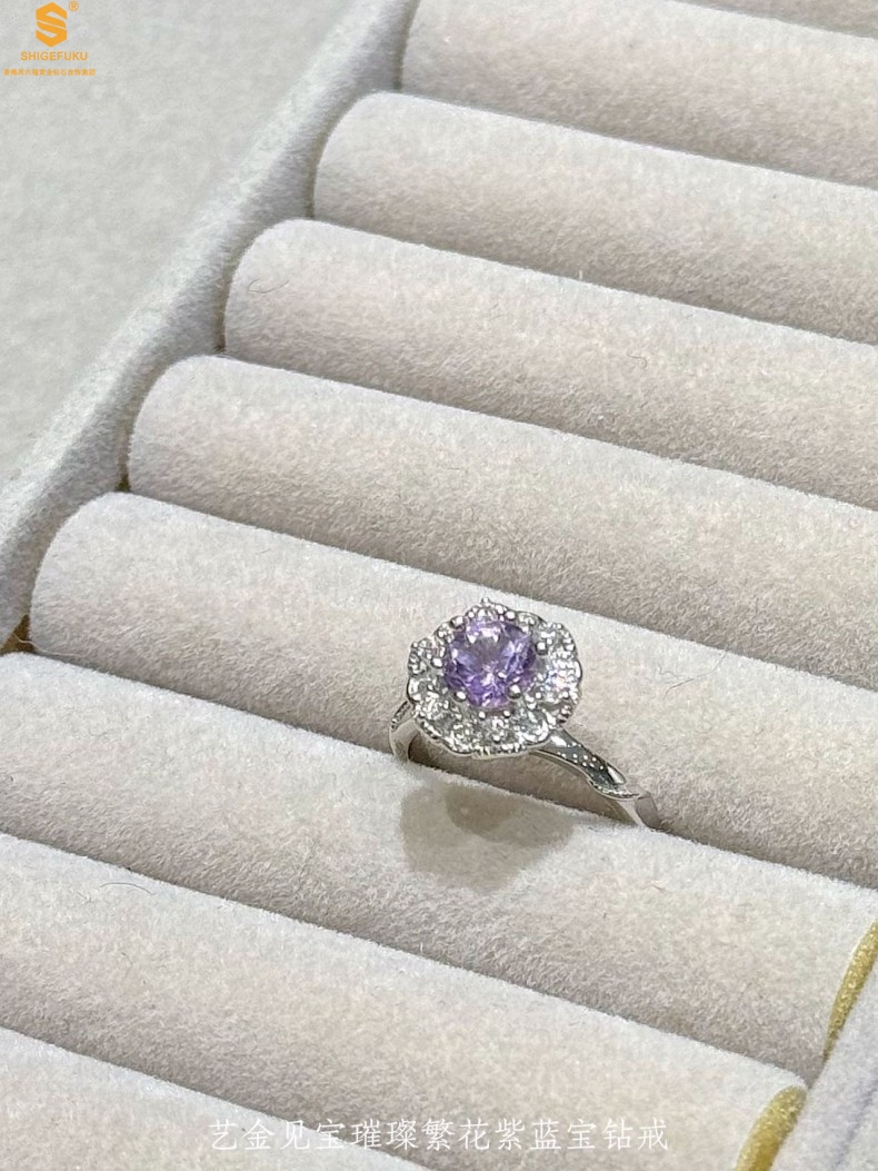 【品名】艺金见宝璀璨繁花紫蓝宝钻戒