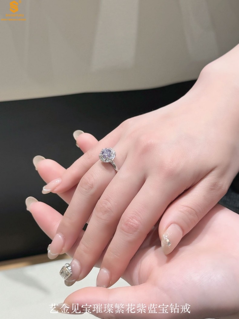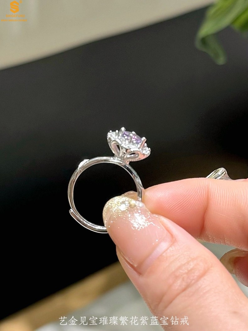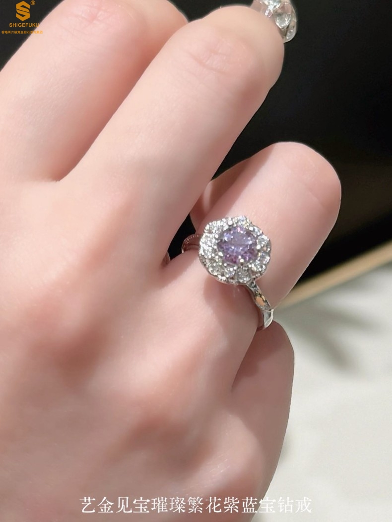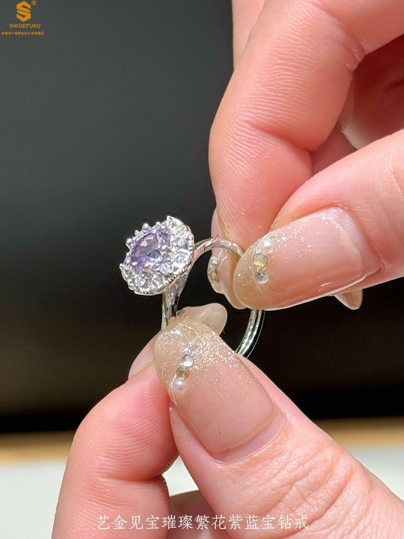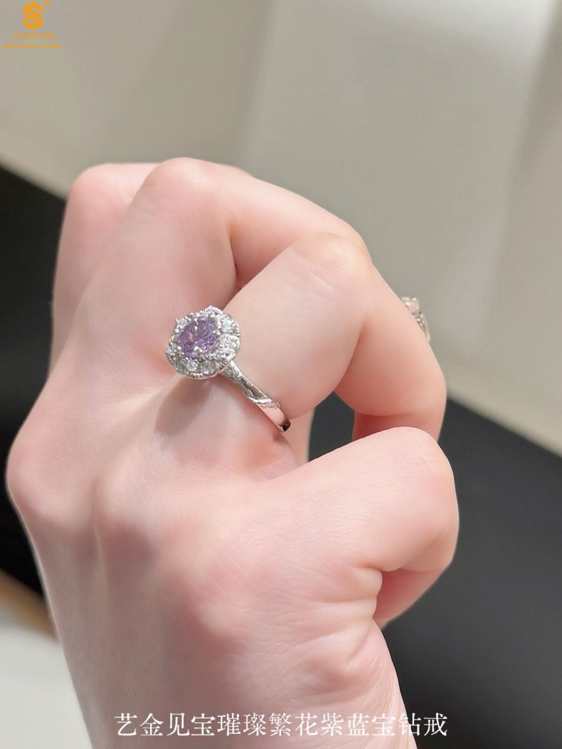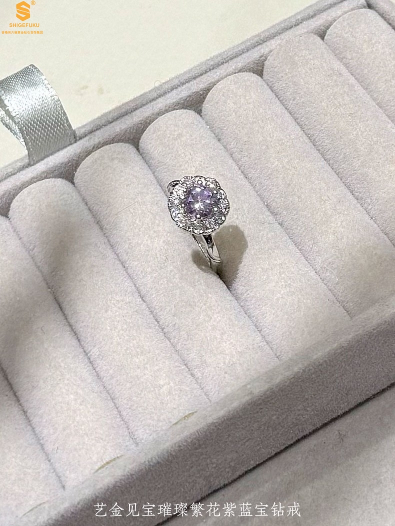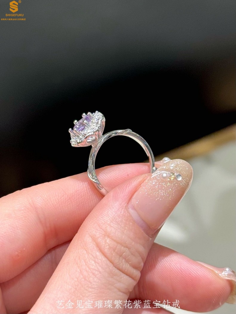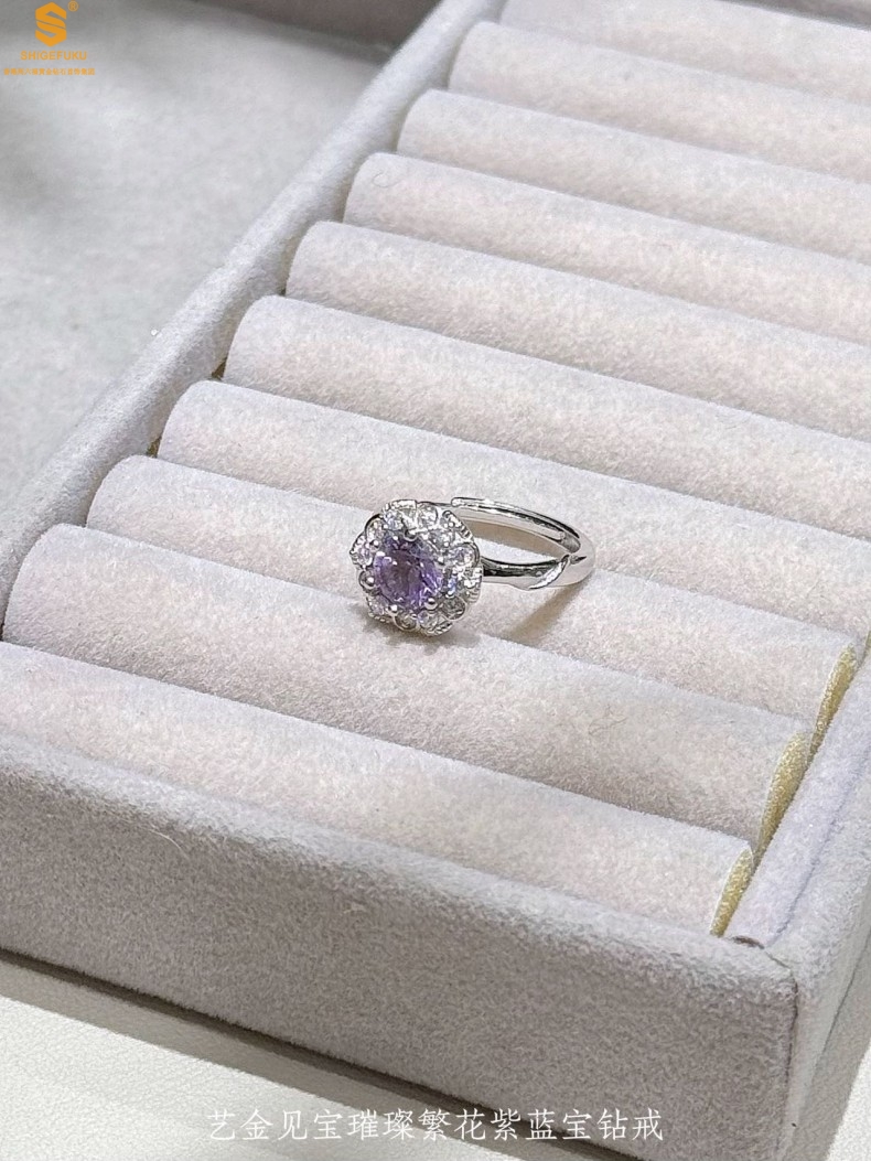 【品名】艺金见宝璀璨繁花紫蓝宝钻戒