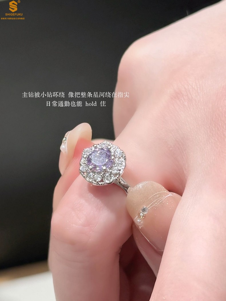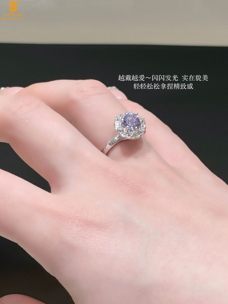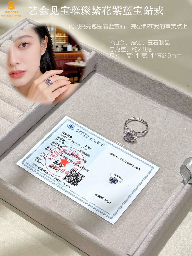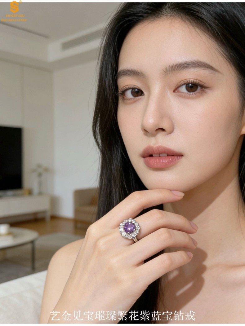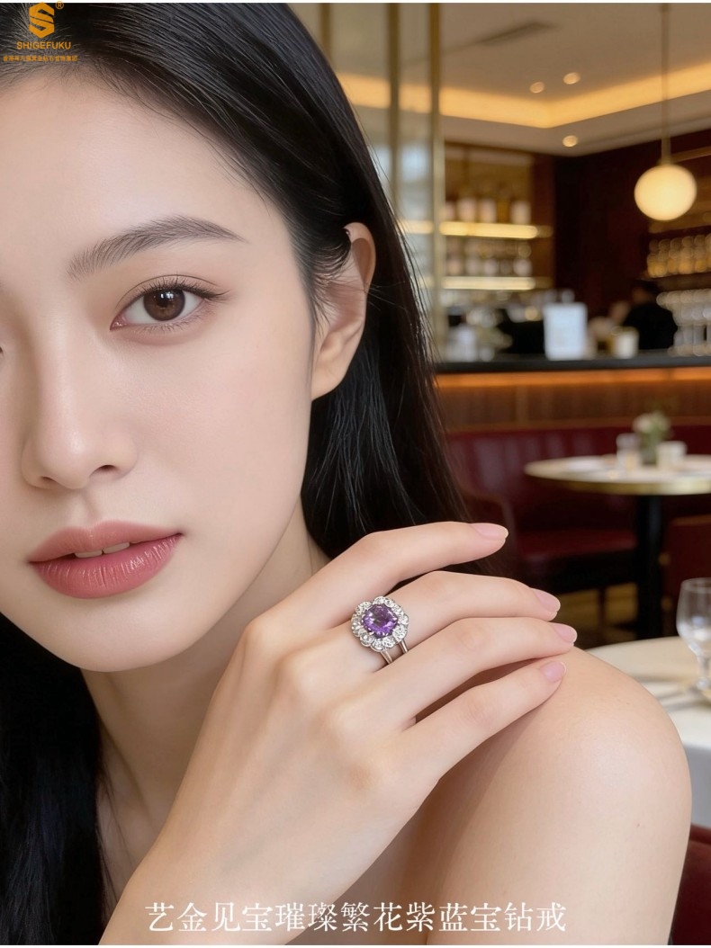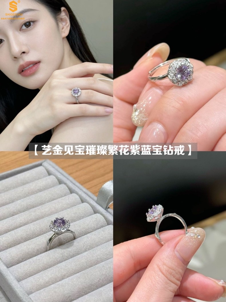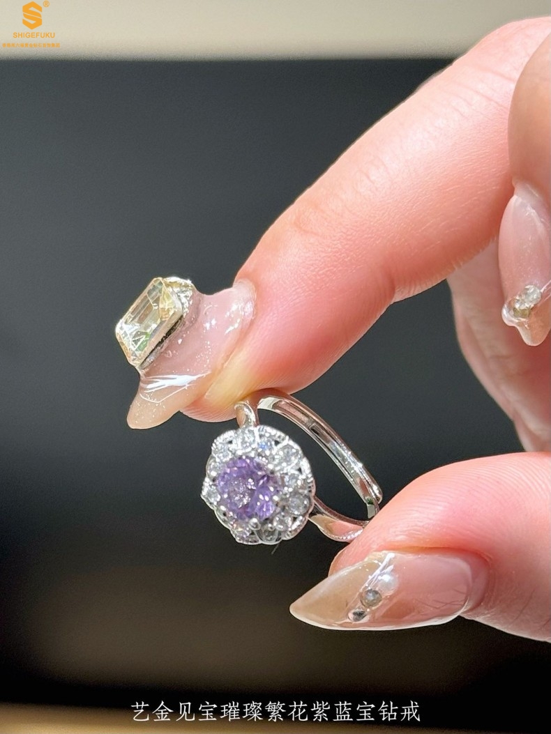 【品名】艺金见宝璀璨繁花紫蓝宝钻戒