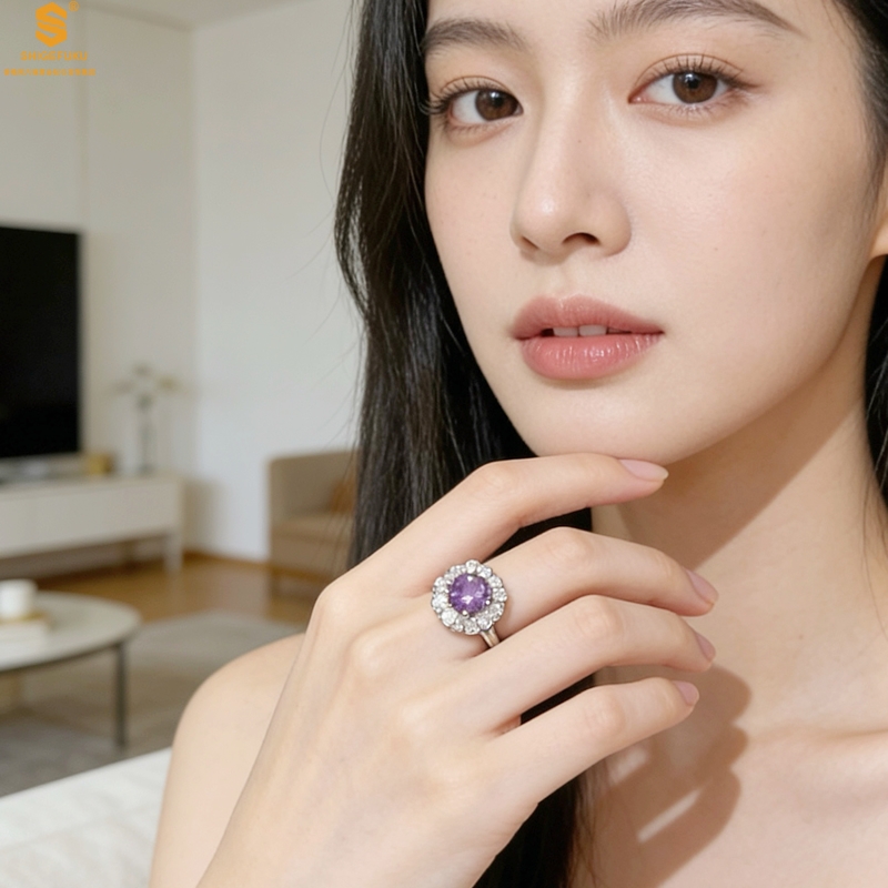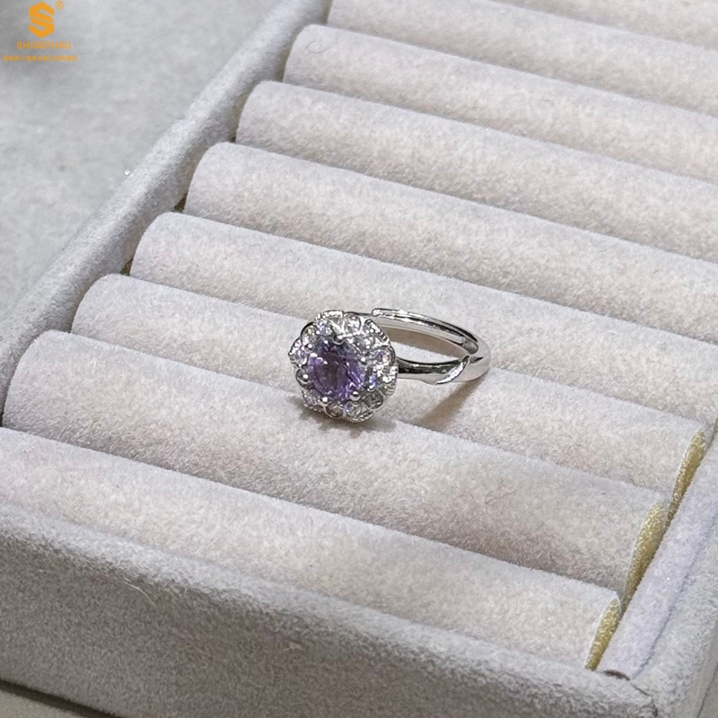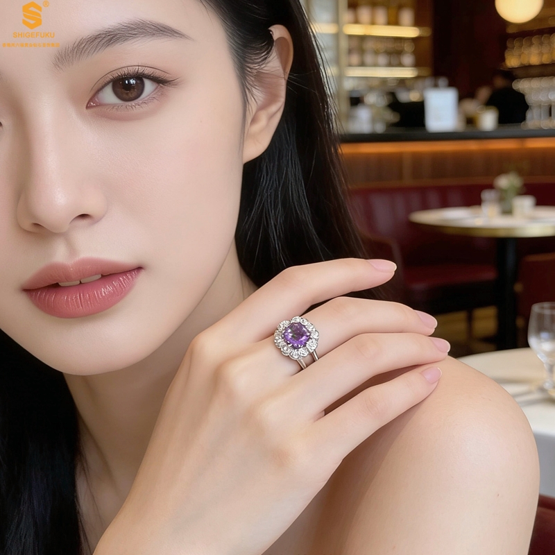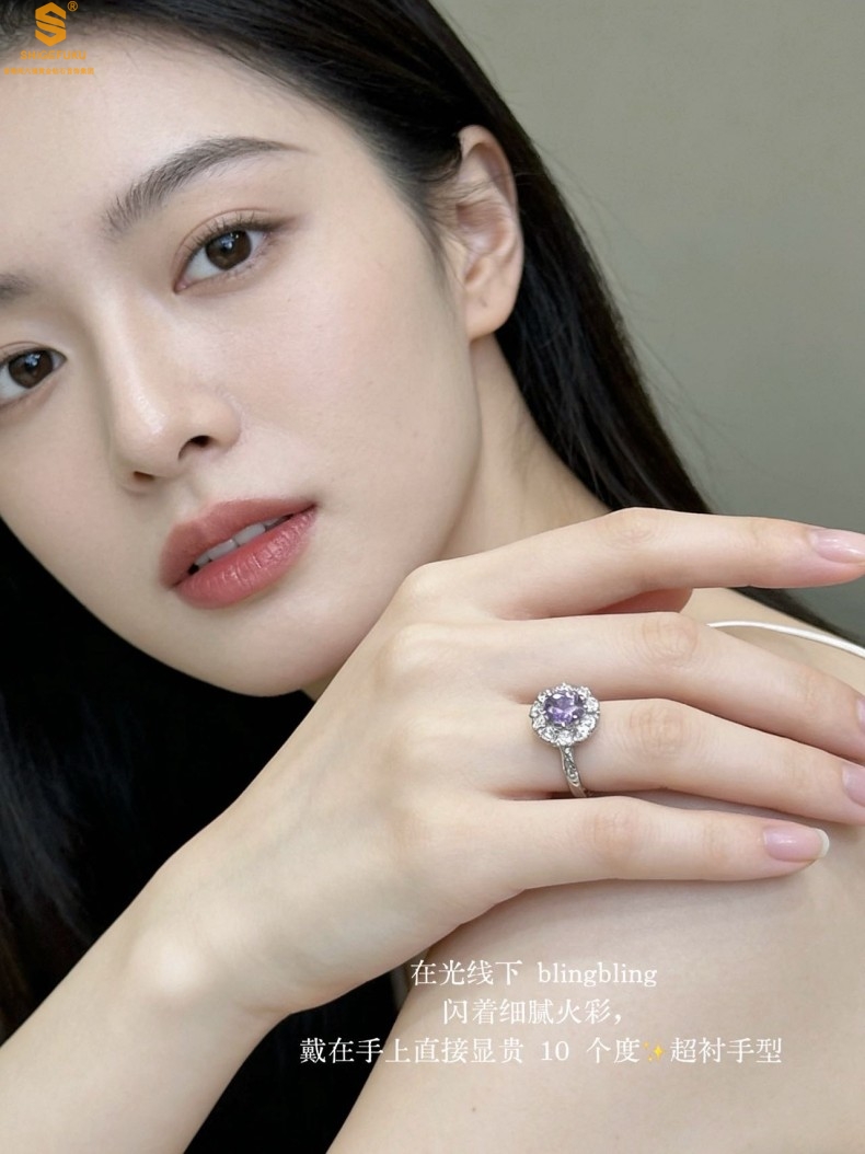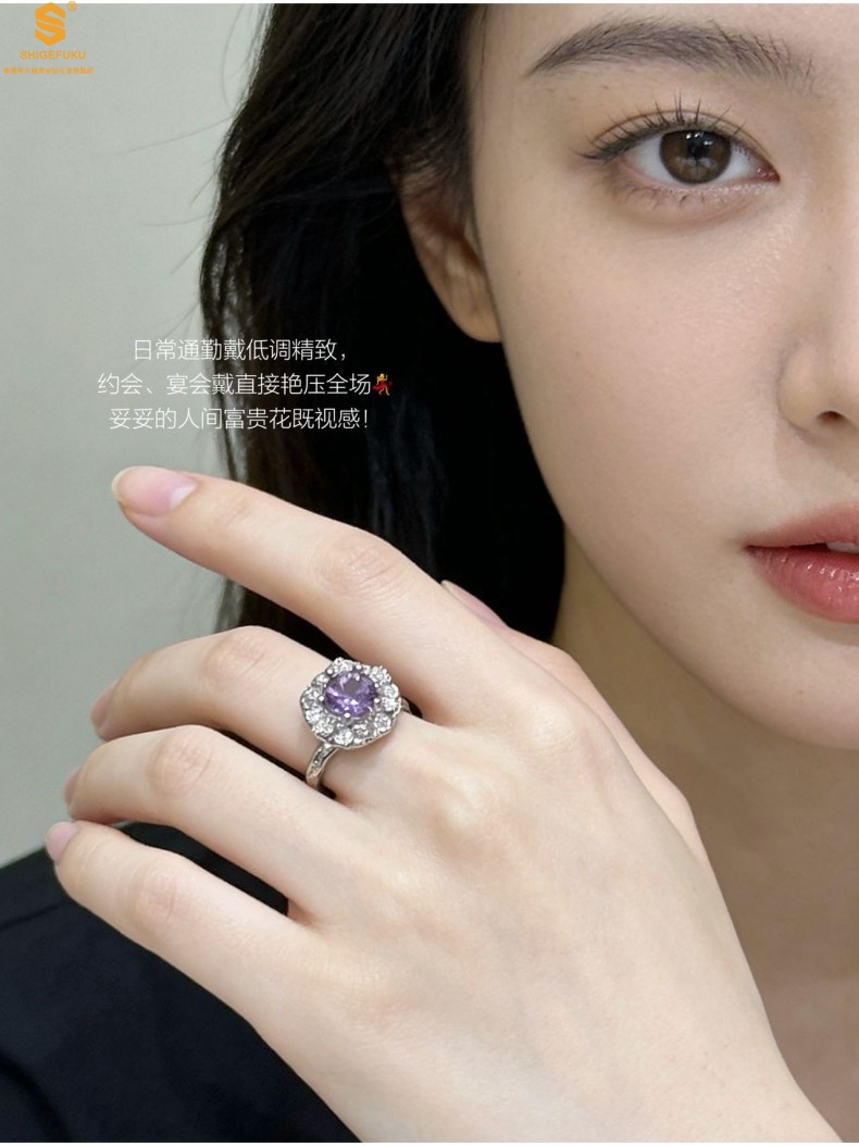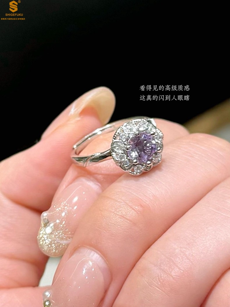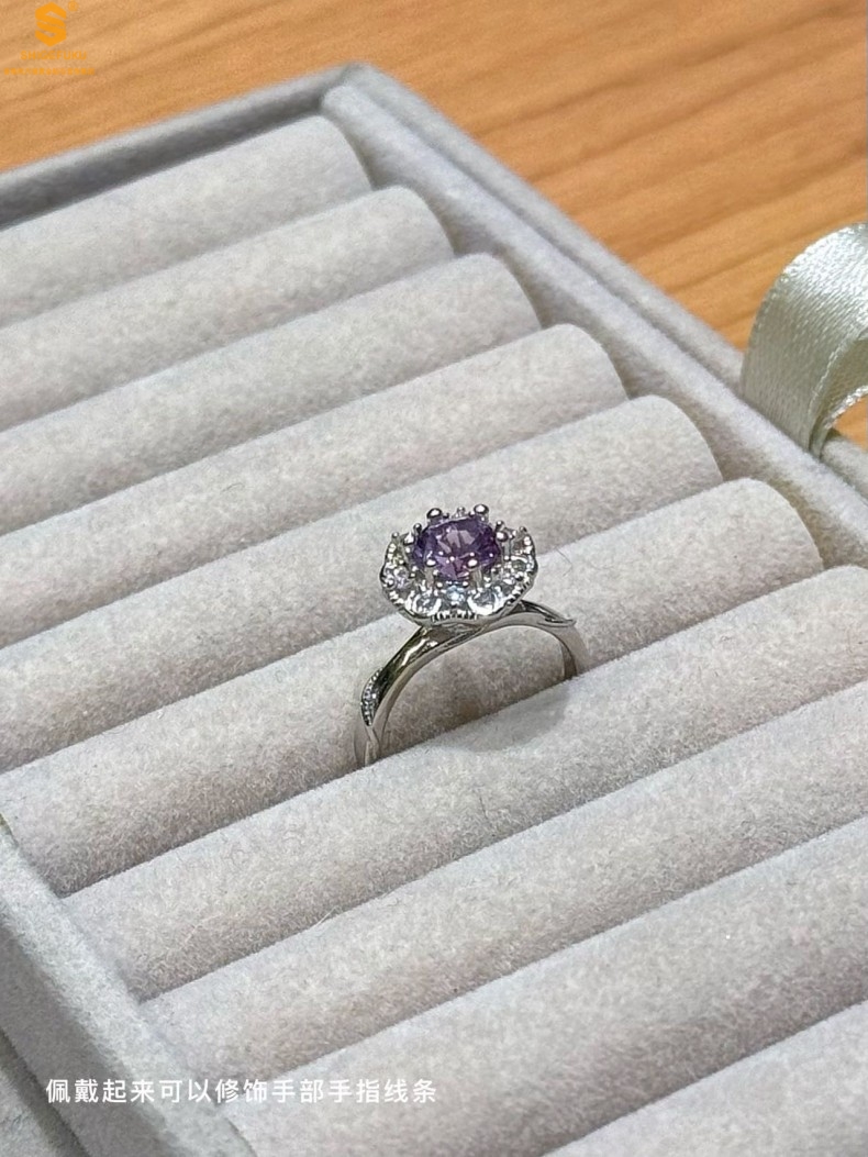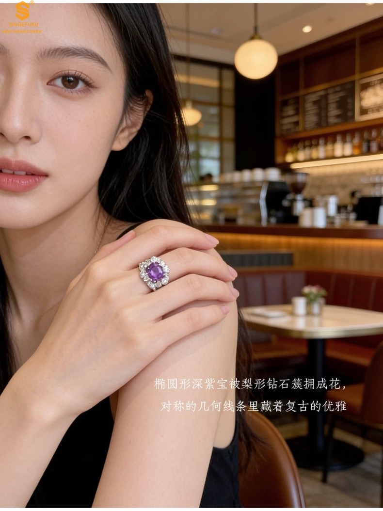 【品名】艺金见宝璀璨繁花紫蓝宝钻戒