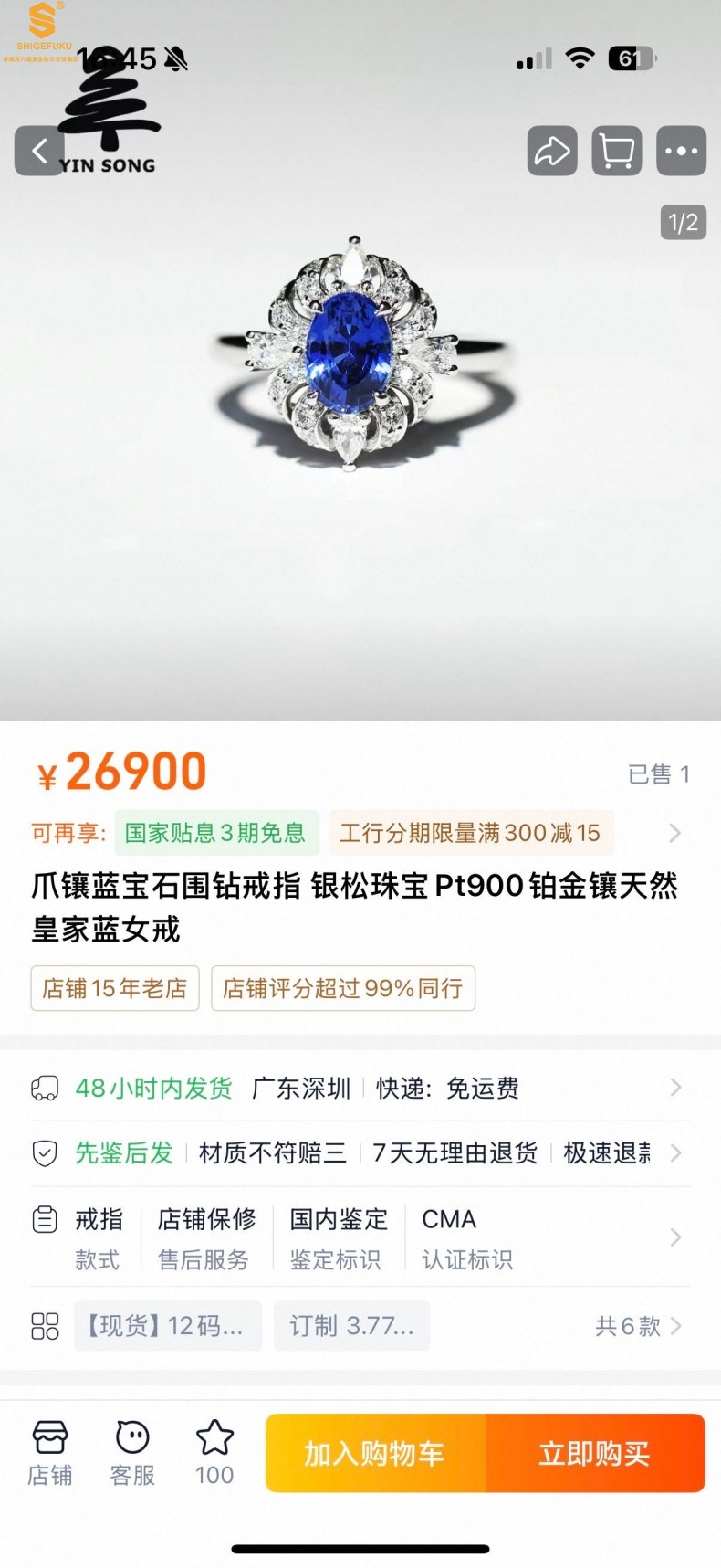 【品牌】香港周六福黄金钻石首饰