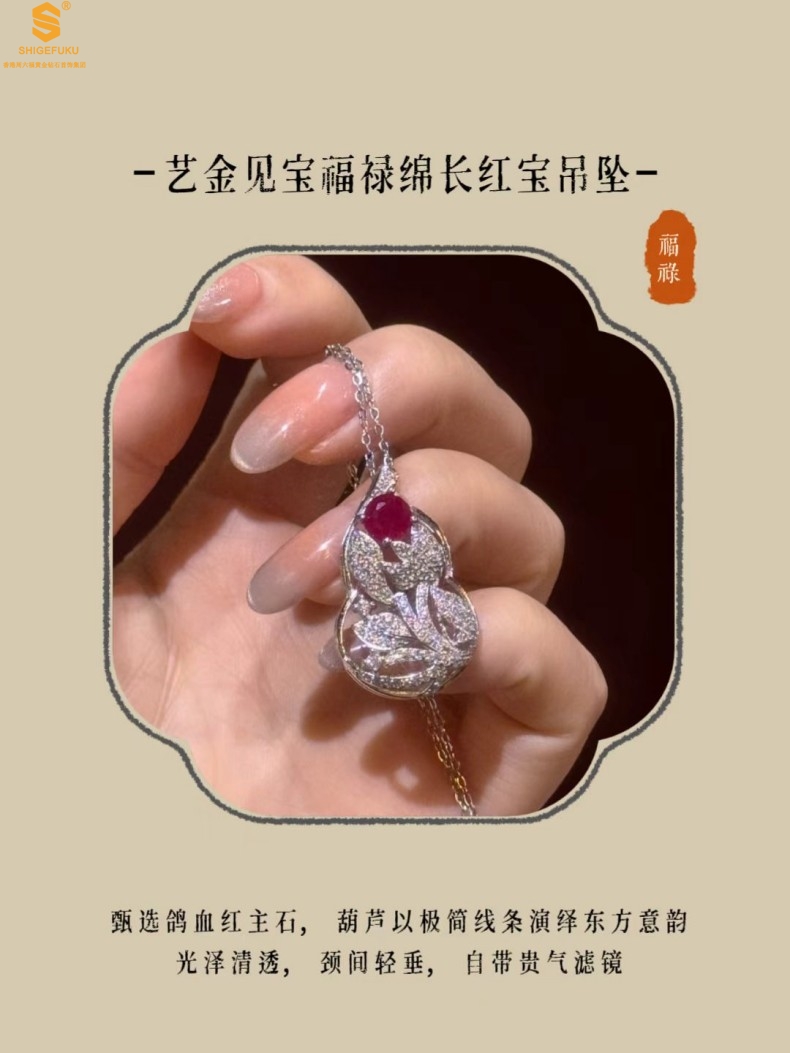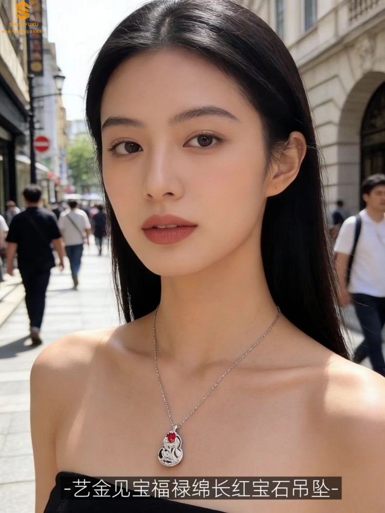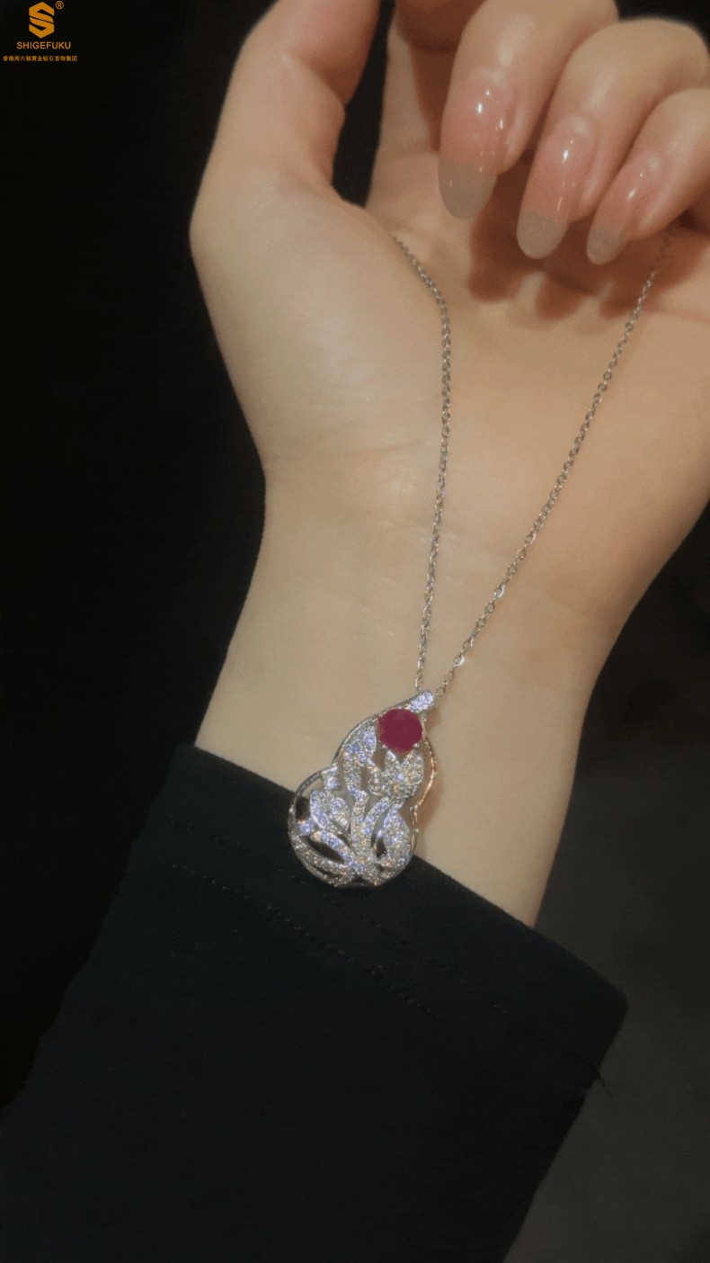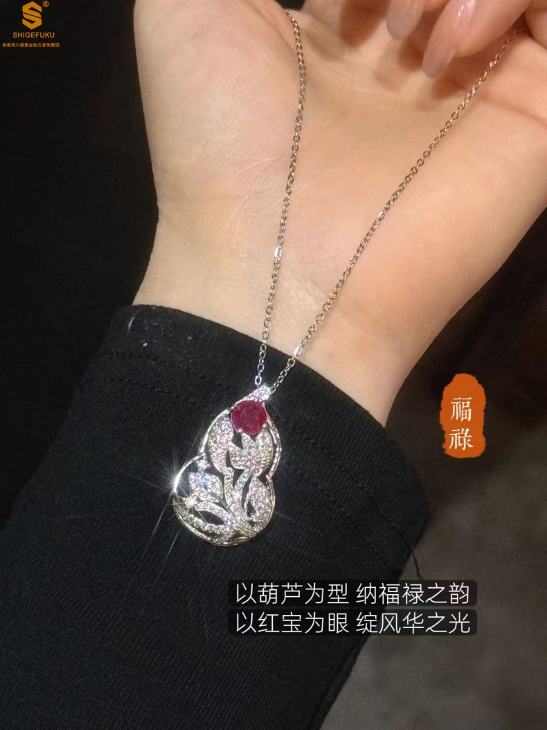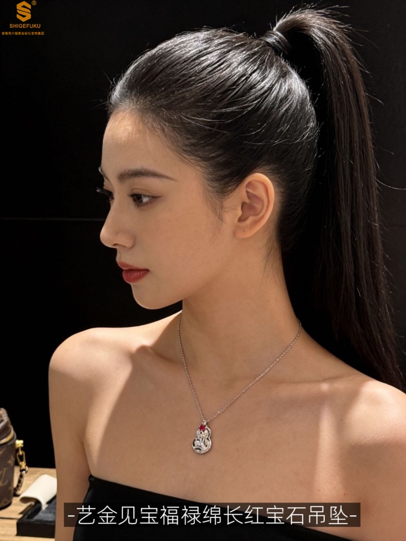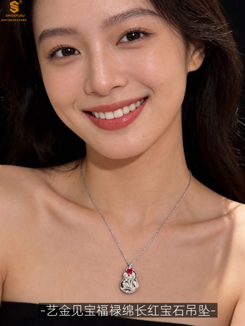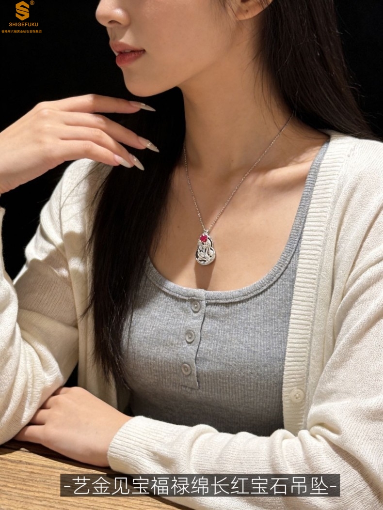 【品名】艺金见宝福禄绵长红宝石吊坠(附赠K铂金项链)
