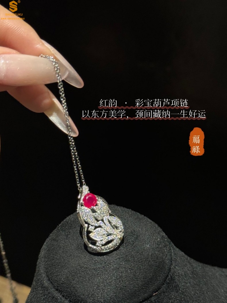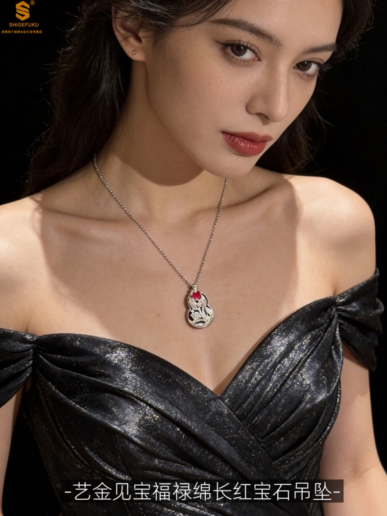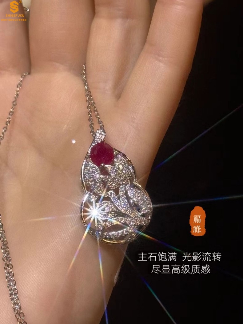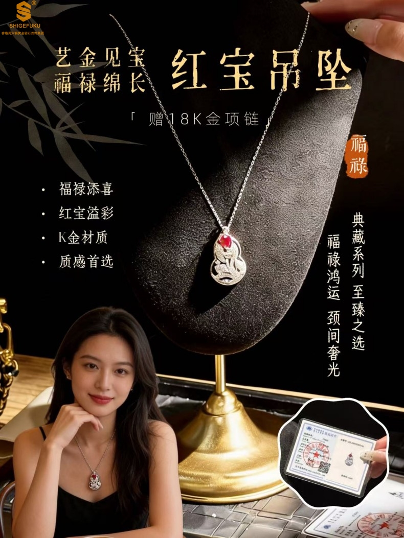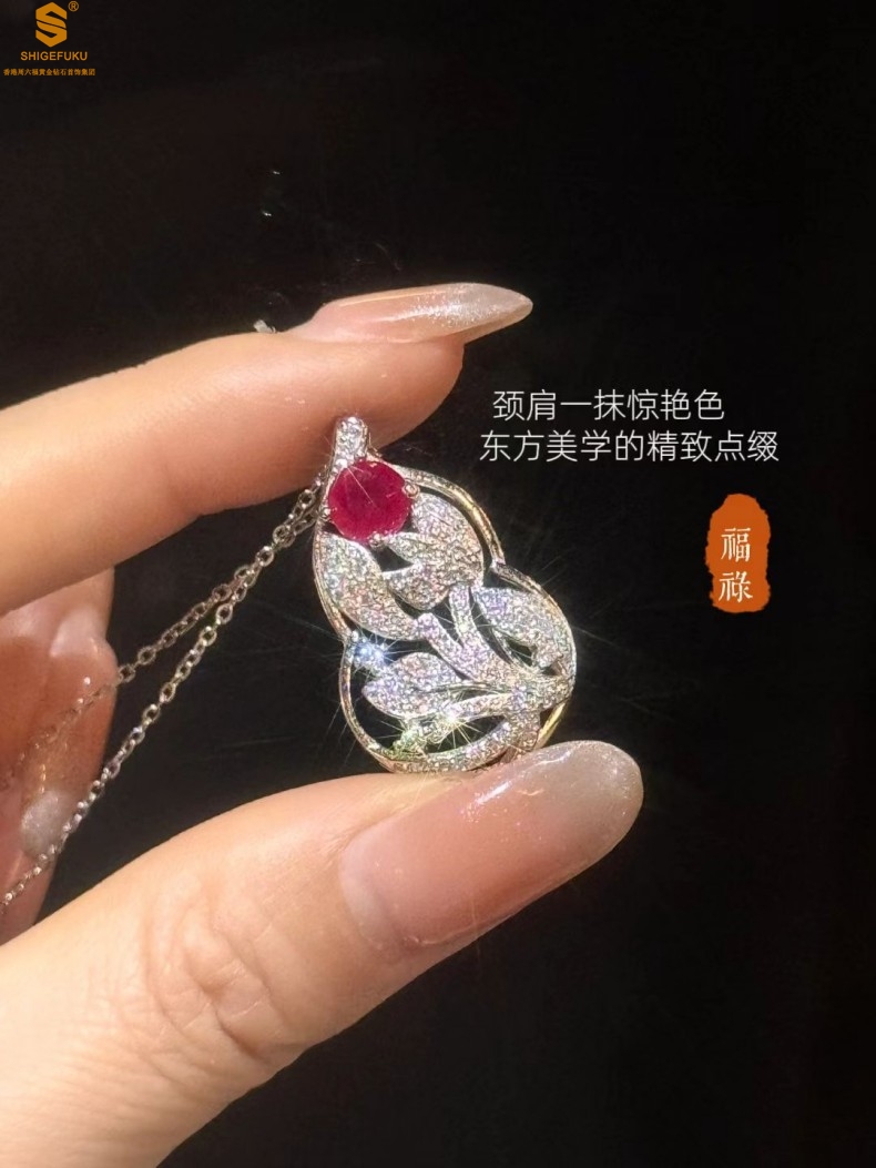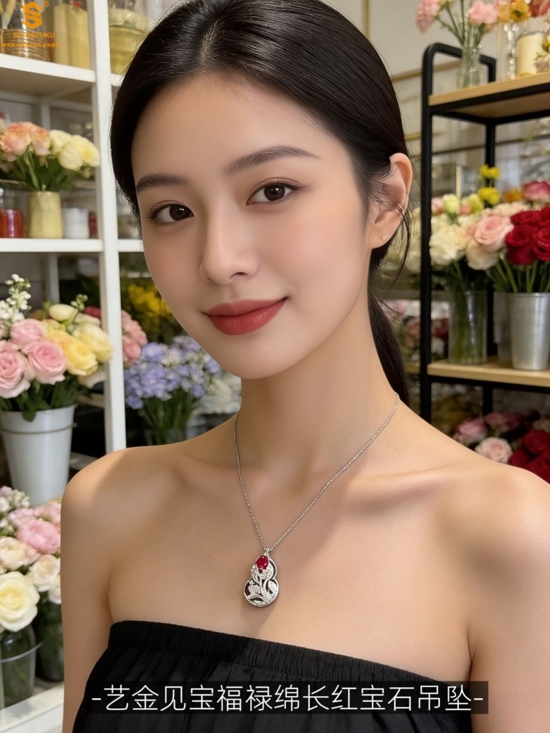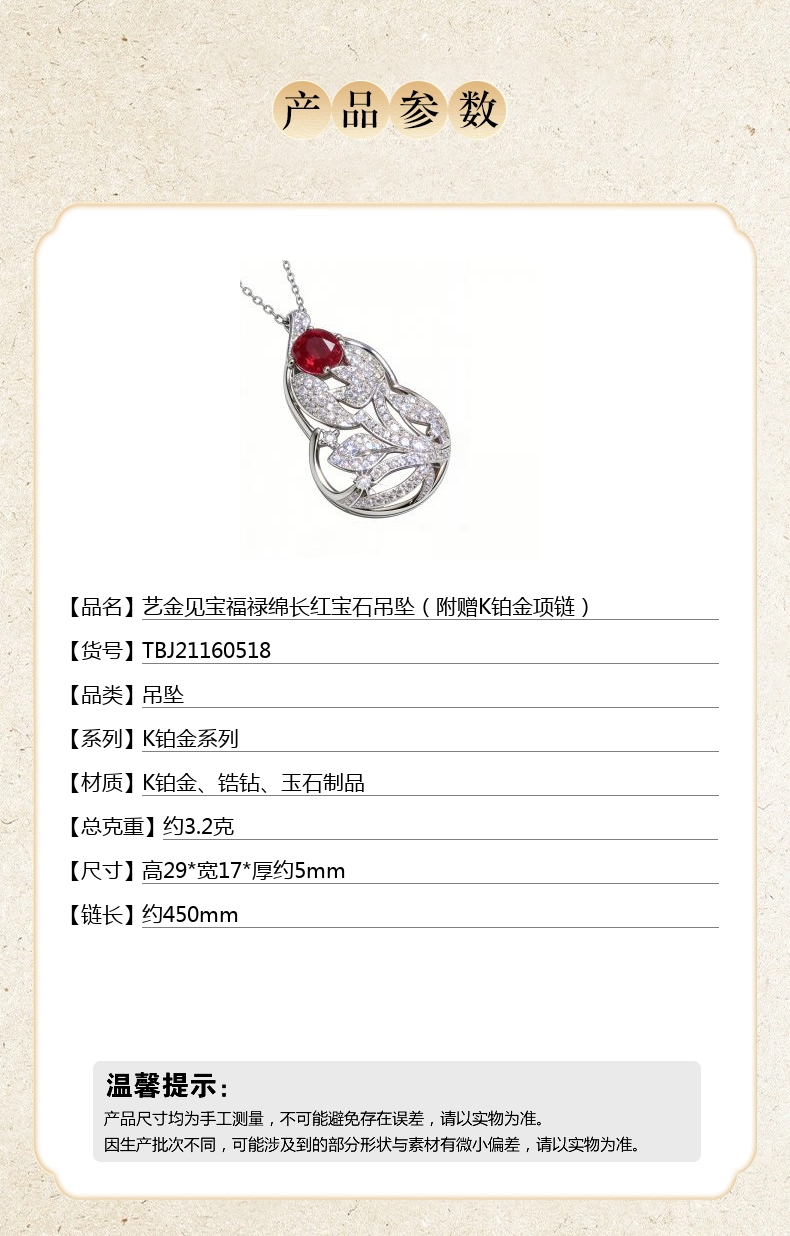 【品名】艺金见宝福禄绵长红宝石吊坠(附赠K铂金项链)